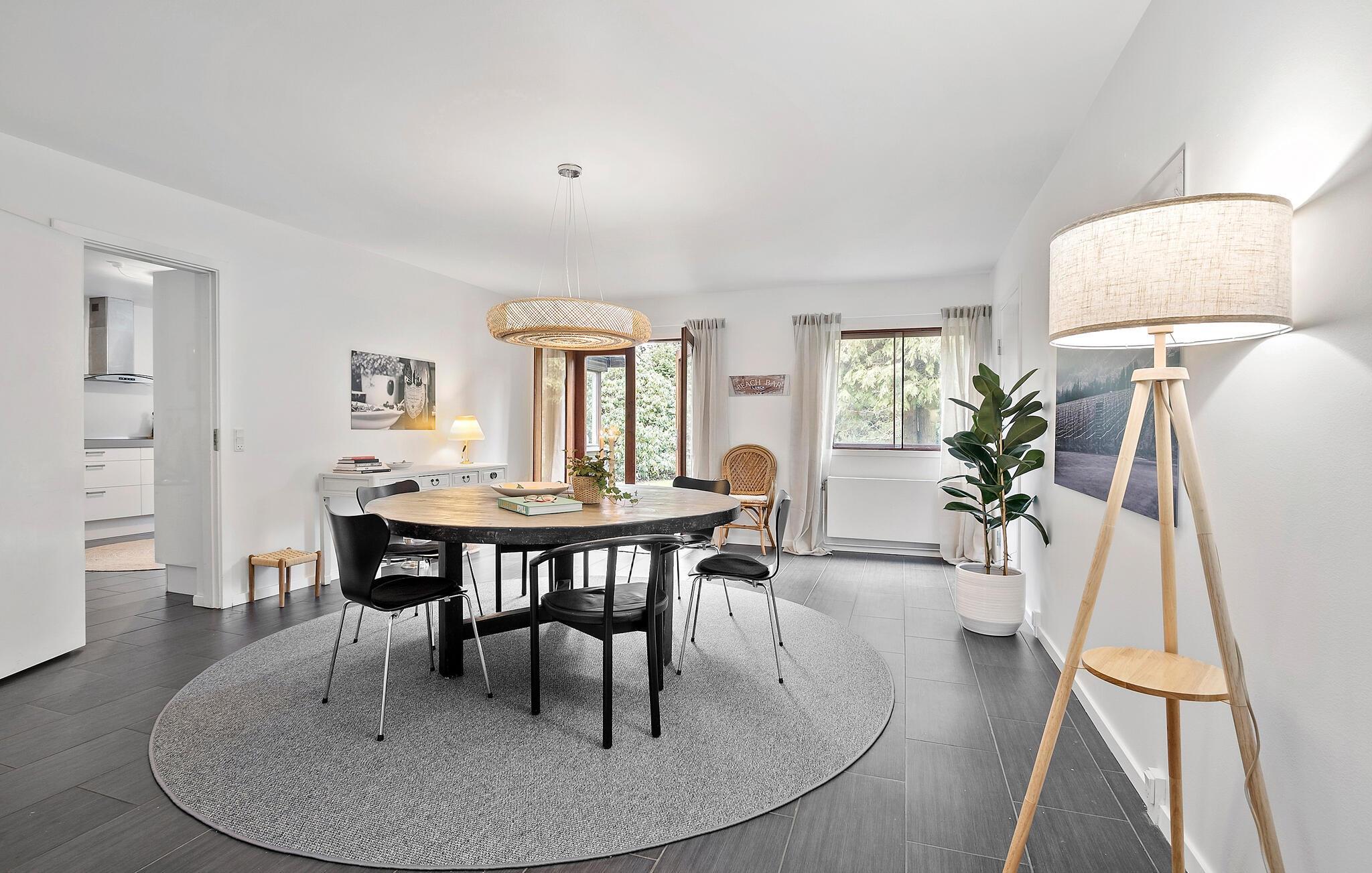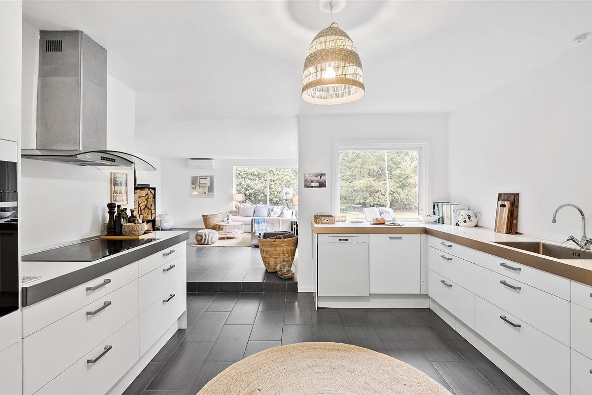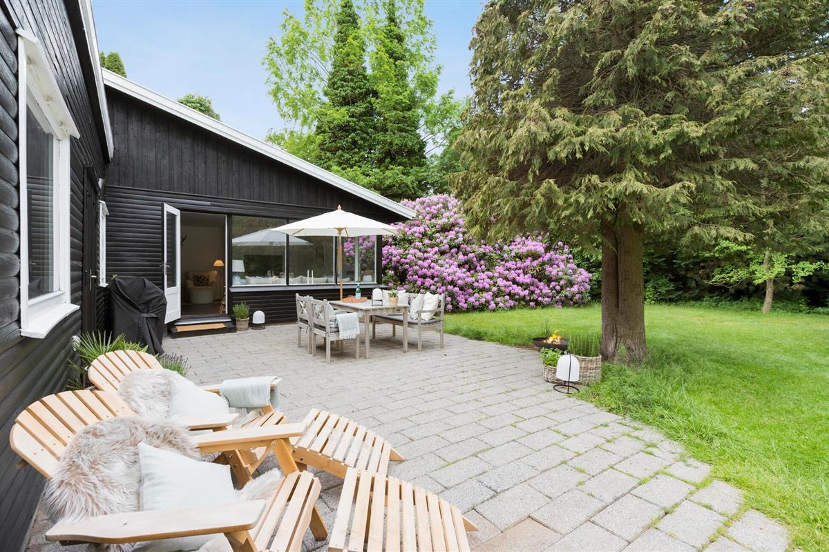 Geniet van een stijlvol en comfortabel vakantiehuis met tuin, fitnessruimte en dichtbij het strand in Hornbæk.