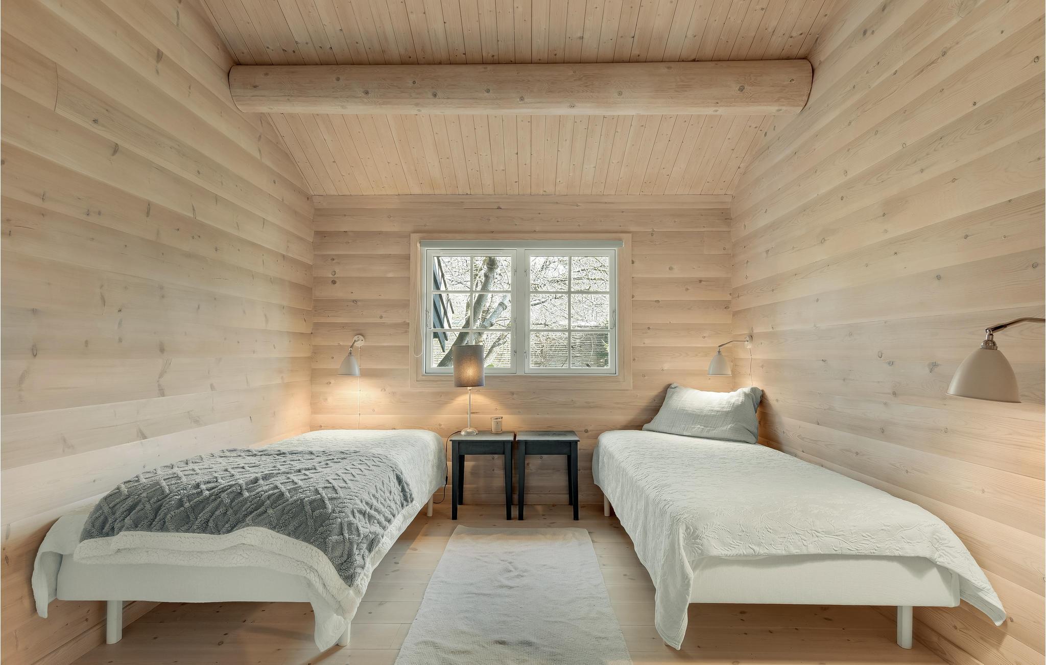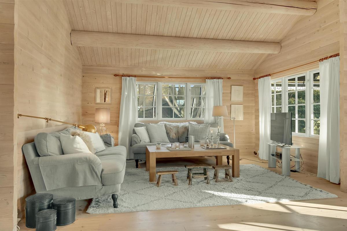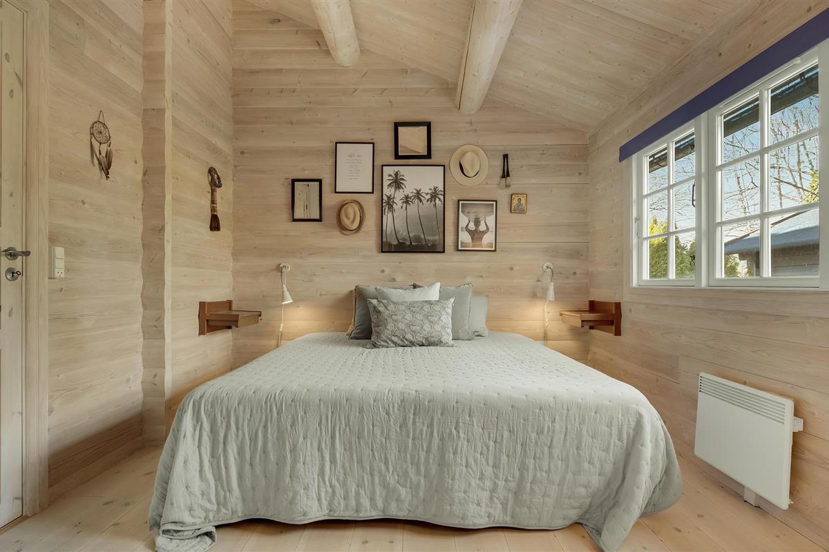 Stijlvolle blokhut aan de rand van het populaire kustplaatsje Hornbæk.