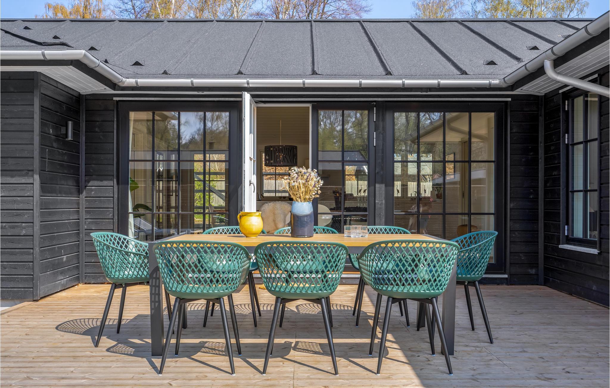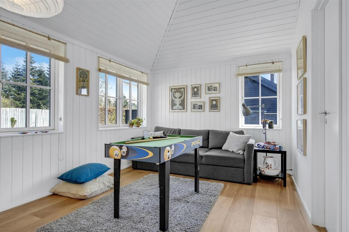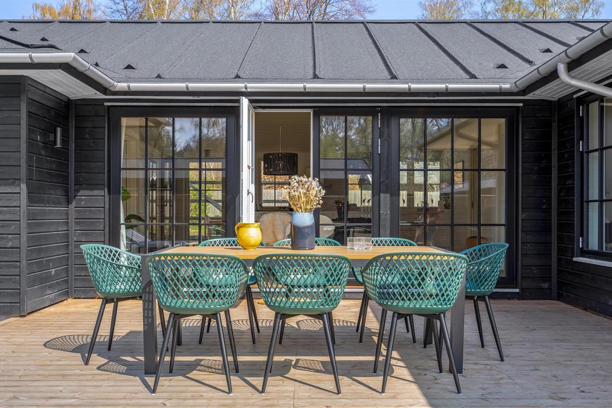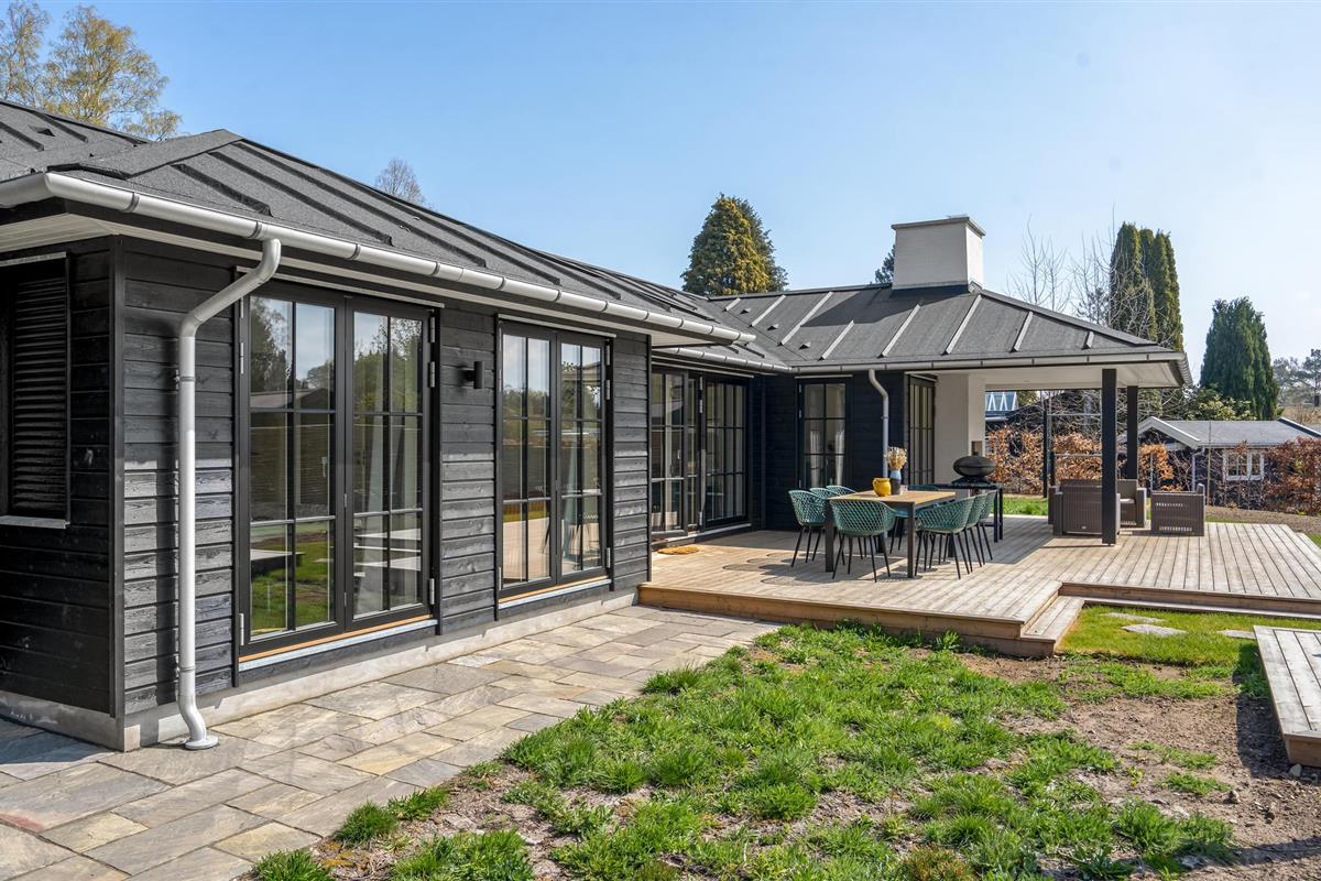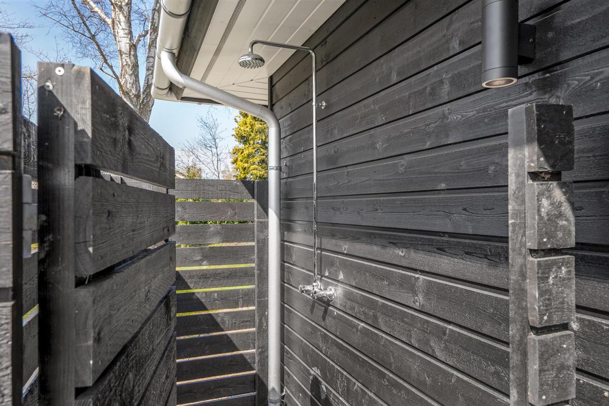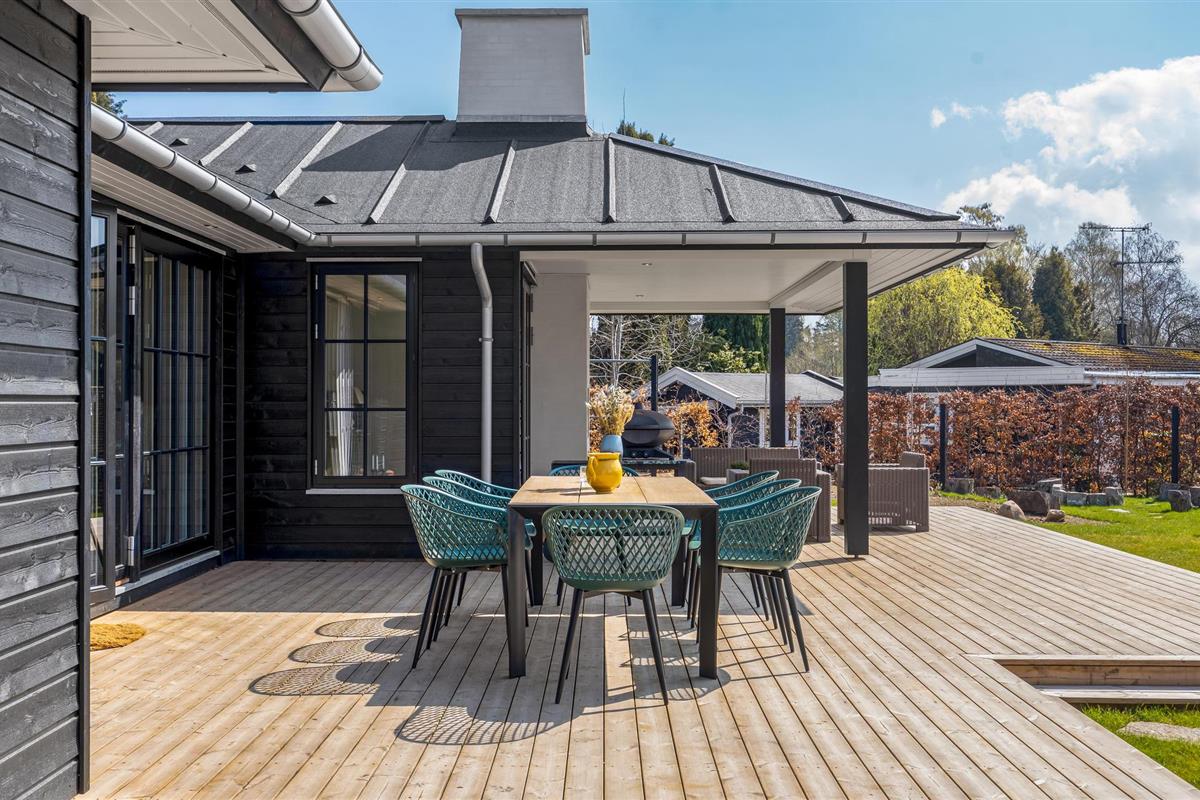 Vanuit de woonkamer heeft u toegang tot de grote terrassen met tuinmeubilair en barbecue, zodat u zowel kunt zonnen als volop kunt genieten van de lange, heldere zomeravonden. Het huis heeft ook een eigen tuin met onder andere een Vikingspel en een open haard - kijk uit naar gezellige uurtjes buiten.