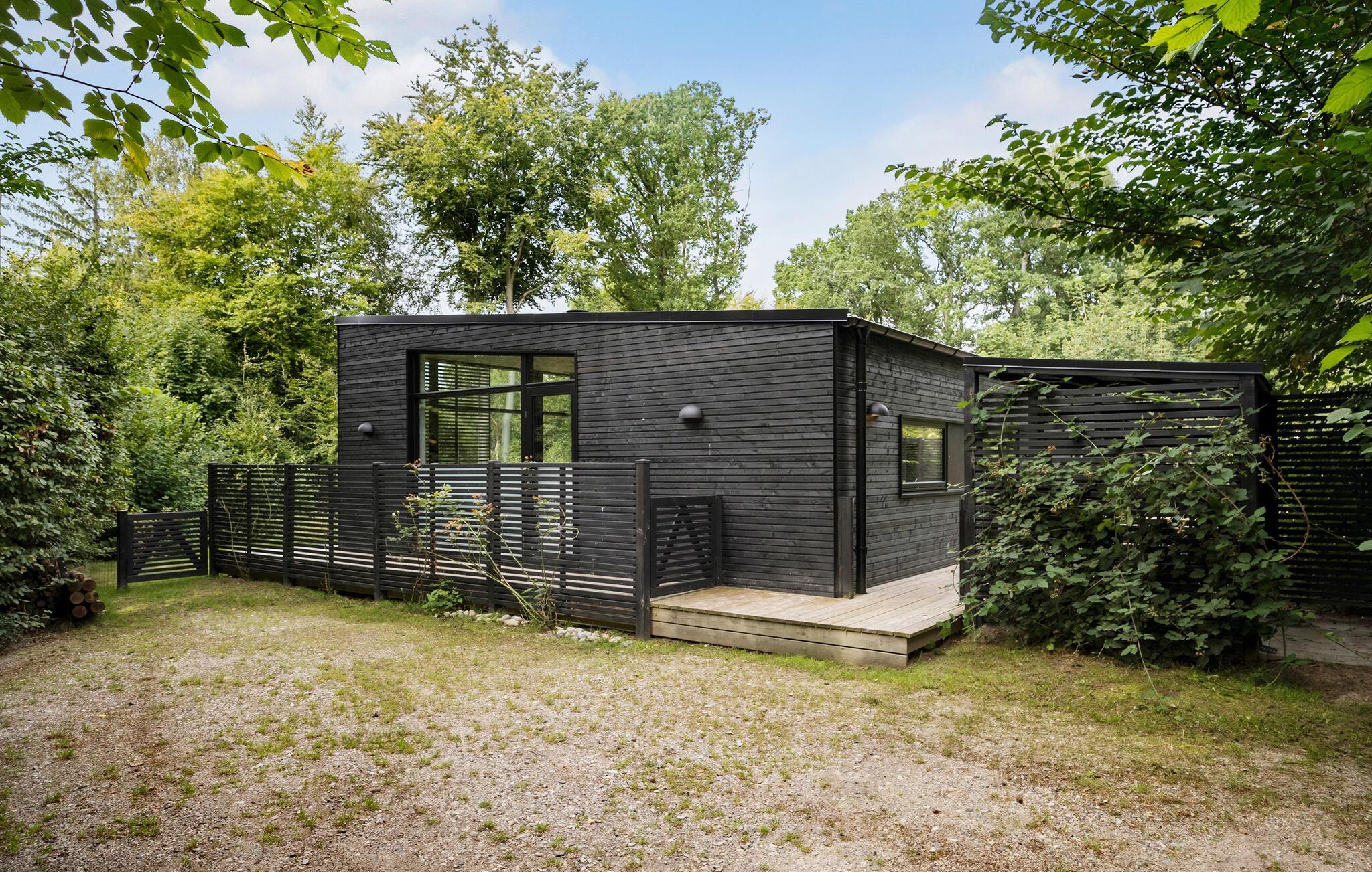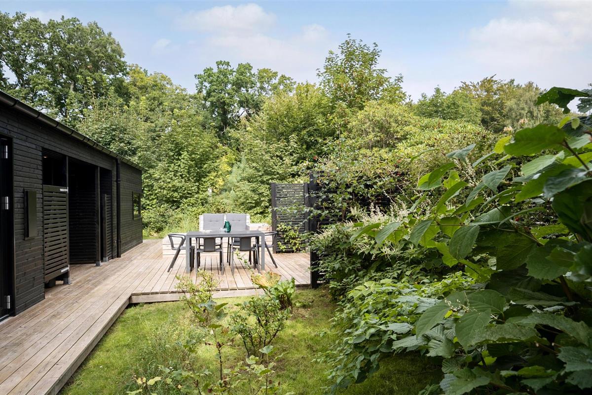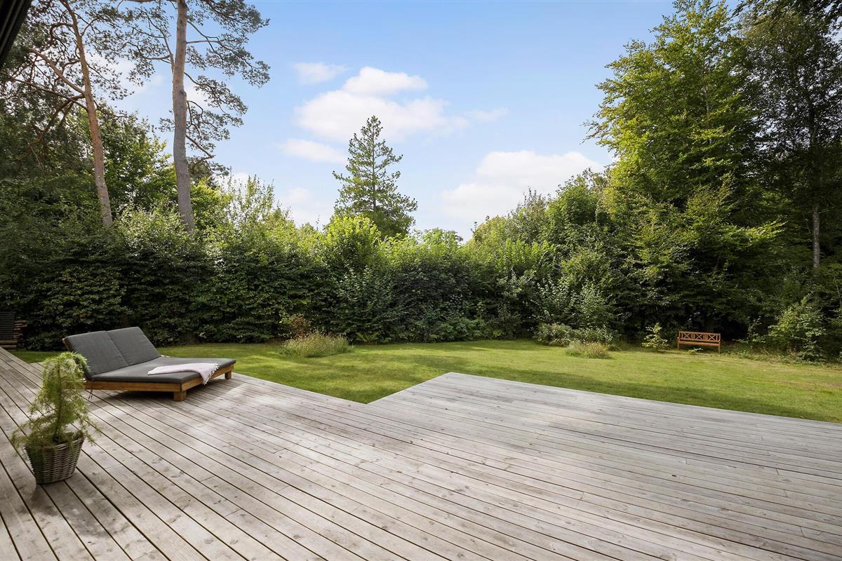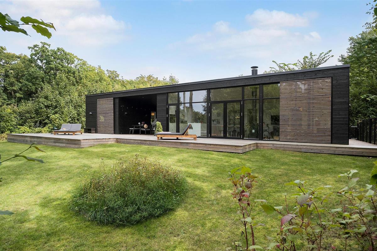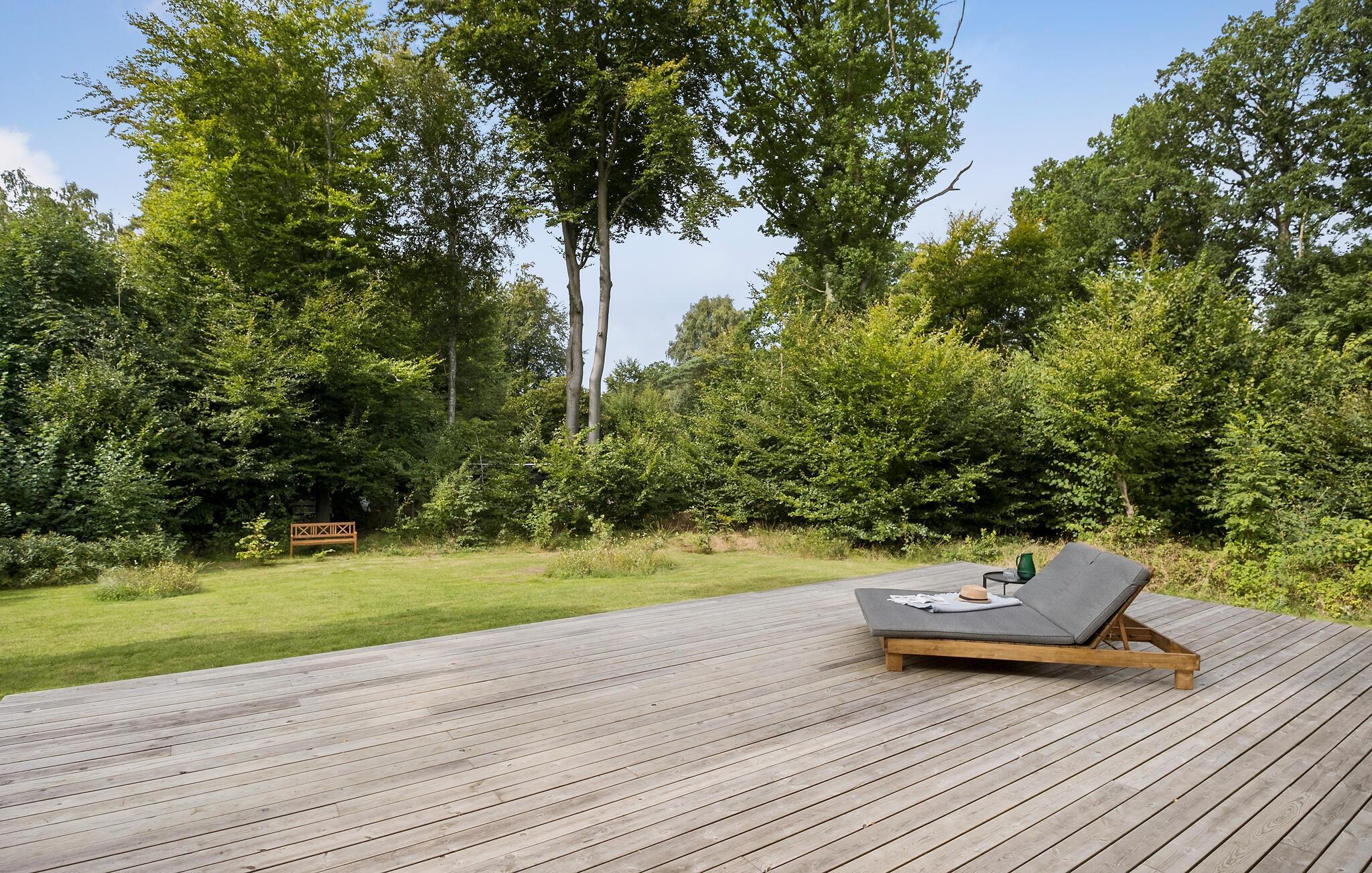 Modern vakantiehuis aan de Deense Rivièra met groot terras en nabij strand, natuur en stad.