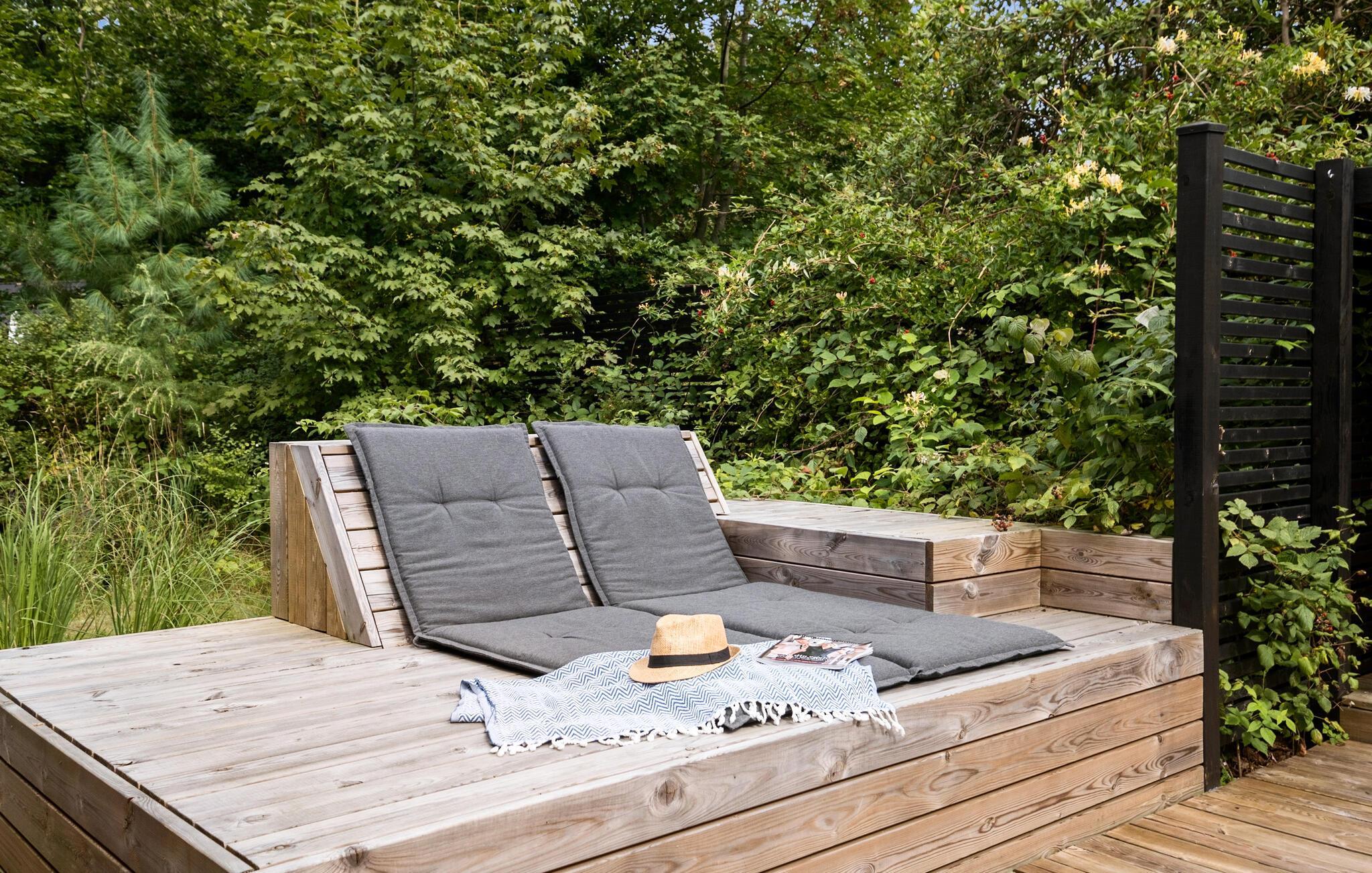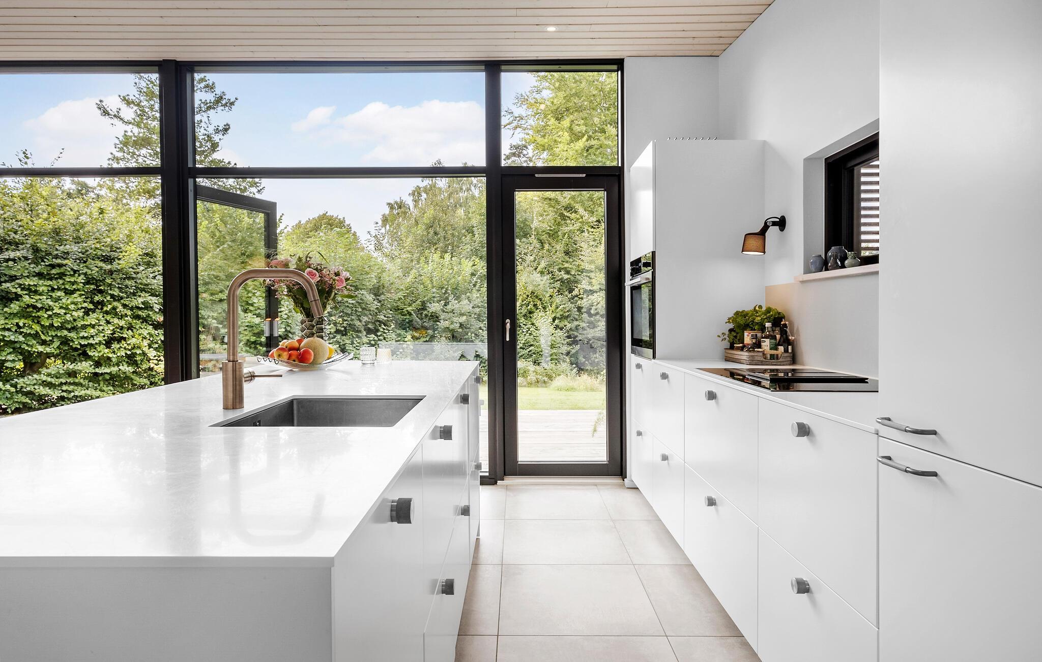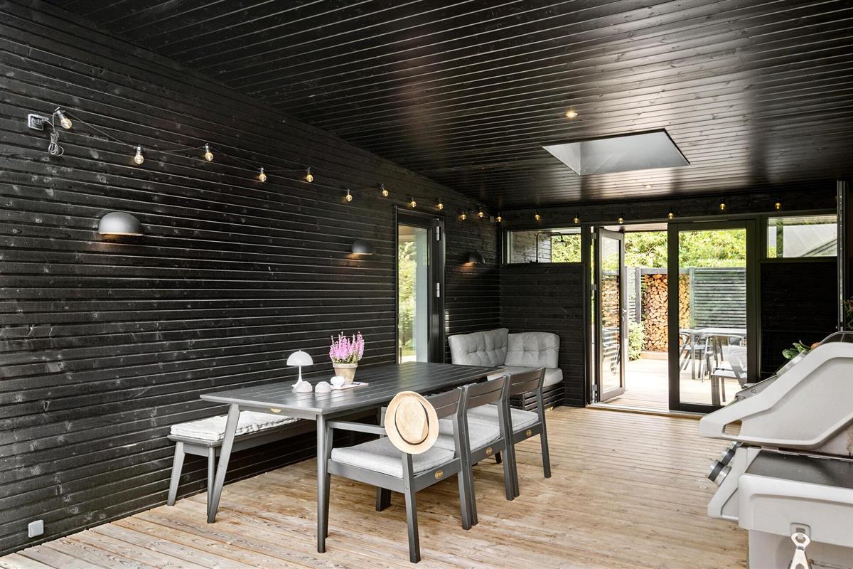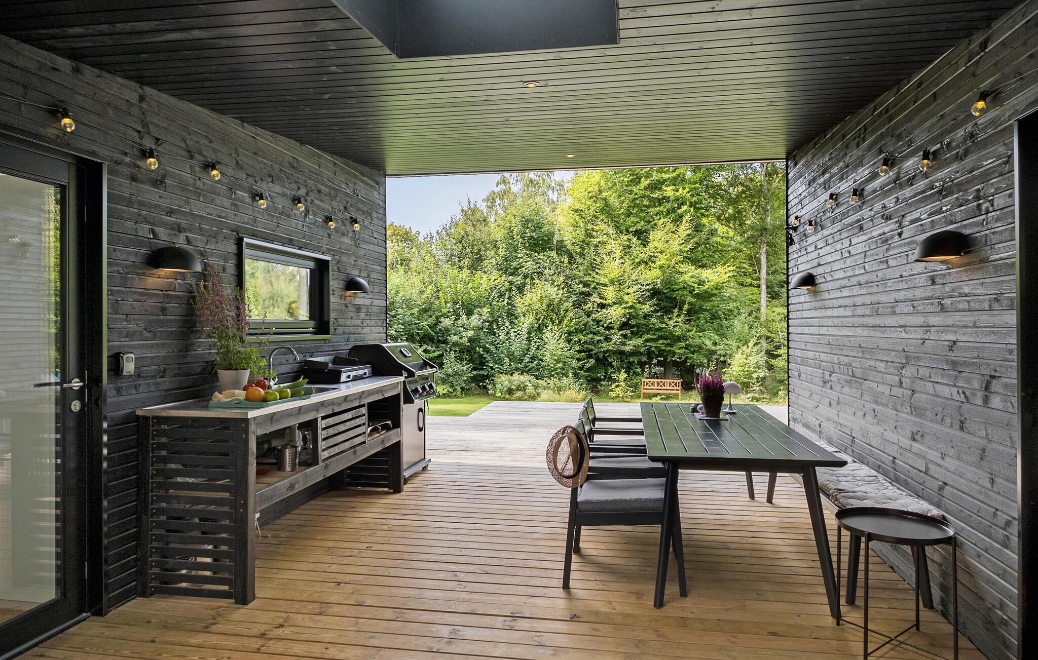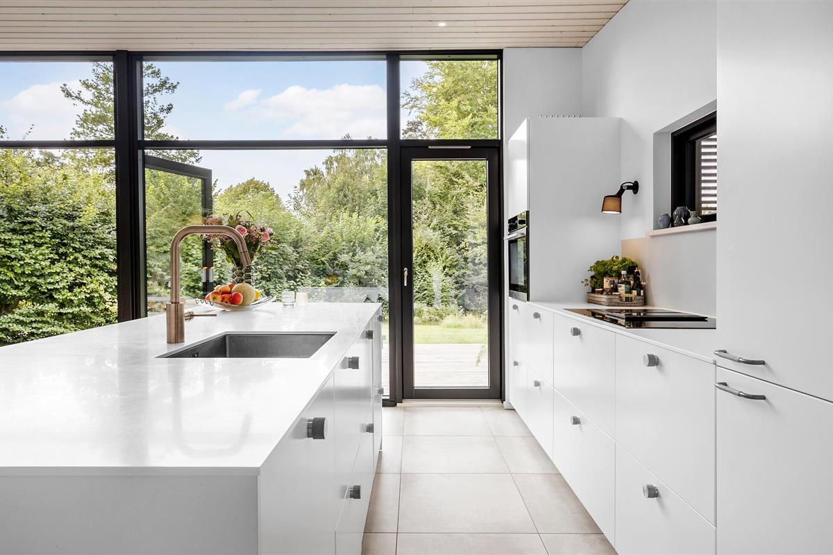 Modern vakantiehuis aan de Deense Rivièra met groot terras en nabij strand, natuur en stad.