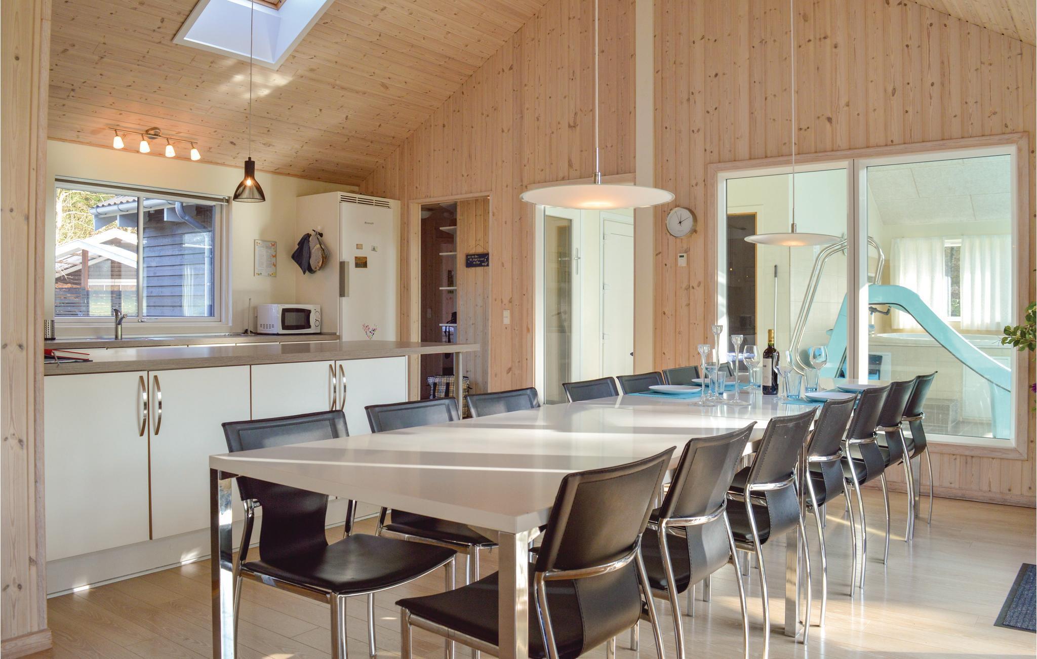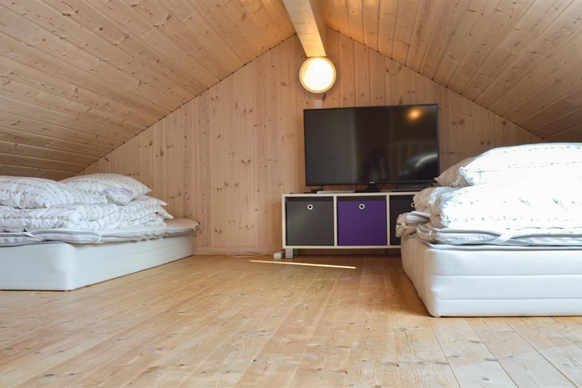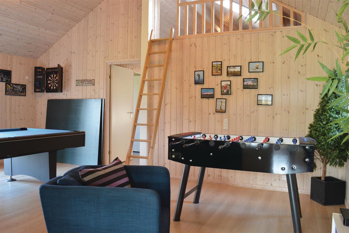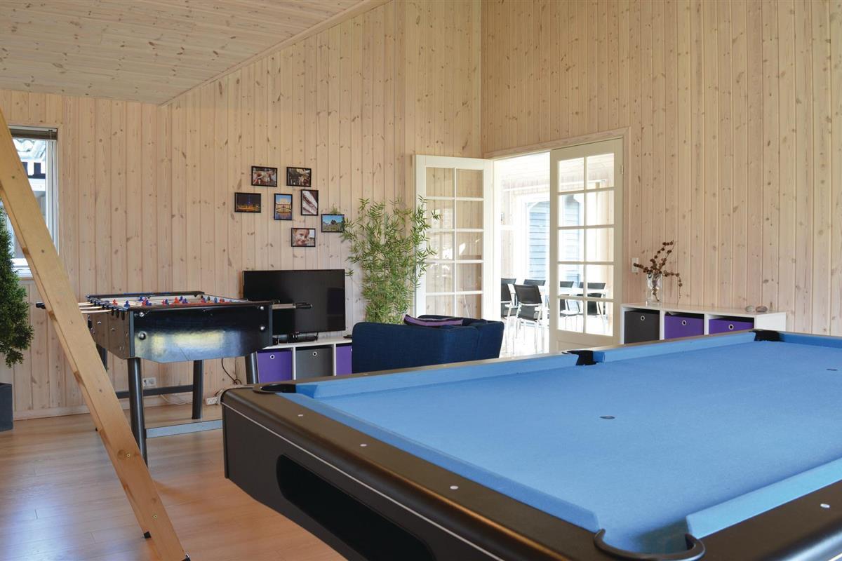 Dicht bij het mooie dorp Hornbæk bieden wij dit vakantiehuis met zwembad en activiteitenruimte aan. Het heeft ook een groot, gedeeltelijk overdekt terras met tuinmeubelen, een mooi zwembad met vloerverwarming, zwembad, glijbaan, jacuzzi voor 4 personen en een sauna. Er is ook een mooie en moderne keuken in verbinding met de woon-eetkamer, waar het hele gezin ruimte vindt. Wanneer u niet voor de gezellige open haard zit, kunt u misschien biljarten, tafeltennissen of darten in de activiteitenruimte. Buiten kunt u brood bakken bij de open haard. De prachtige omgeving rond het huis nodigt uit tot lange wandelingen. Bezoek het gebied bij Tegners Museum, waar u de prachtige natuur kunt ervaren en loslopende dieren kunt zien. Breng een dag door aan het strand of in Hornbæk, een charmant stadje met cafés, restaurants en goede winkels. In de haven kunt u verse vis kopen voor een heerlijke maaltijd van de grill. Eindschoonmaak en energieverbruik betaalt u contant bij het huis.