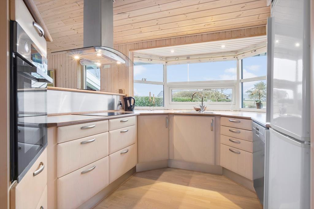 An das Haus schmiegt sich ein großes, teilweise überdachtes Terrassenareal. Eine Markise spendet auf Wunsch kühlen Schatten. Gartenmöbel, Liegestühle und ein Grill sind vorhanden. Vom ansprechend angelegten Garten blicken Sie bis zum Wasser. Die nächstgelegene Einkaufsmöglichkeit erreichen Sie nach rund 2 Kilometern. Rund 11 Kilometer trennen Sie vom beschaulichen Hafenort Faaborg, in dem Sie auf gute Einkaufsmöglichkeiten und mehrere Restaurants treffen.