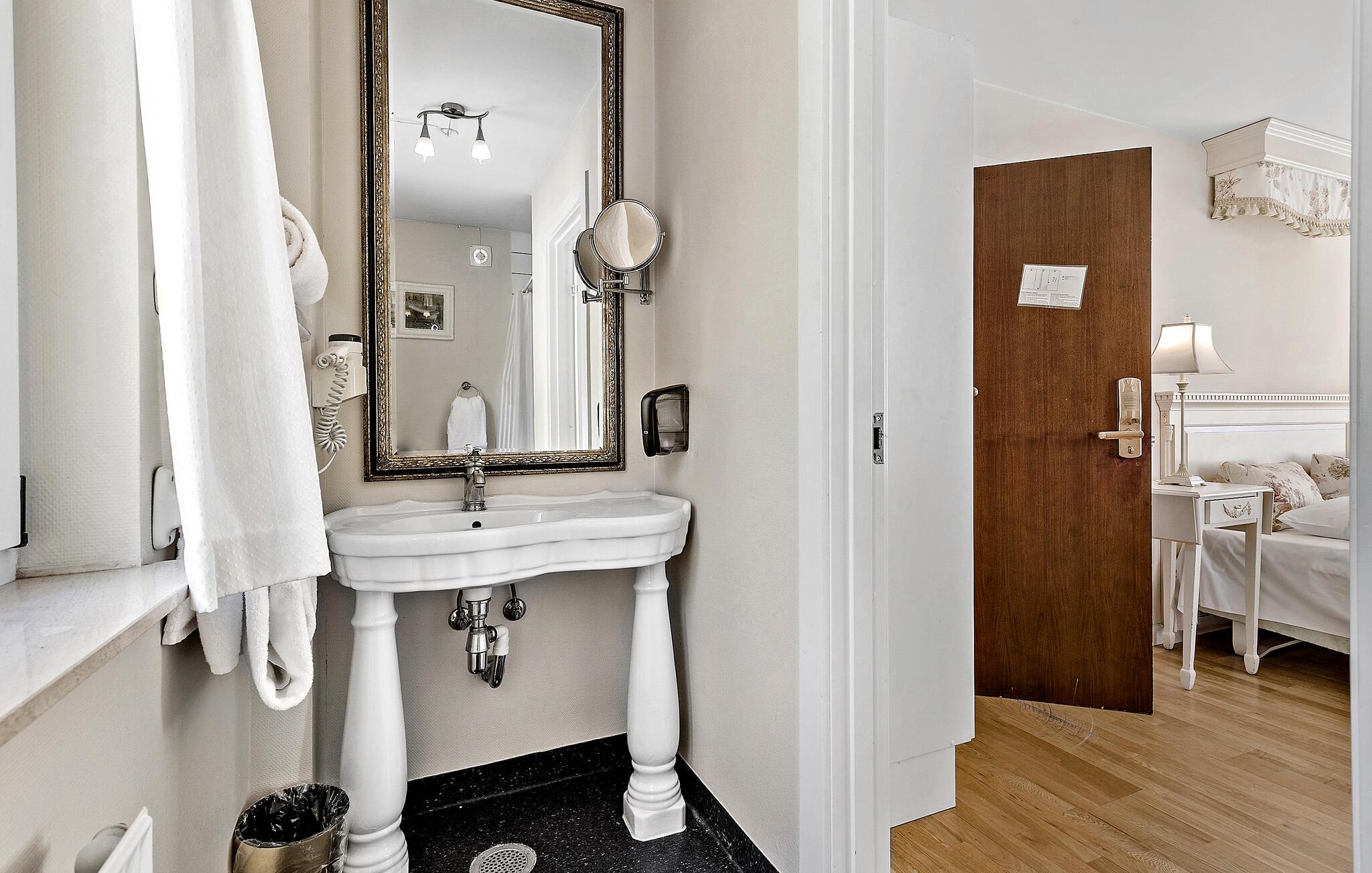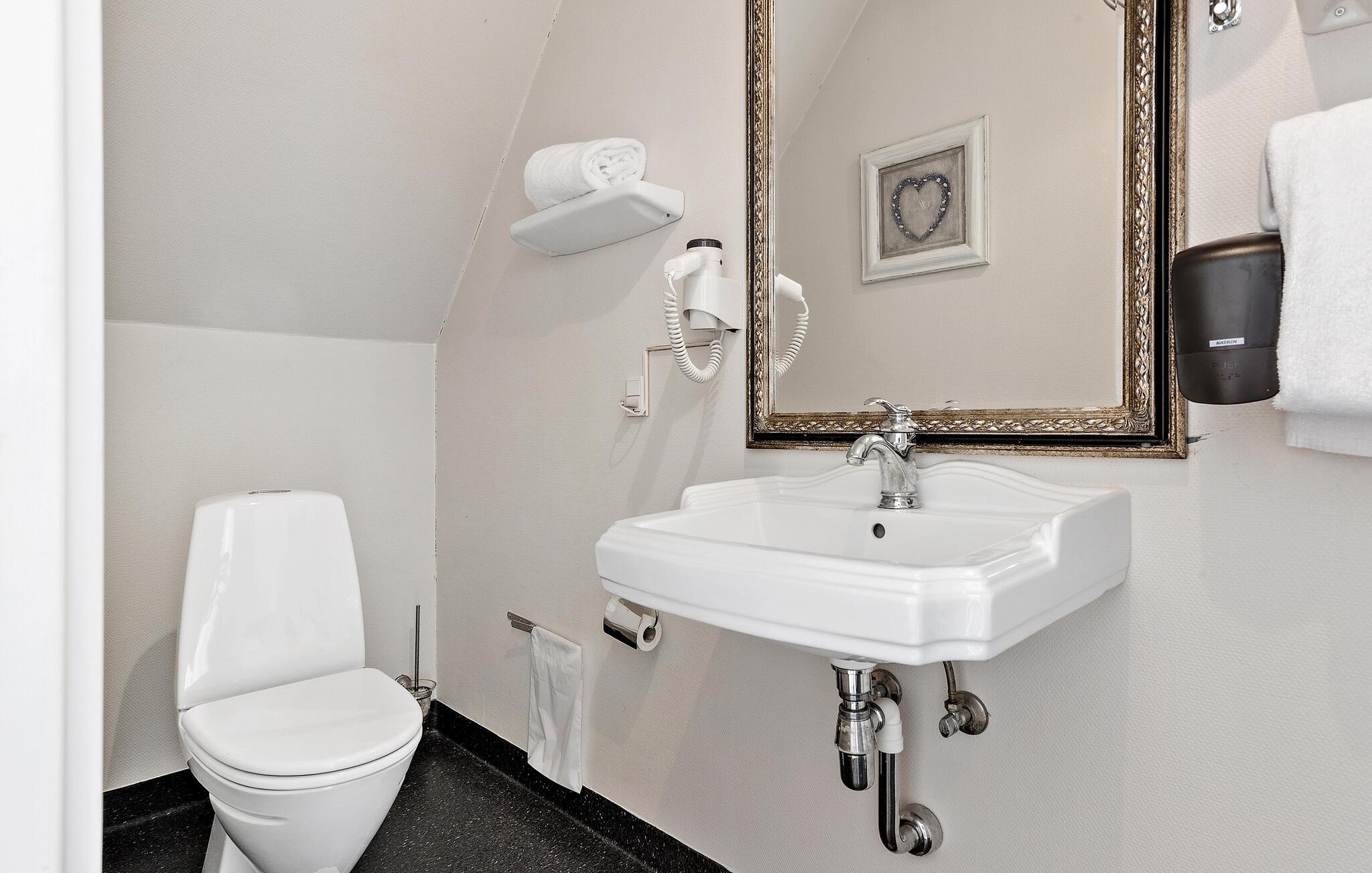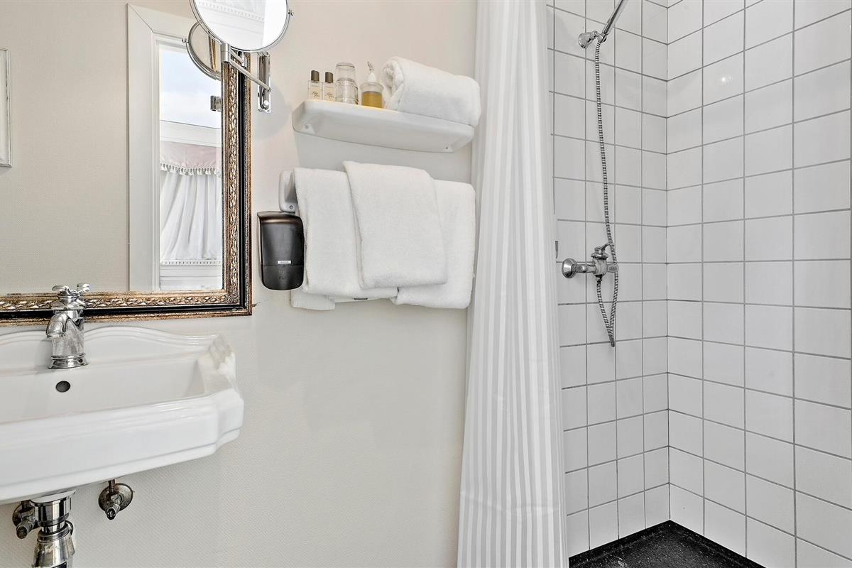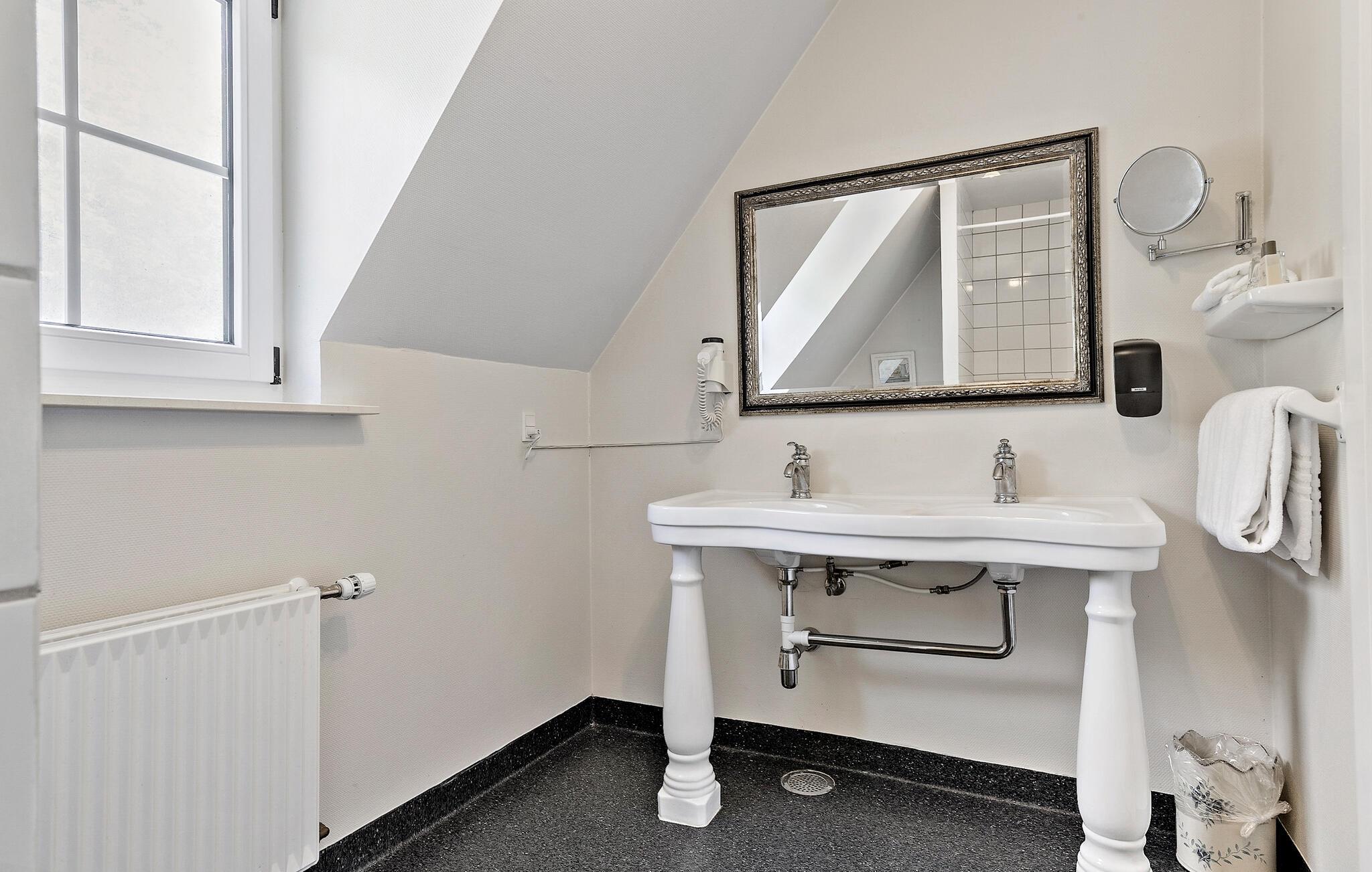 Elegant en stijlvol vakantiehuis in kasteelpark Hvedholm, ideaal voor familie en vrienden, met privébadkamers en terras.