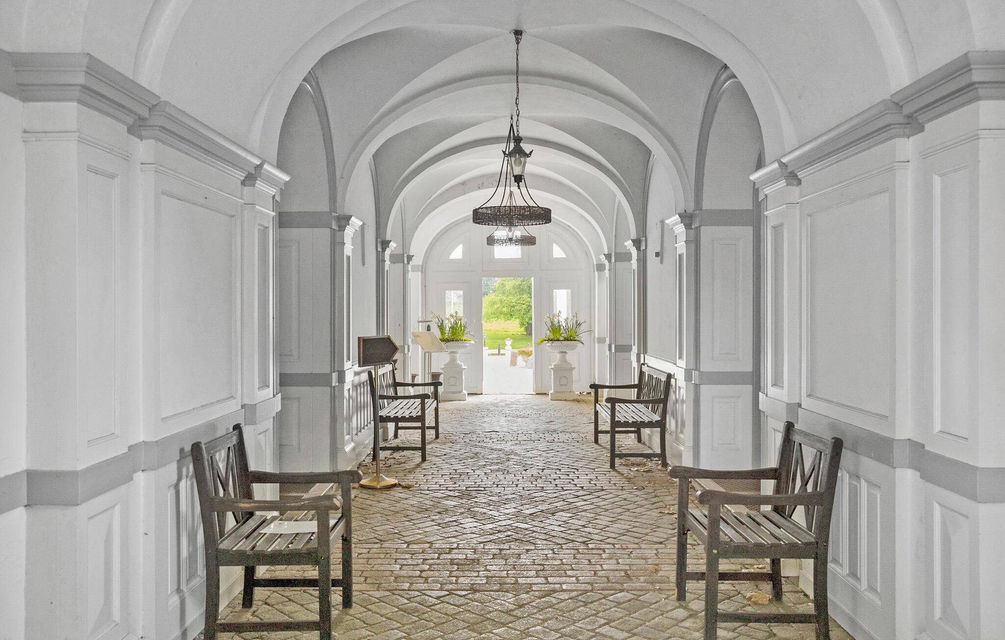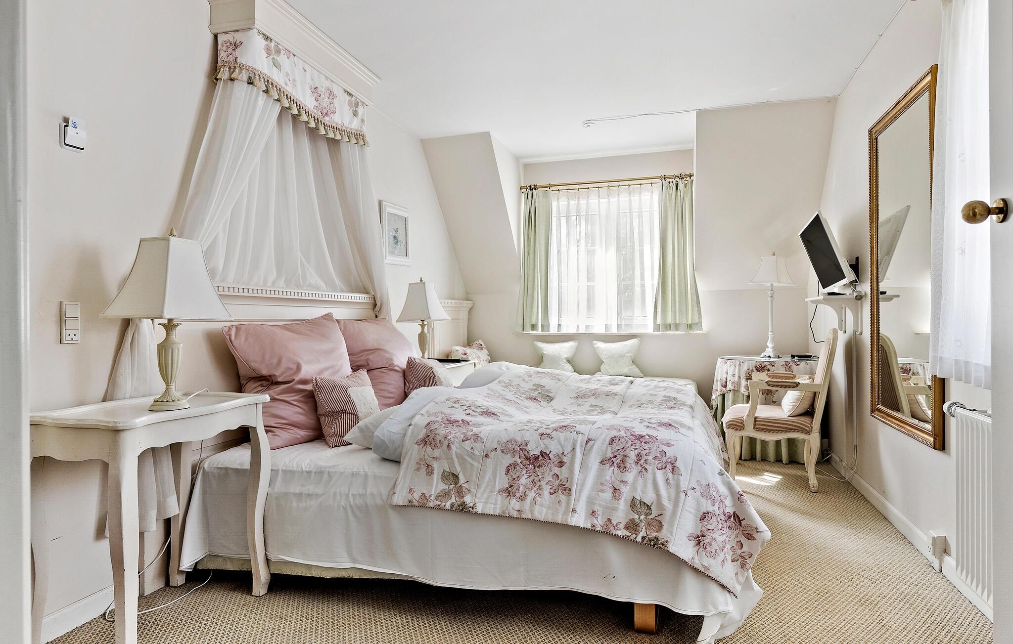 Dit elegante en verfijnde vakantiehuis ligt in het kasteelpark van kasteel Hvedholm.