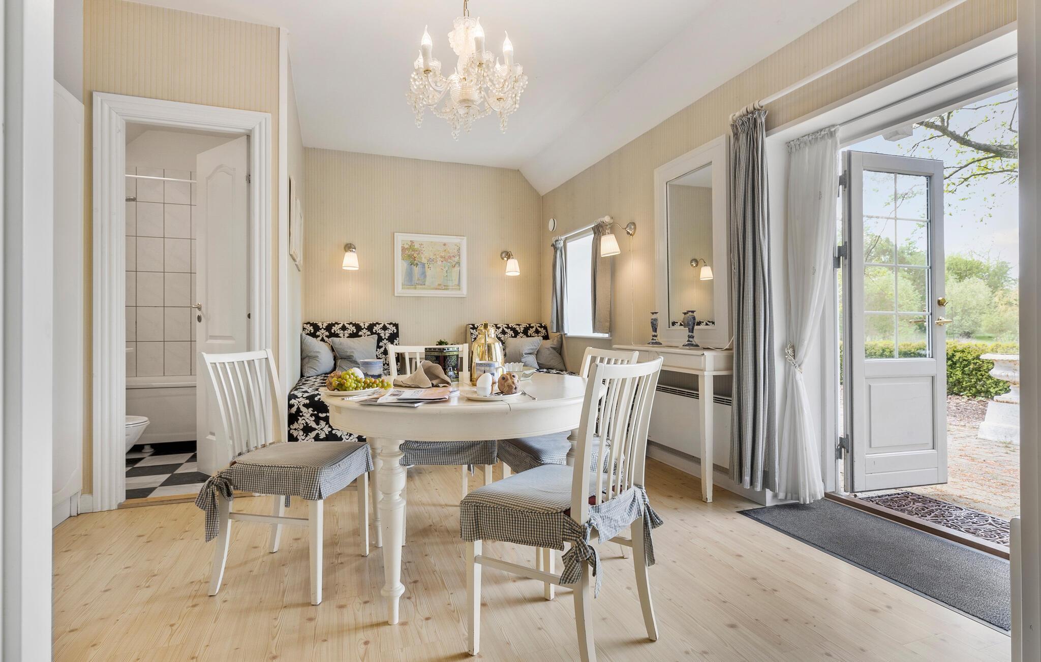 Gezellig vakantiehuis in kasteelpark Hvedholm met rust, natuur en comfort voor een ontspannen verblijf.