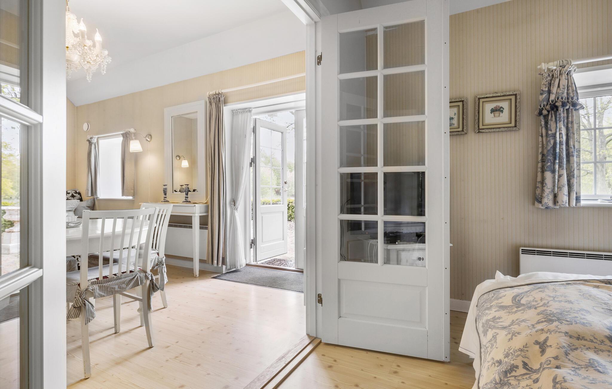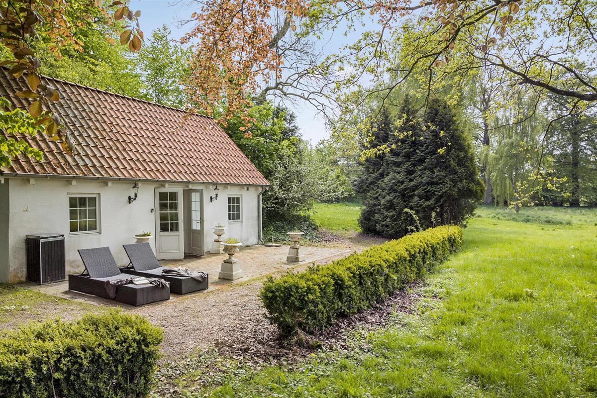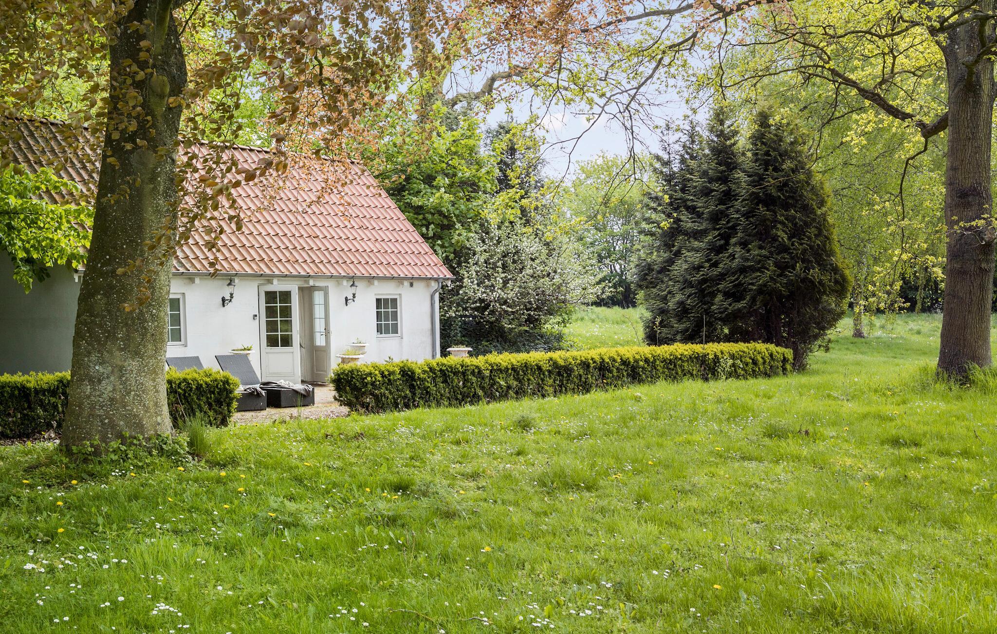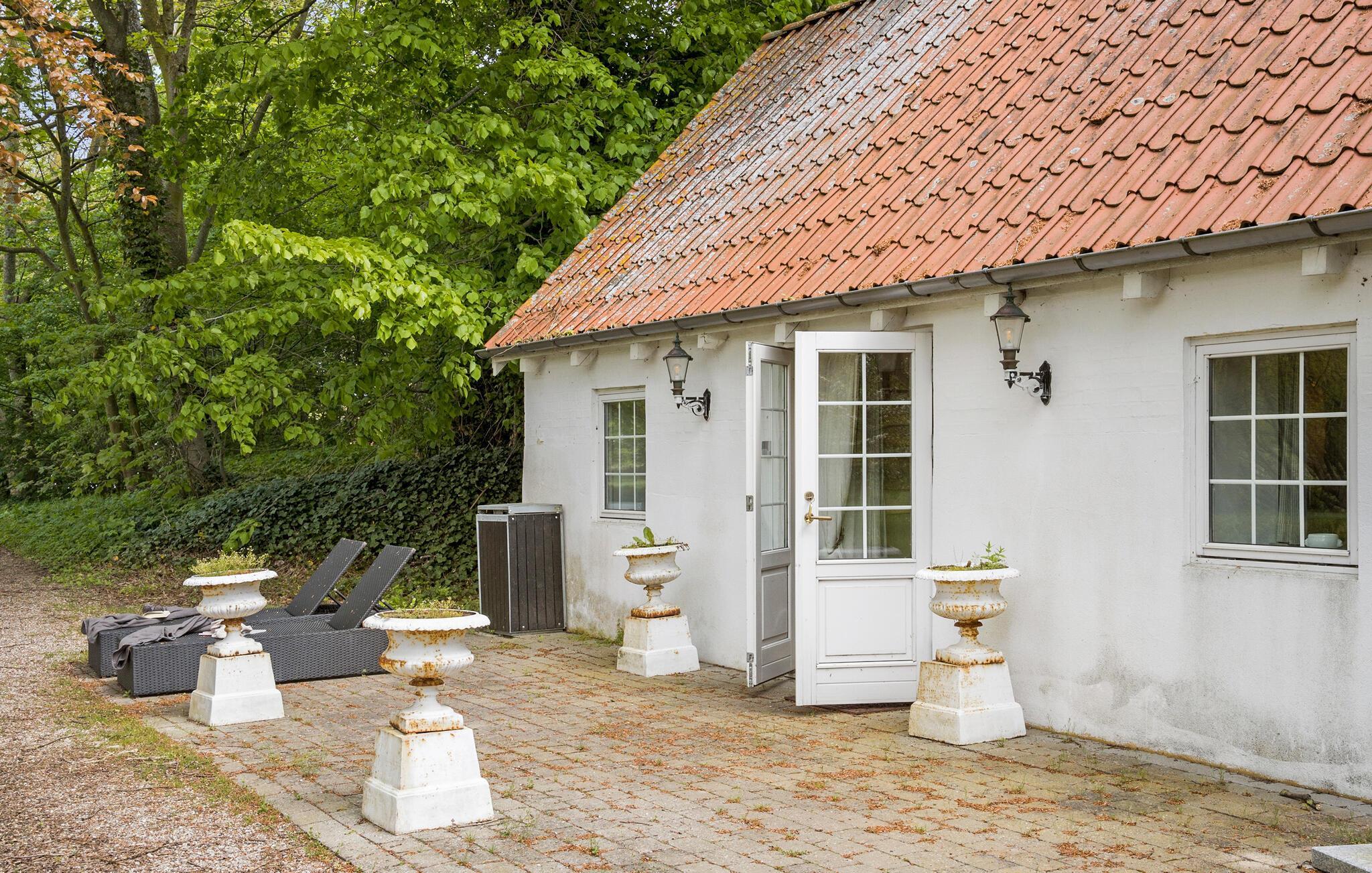 Dit gezellige en charmante vakantiehuis verwelkomt je in het kasteelpark van Kasteel Hvedholm.