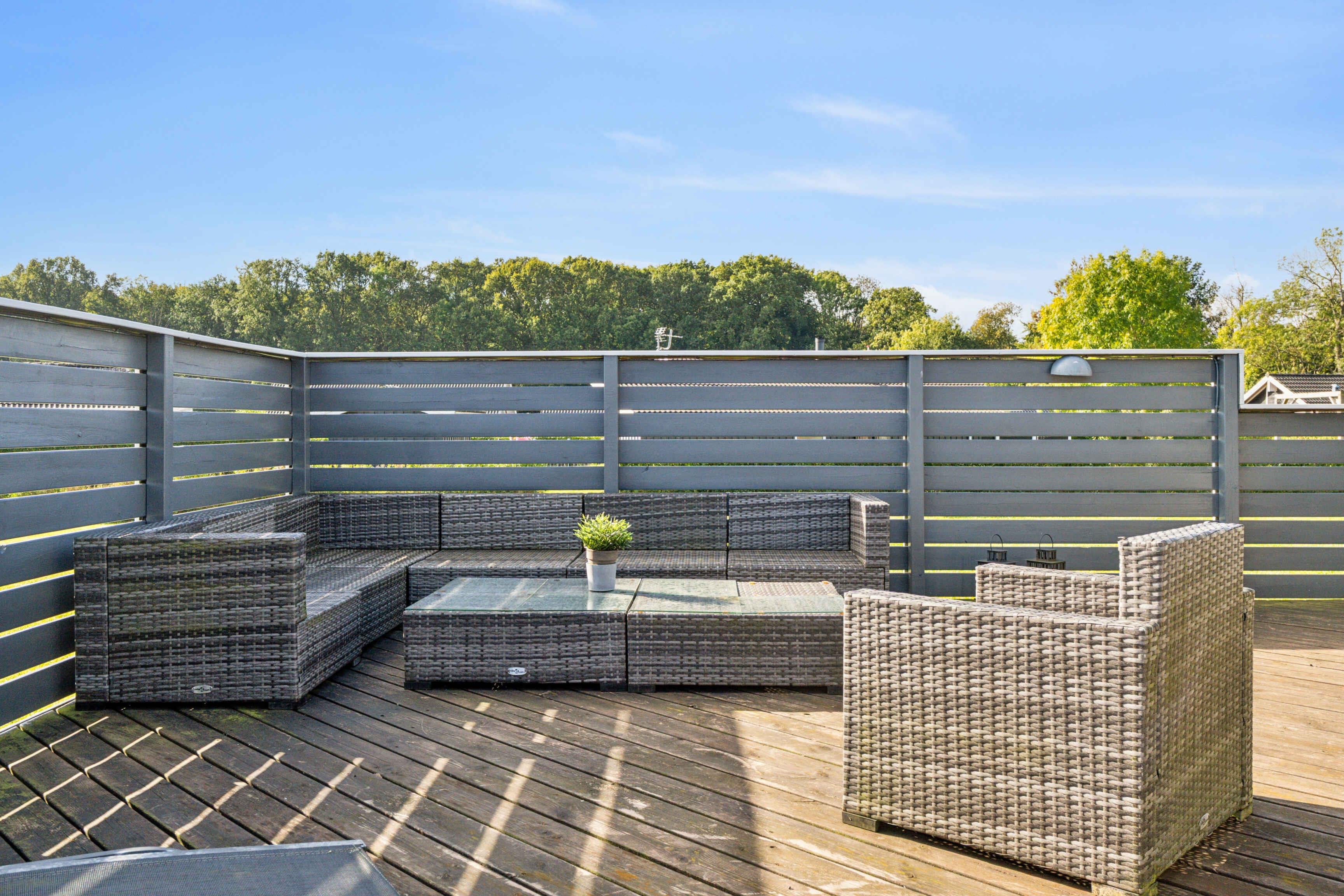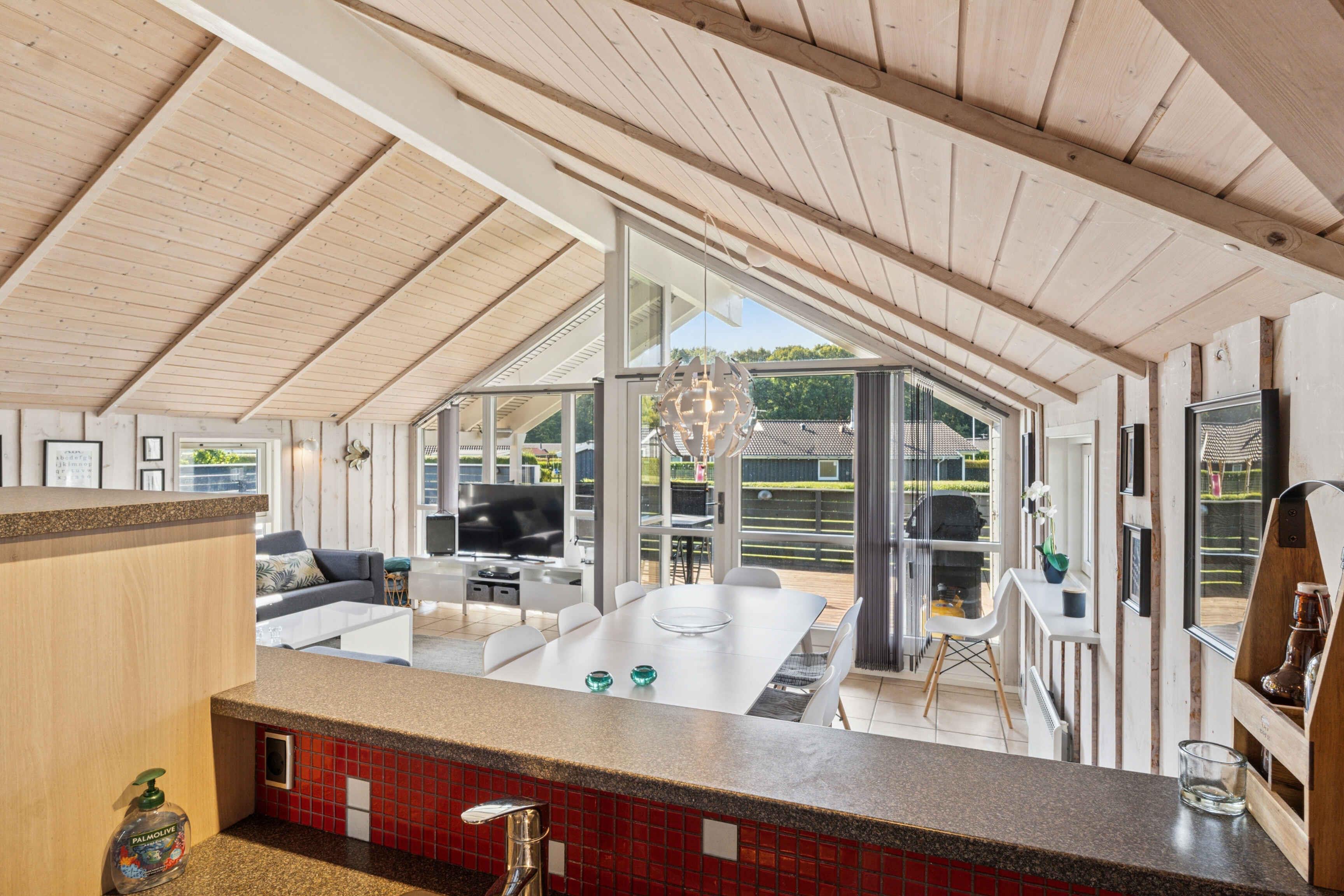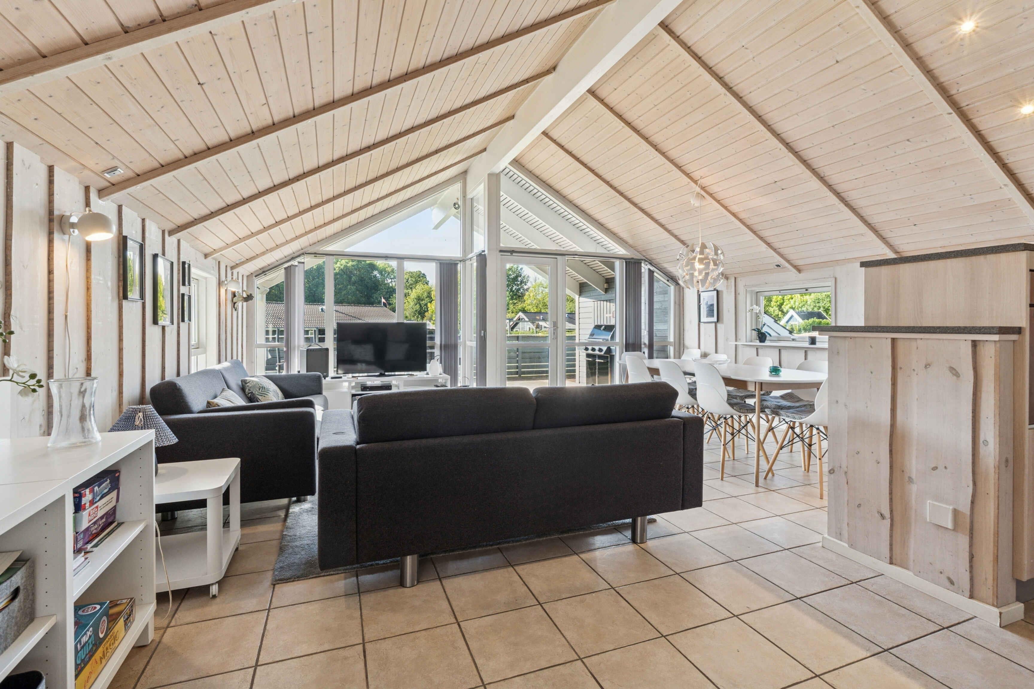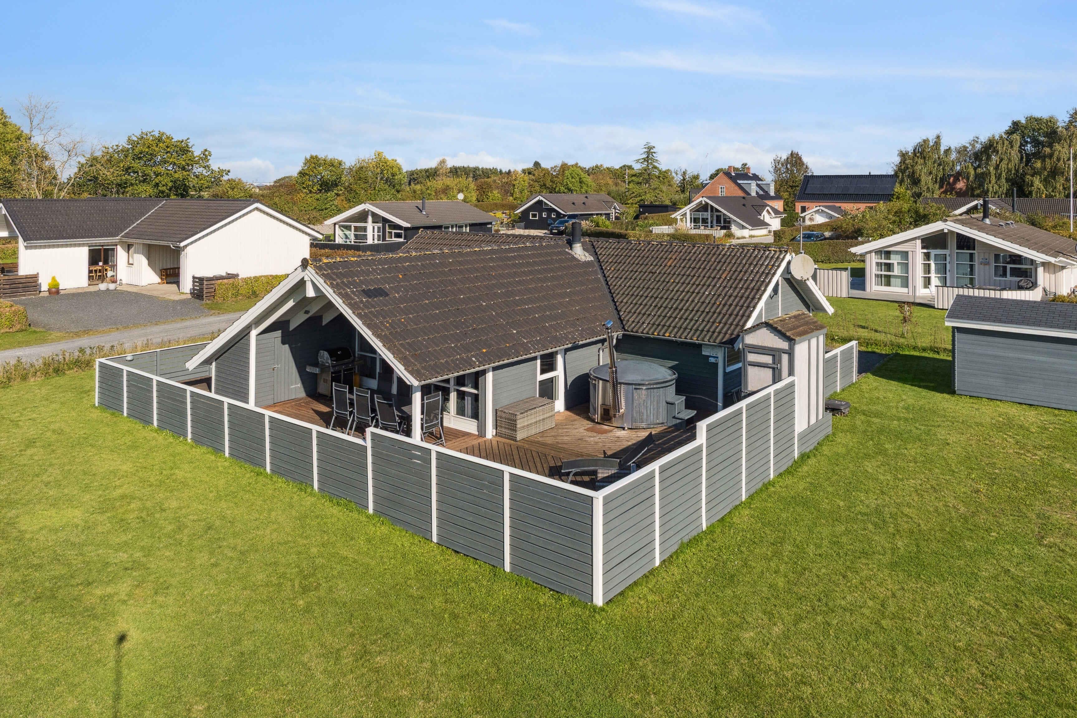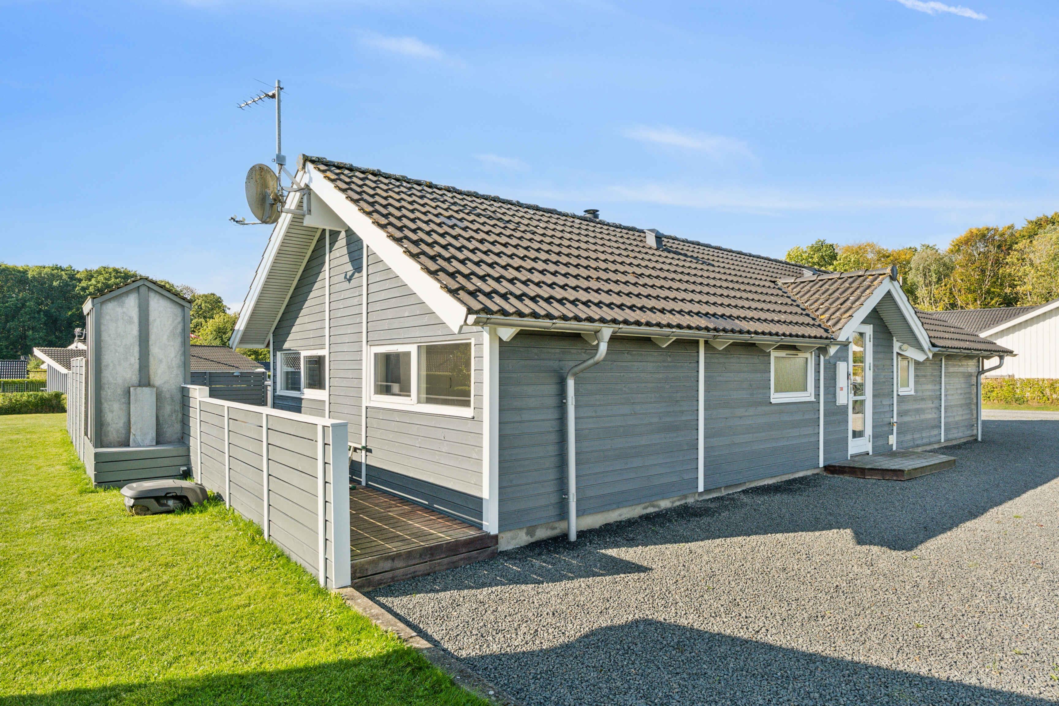 Een verblijf hier is gemaakt voor ontspanning en mooie vakantiesouvenirs. Het zomerhuis van 109 m² beschikt over vier slaapkamers en biedt plaats aan acht gasten. De slaapkamers liggen aan beide kanten van het huis – ideaal voor twee gezinnen met kinderen. De lichte woonkamer met hoge plafonds vormt het hart van het huis – perfect voor gezellige momenten samen en een vakantie met honden. Het terras is een waar toevluchtsoord. Het grote houten terras biedt een veilige omgeving voor honden die van hun vrijheid kunnen genieten, terwijl de rest van het gezin ontspant. Een deel van het terras is overdekt, zodat je ook bij zon en zomerregen buiten kunt genieten. Het buitenbad staat klaar – perfect voor sterrenkijken en zwoele avonden. De wellnesservaring gaat binnen verder, waar de sauna uitnodigt na een dag in de natuur. In de badkamer bevindt zich ook een bubbelbad, zodat lichaam en geest volledig tot rust kunnen komen. Hier draait alles om rust, verwennerij en samenzijn. Slechts 400 meter verder ligt het strand. De brede kustlijn en de vele paden in de omgeving maken het gebied ideaal voor vakanties met honden, die vrij kunnen rennen en lange wandelingen langs het water kunnen maken. Bossen, groene paden en open landschappen liggen direct voor de deur. De omgeving biedt een mix van natuur en charmante uitstapjes. Er zijn kleine havens, fietsroutes, vismogelijkheden en nabijgelegen steden met cafés en lokale bezienswaardigheden. De sfeer is rustig en ontspannen, maar met ruimte voor avontuur – een ideale plek voor zowel mensen als hun viervoetige vrienden.