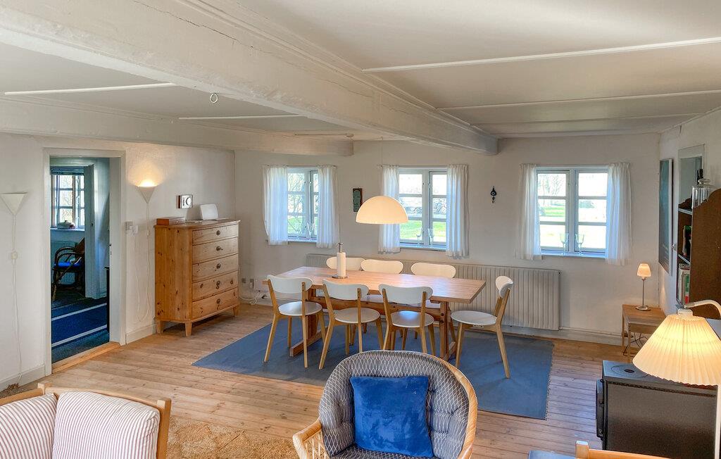 Breng rustige en inspirerende dagen door in je liefdevol gerestaureerde huis op het eiland Lolland. Het huis combineert traditioneel karakter met gezellig comfort en is omgeven door natuur, ideaal voor een pauze van het dagelijks leven. Stap binnen in de stijlvol ingerichte woonkamer met comfortabele stoelen en een gezellige leeshoek. Ontspan met een boek uit de boekenkast of geniet van lange gesprekken aan de grote eettafel. Het open ontwerp creëert een warme en uitnodigende sfeer. Kook in de prachtige keuken in landelijke stijl en geniet van je maaltijden in de aangrenzende kleine eethoek met uitzicht op de tuin.