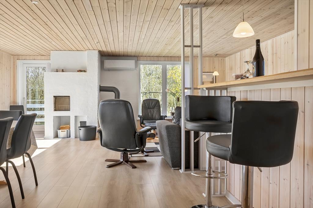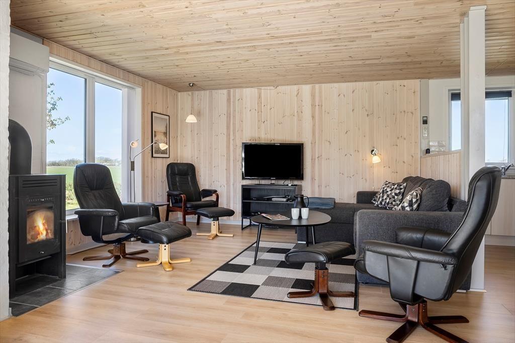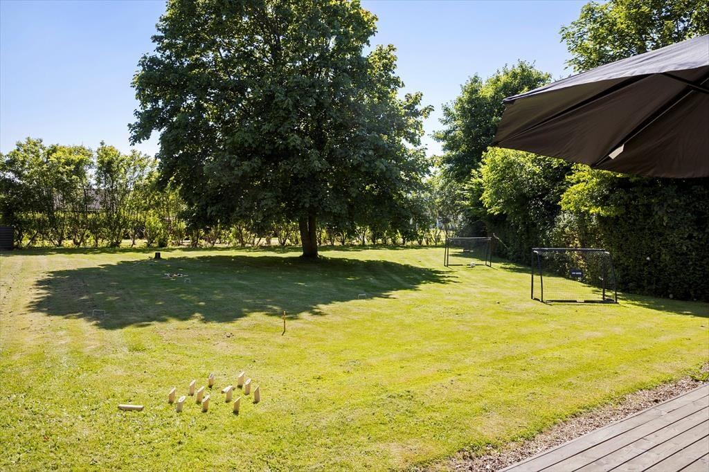 Dein Ferienhaus liegt hübsch platziert am nördlichen Ende des Ferienhausgebietes Hostrup Strand - direkt an offenen Feldern und nur einen kurzen Spaziergang vom Limfjord entfernt. Das friedvolle Ferienhausgebiet besticht mit grünen, hügeligen Freiflächen und guten Spielplätzen, die Spaß und Abwechslung für die Jüngsten versprechen. Das Highlight ist selbstverständlich der Strand, an dem ihr baden, Spaziergänge unternehmen oder auch einfach nur in Ruhe sitzen und die Aussicht über die Venø Bucht genießen könnt. In weniger als einer Viertelstunde erreicht ihr per Pkw die beeindruckende Sehenswürdigkeit Burg Spøttrup. Die unter Naturschutz stehende Halbinsel Kås Hoved ist noch schneller erreicht und lädt zu Wanderungen und Angeltouren in herrlicher Natur ein.