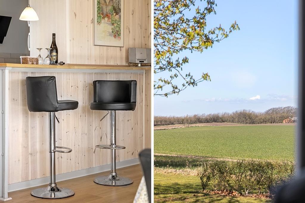 Dein 93 m² großes Urlaubsdomizil besticht mit einer schönen Wohnatmosphäre. Alle Räume präsentieren sich nach der letzten Modernisierung und Renovierung schön und einladend. Das moderne Duschbadezimmer und die drei ansprechenden Schlafräume sind zusammen in einem Abschnitt des Hauses platziert. Die gut ausgestattete Küche ist offen in den Wohnraum integriert. Während du in der Küche die Mahlzeiten zubereitest, leisten dir deine Familienmitglieder sicher gern Gesellschaft. Am Küchentresen stehen Barhocker zur Verfügung, die zu angeregten Gesprächen mit einem kühlen Getränk und Aussicht auf die offene Landschaft vor den Fenstern einladen. Der offene Kamin und der Kaminofen untermalen eure entspannten Stunden in der Polstersitzgruppe mit heimeliger Wärme und einem Maximum an echter Ferienhausgemütlichkeit.