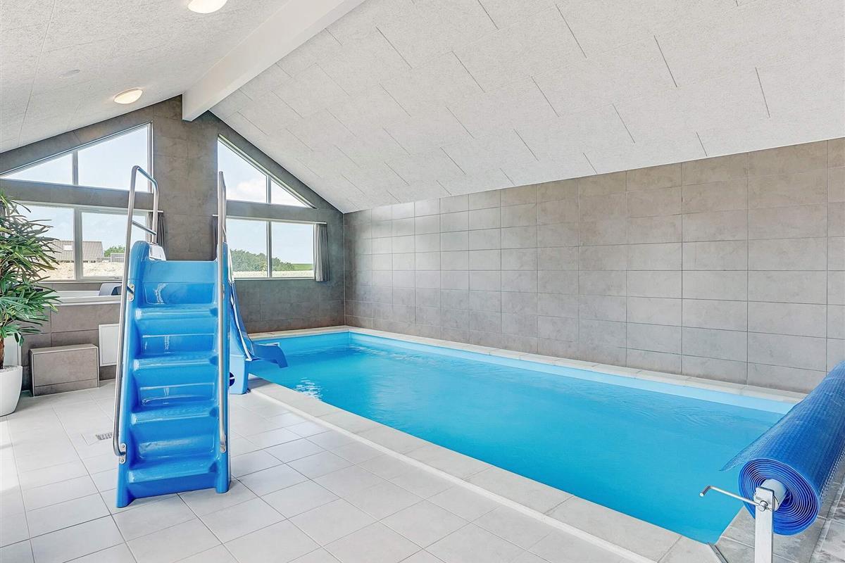 Wenn Sie gerne schwimmen, ist der eigene Badebereich des Ferienhauses ideal. Hier finden Sie den beheizten Swimmingpool des Ferienhauses mit Wasserrutsche, Gegenstromanlage und römischer Treppe. Nach dem Schwimmen im Pool können Sie ein Bad im Whirlpool oder in der Sauna genießen – vielleicht ein noch größerer Hit bei den älteren Mitgliedern der Gruppe?