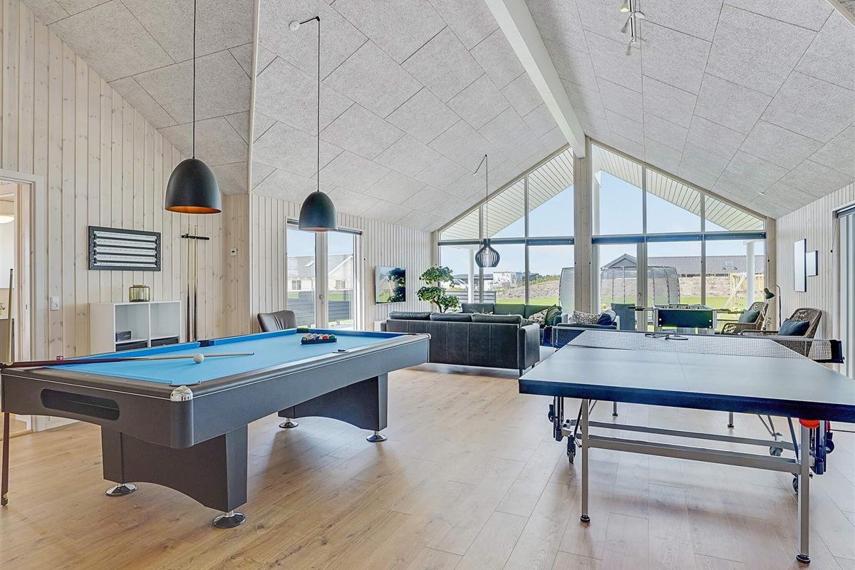 Die vielen Möglichkeiten des Ferienhauses setzen sich im Aktivitätsraum fort. Hier können Sie Billard, Tischtennis, Tischfußball und Darts spielen. Während die Spieler mit den verschiedenen Aktivitäten beschäftigt sind, können die Zuschauer einen Drink an der Bar des Raumes genießen. Wenn Sie Lust auf einen Film haben, können Sie dies auf der Sofaecke tun, die mit einer PlayStation 4 ausgestattet ist.