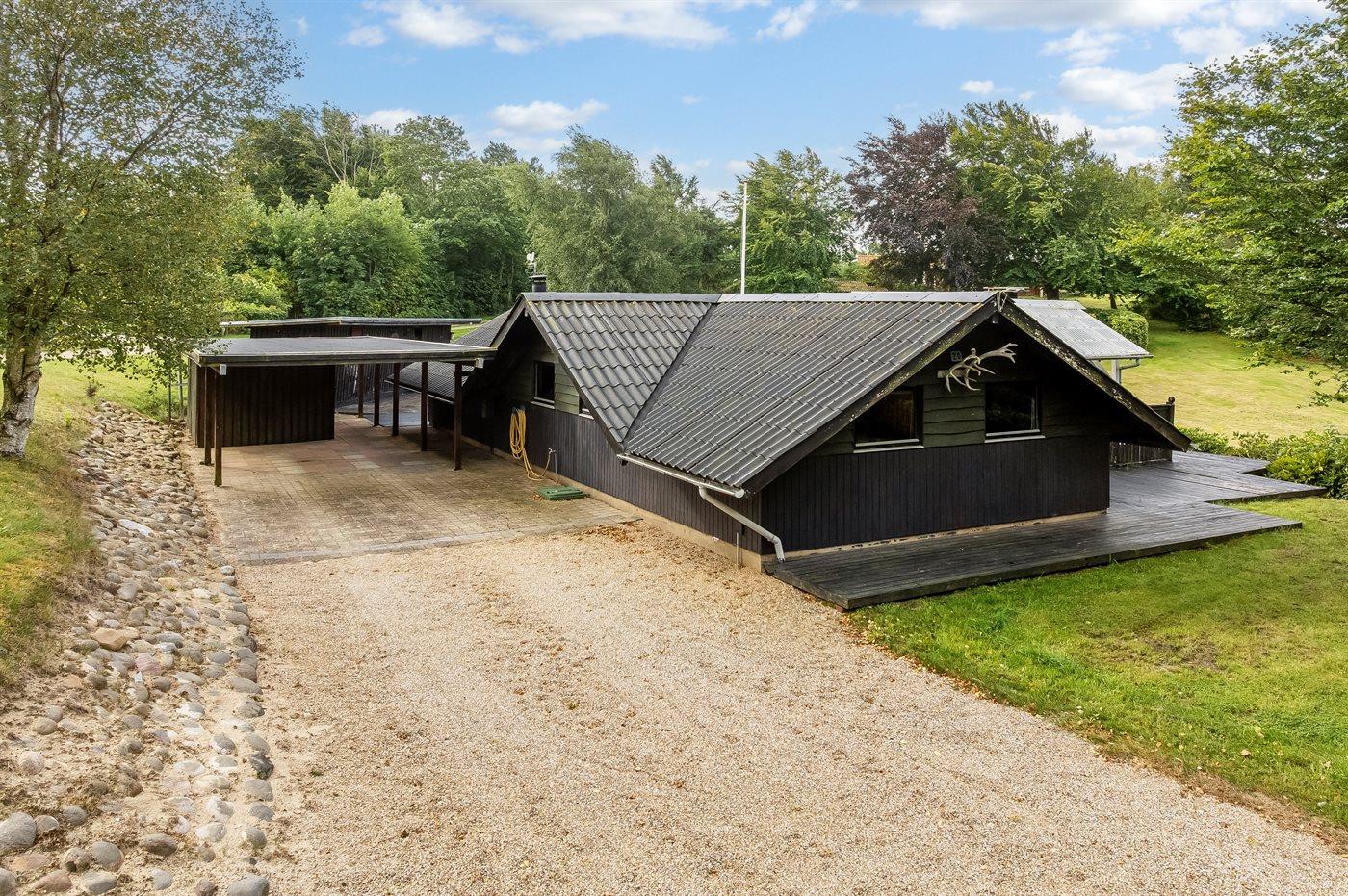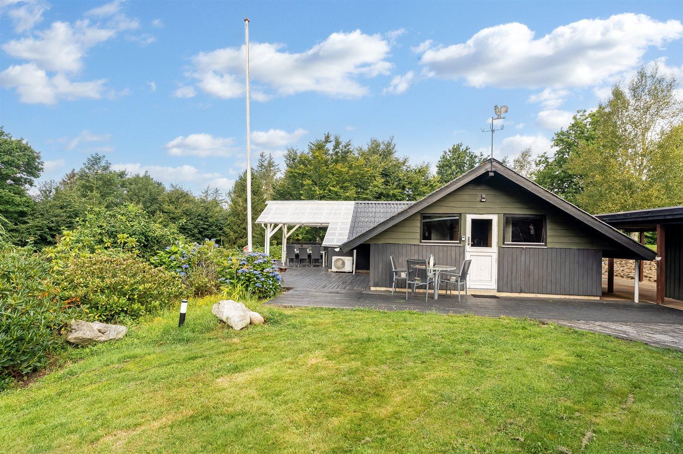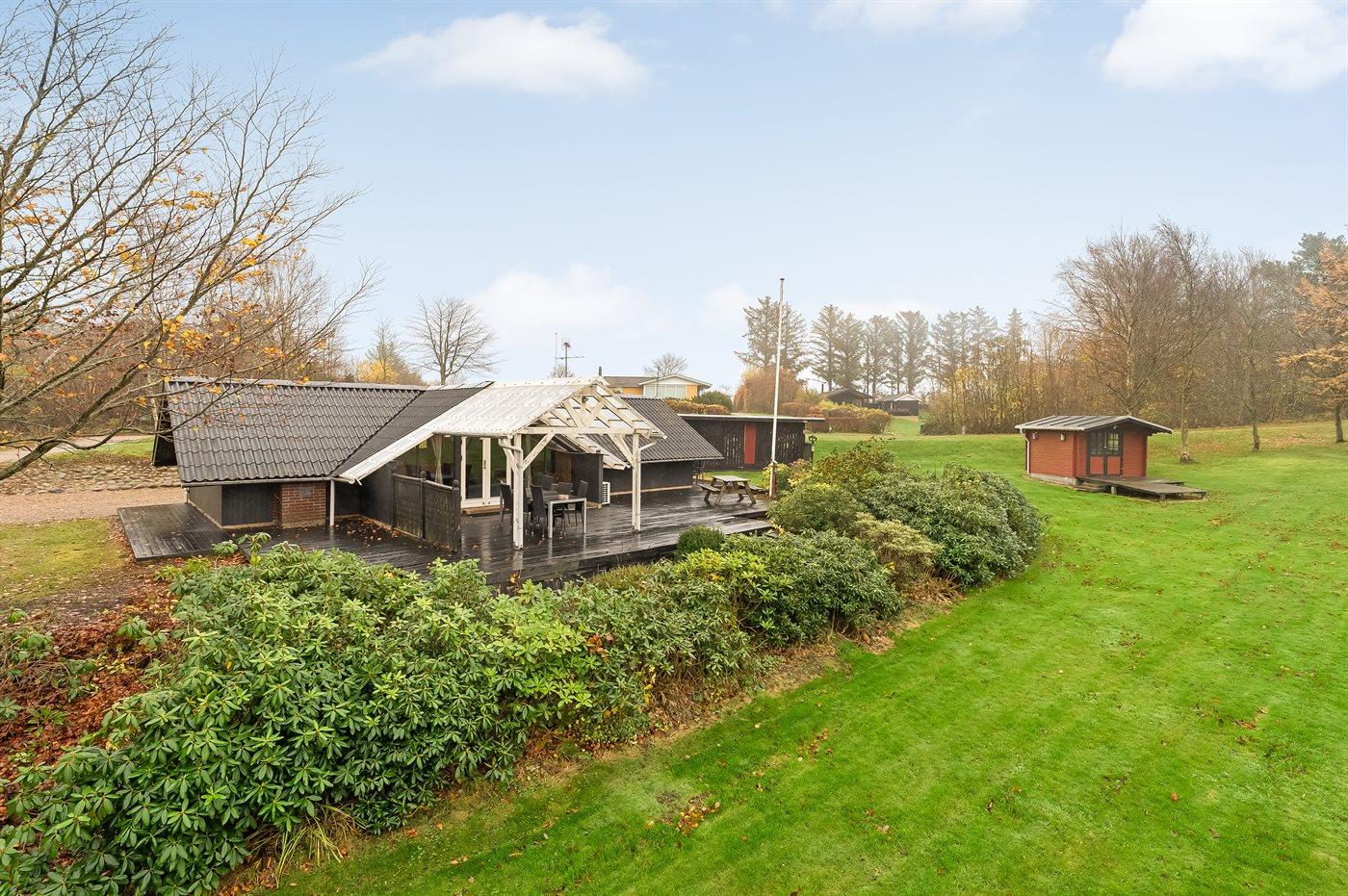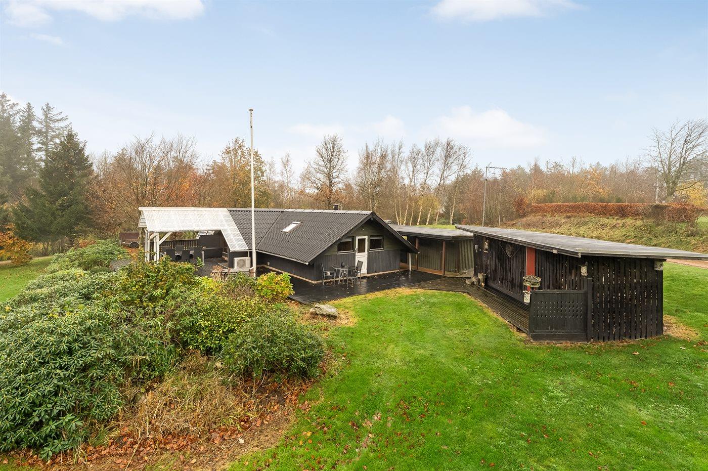De vakantiewoning is gelegen op een 2581 m² groot natuural grond. Afstand tot de zee 25000 m. Afstand tot de fjord 500 m. Er is een zwemsteiger in de buurt. Dichtstbijzijnde winkel 4500 m. Er is een golfbaan op een afstand van 12000 m. Bij de vakantiewoning hoort terras. Daarnaast is er een overdekt terras. Gereedschapsruimte.Vuurplaats. Carport ter beschikking. Parkeerplaats bij het huis.