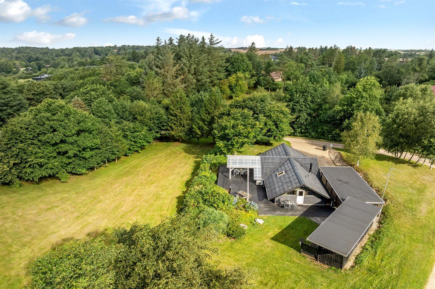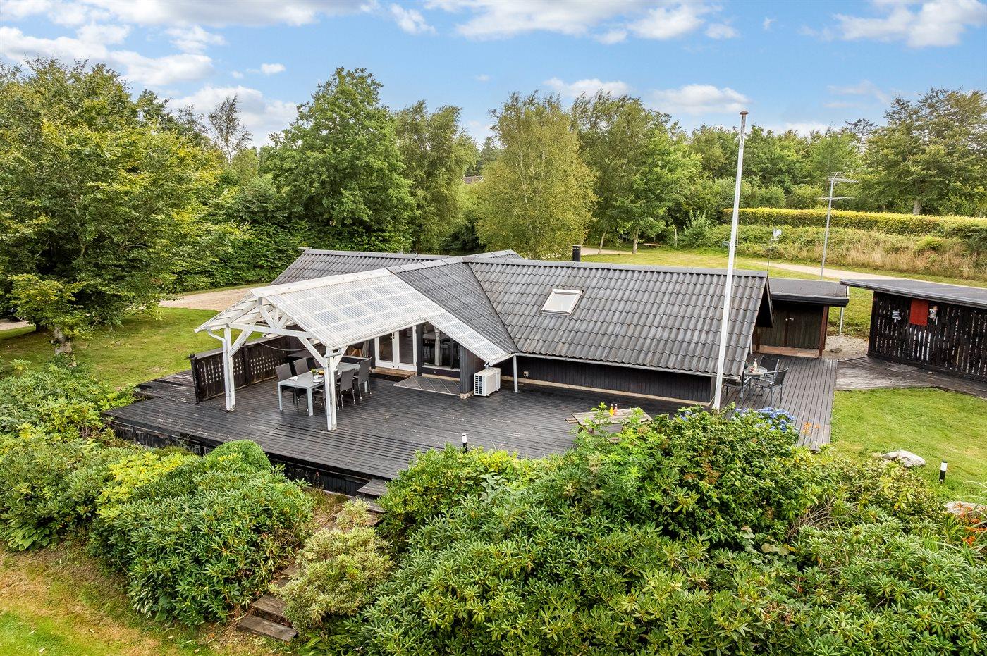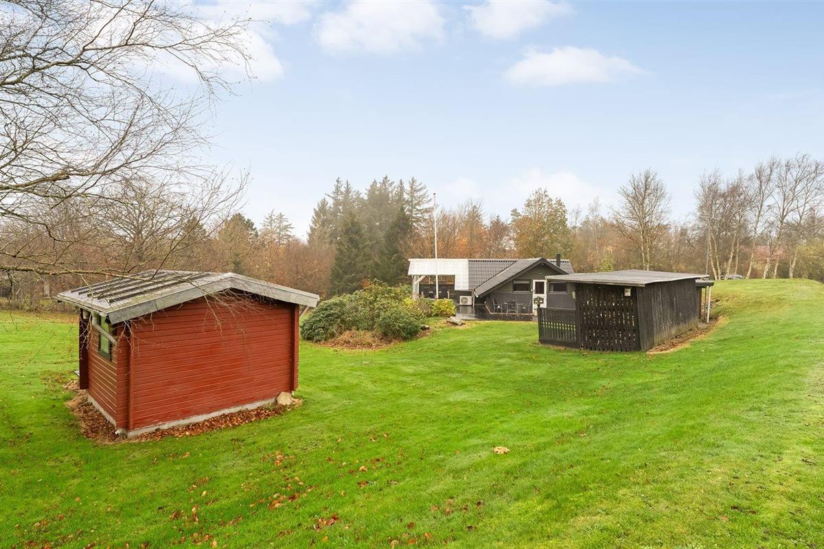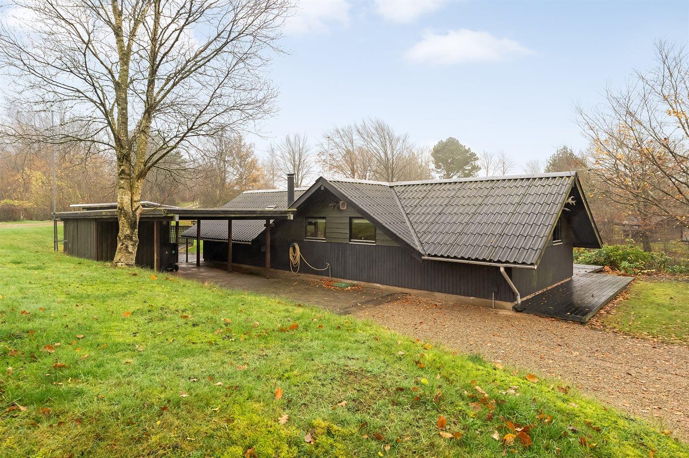 De vakantiewoning is gelegen op een 2581 m² groot natuural grond. Afstand tot de zee 25000 m. Afstand tot de fjord 500 m. Er is een zwemsteiger in de buurt. Dichtstbijzijnde winkel 4500 m. Er is een golfbaan op een afstand van 12000 m. Bij de vakantiewoning hoort terras. Daarnaast is er een overdekt terras. Gereedschapsruimte.Vuurplaats. Carport ter beschikking. Parkeerplaats bij het huis.