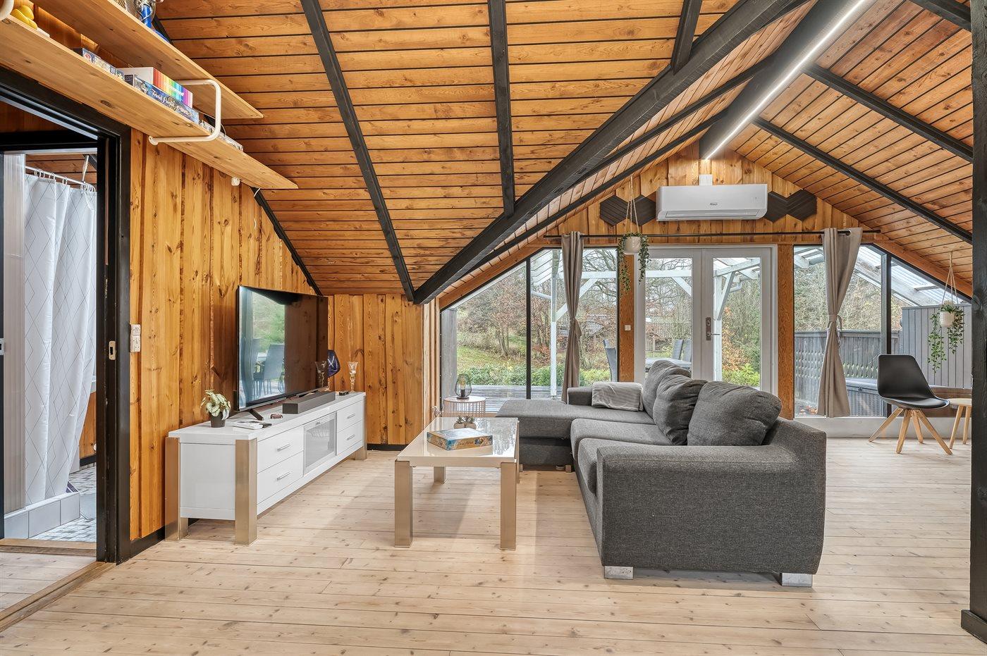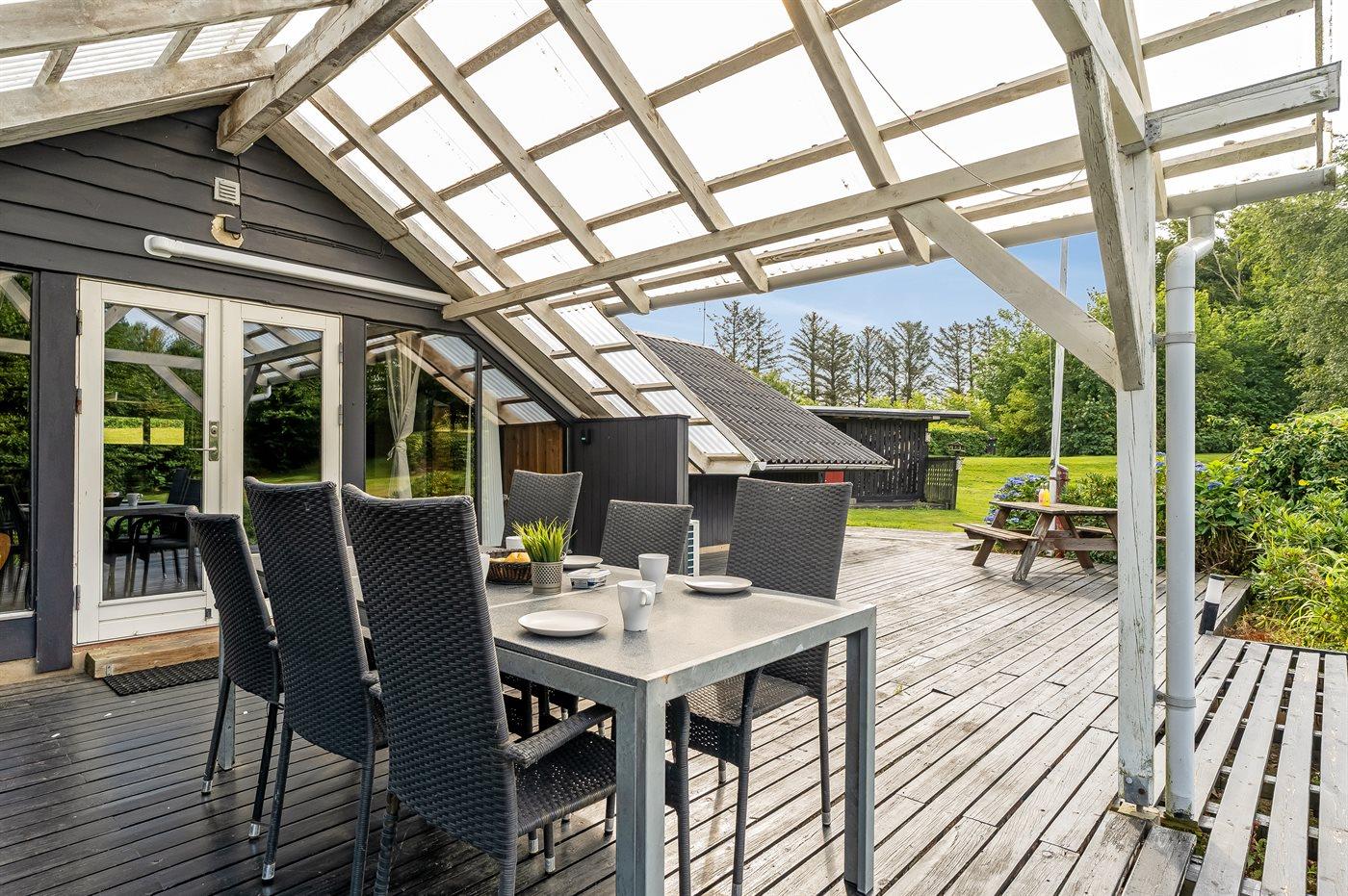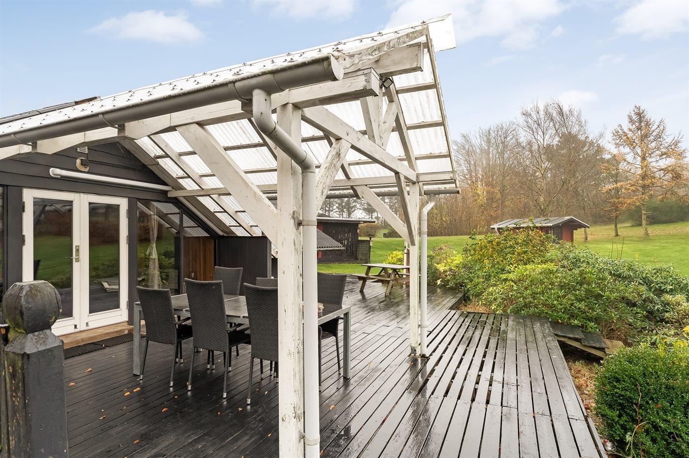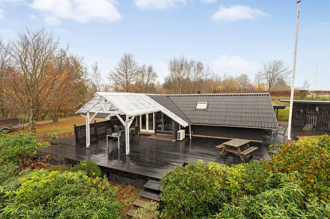 De vakantiewoning is gelegen op een 2581 m² groot natuural grond. Afstand tot de zee 25000 m. Afstand tot de fjord 500 m. Er is een zwemsteiger in de buurt. Dichtstbijzijnde winkel 4500 m. Er is een golfbaan op een afstand van 12000 m. Bij de vakantiewoning hoort terras. Daarnaast is er een overdekt terras. Gereedschapsruimte.Vuurplaats. Carport ter beschikking. Parkeerplaats bij het huis.