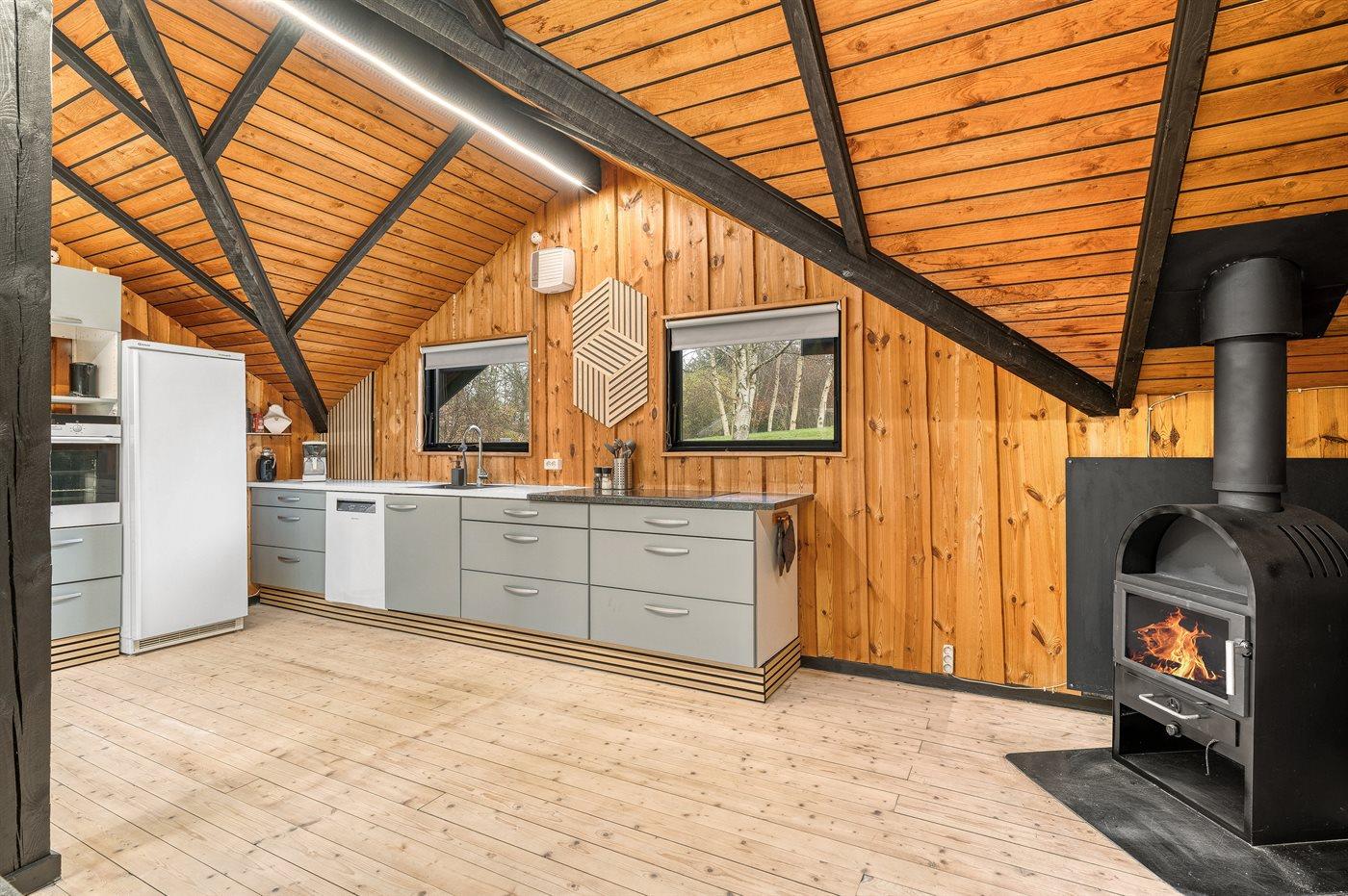 De keuken is uitgerust met koelkast Er is 4 inductiekookplaten, heteluchtoven, magnetron en vaatwasser.