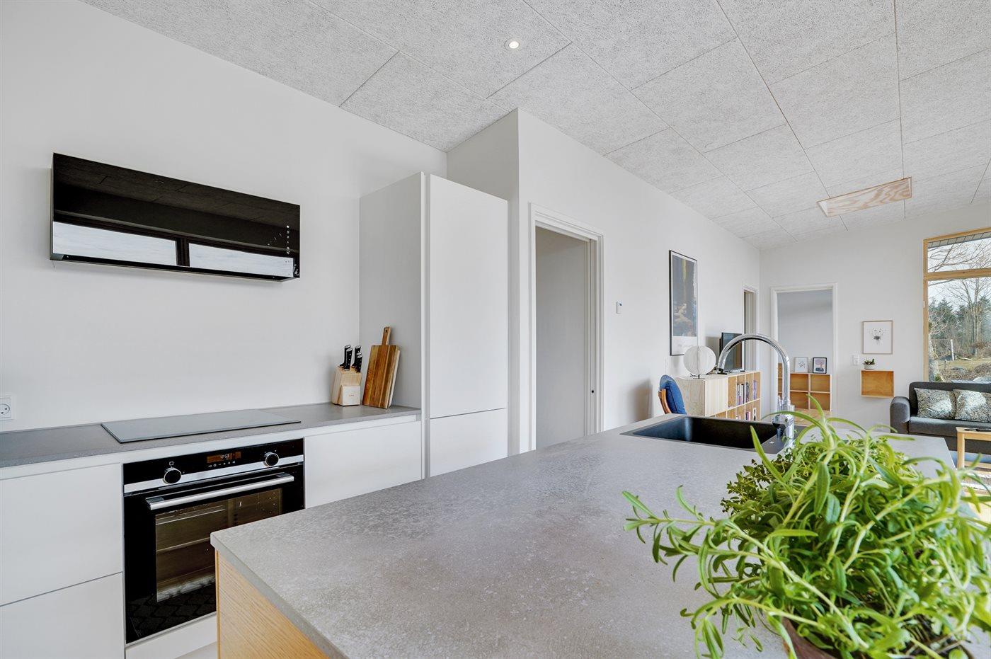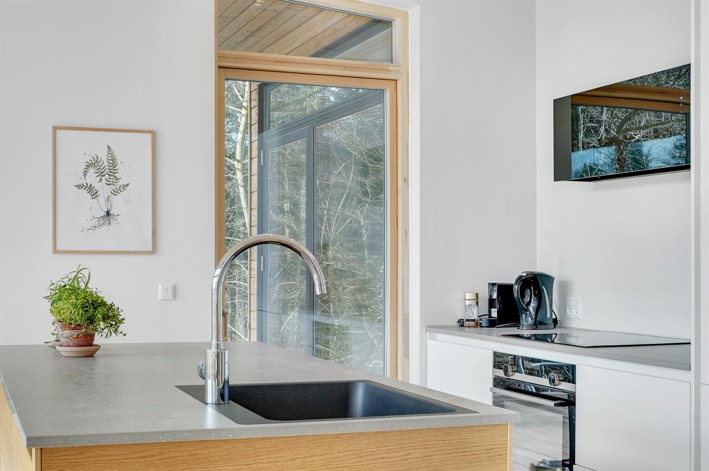 De keuken is uitgerust met koelkast Er is 4 inductiekookplaten, heteluchtoven en vaatwasser.