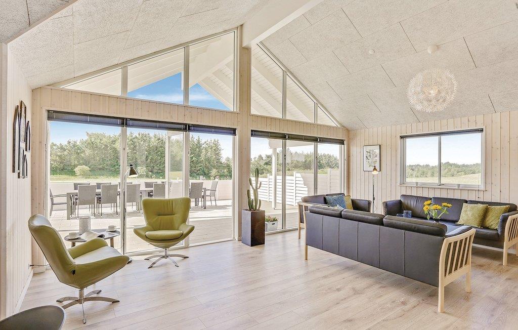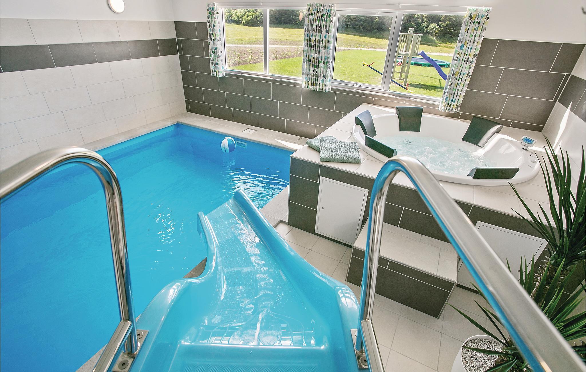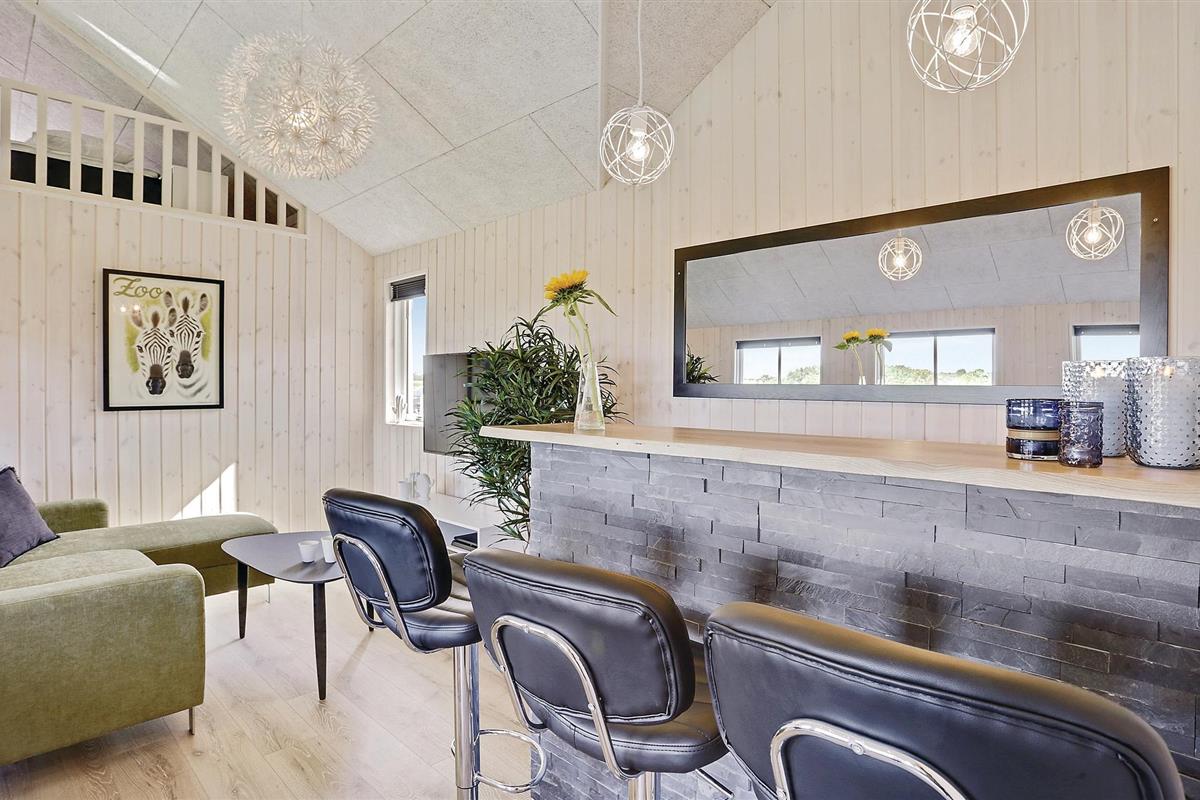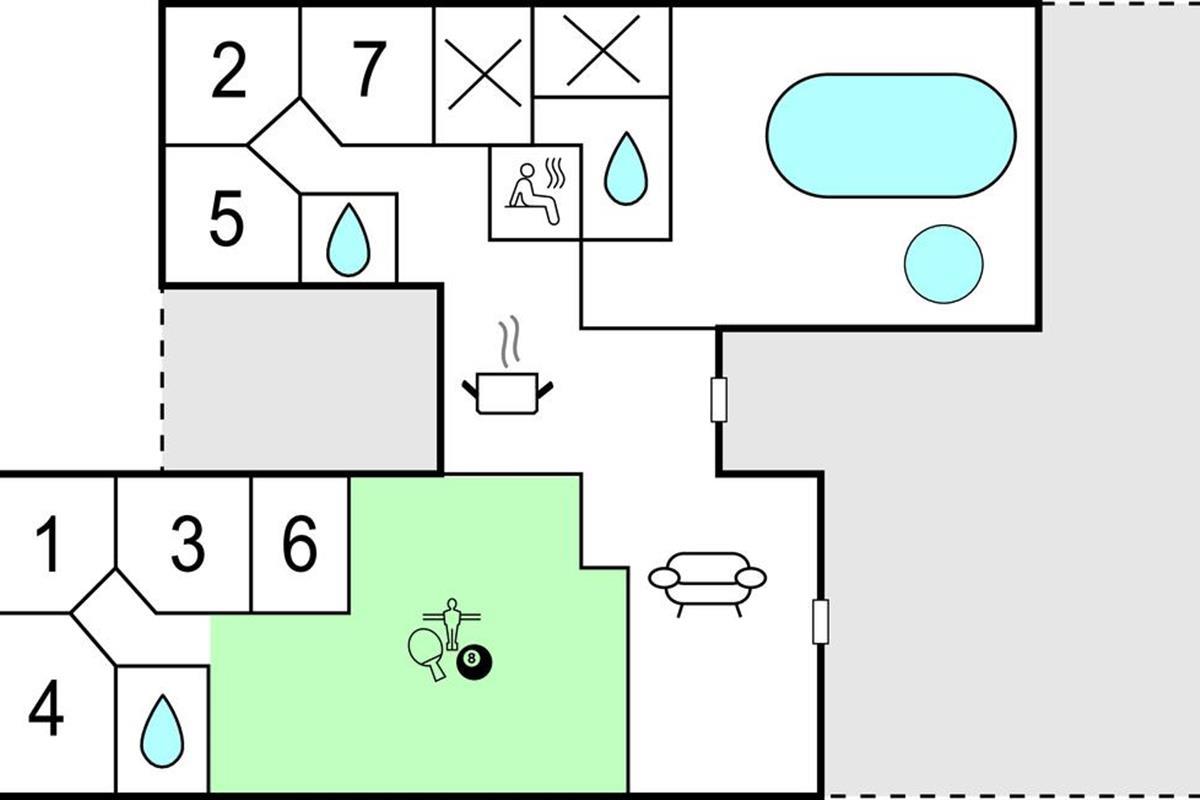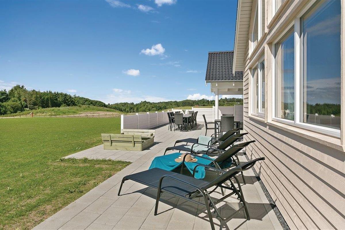 Het prachtige vakantiehuis voor 18 personen bevat 7 slaapkamers verdeeld over twee delen van het huis. Vier slaapplaatsen bevinden zich op de slaapzolder. Er zijn drie badkamers, een grote keuken en een lichte woonkamer. Er is ook een speelkamer met biljart, tafeltennis, darts en Wii. Aan de bar kunt u drankjes bereiden. En dat is nog niet alles. In het gedeelte met het zwembad wordt u ook verwend met een whirlpool en een sauna. Het huis ligt in een nieuw gebied dicht bij het Hostrup strand. Het kindvriendelijke Limfjord ligt op slechts een paar minuten lopen en aan het einde van een pad. Aan het einde van het pad is ook een gemeenschappelijke speeltuin, kinderen kunnen daar komen zonder zich zorgen te hoeven maken over het verkeer. Een paar kilometer van het huis is er een natuurspeeltuin. Het vakantiehuis is omgeven door natuur en ligt niet ver van Skive en Holstebro, waar u heerlijk kunt winkelen en dineren.