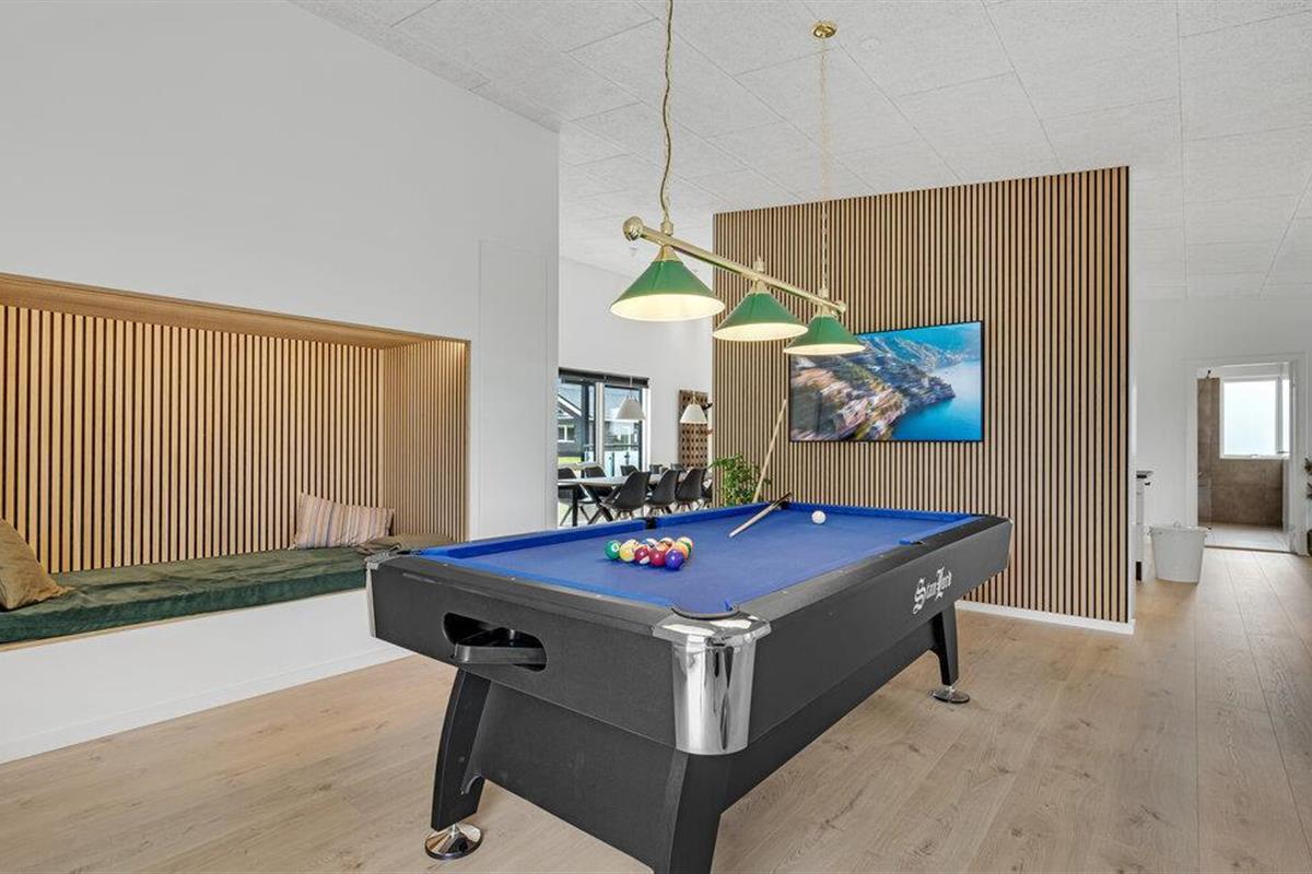 Verheug u op uw vakantie in dit mooie en comfortabele vakantiehuis in Hostrup Strand. Kom hier aan met uw uitgebreide familie of een familie van vrienden en voel u meteen thuis. Jong en oud kunnen ontspannen in de accommodatie, samen koken, spelletjesavonden houden of het zichzelf gemakkelijk maken op de banken in de woonkamer. Voor plezier en spelletjes is er ook een open activiteitenruimte waar u tegen elkaar kunt biljarten en naar muziek kunt luisteren. De inrichting van de hele accommodatie is van hoge kwaliteit, wat ook wordt voortgezet op het overdekte terras. Geniet hier van zwoele zomeravonden met een barbecue en ontspan daarna in het bubbelbad terwijl de kinderen rondrennen in de tuin.
