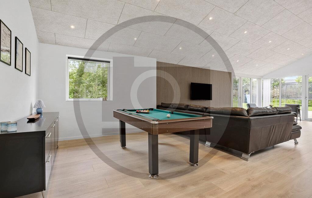 Dit ruime vakantiehuis ligt op een steenworp afstand van het fjord en verwelkomt je met een comfortabel en stijlvol interieur. Verzin culinaire hoogstandjes en geniet van gezellige maaltijden aan de uitnodigende eettafel terwijl de houtkachel zachtjes knettert. Speel een spelletje biljart, ontspan in de sauna en kom samen voor een goede film of een gezellige spelletjesavond in de knusse woonkamer.