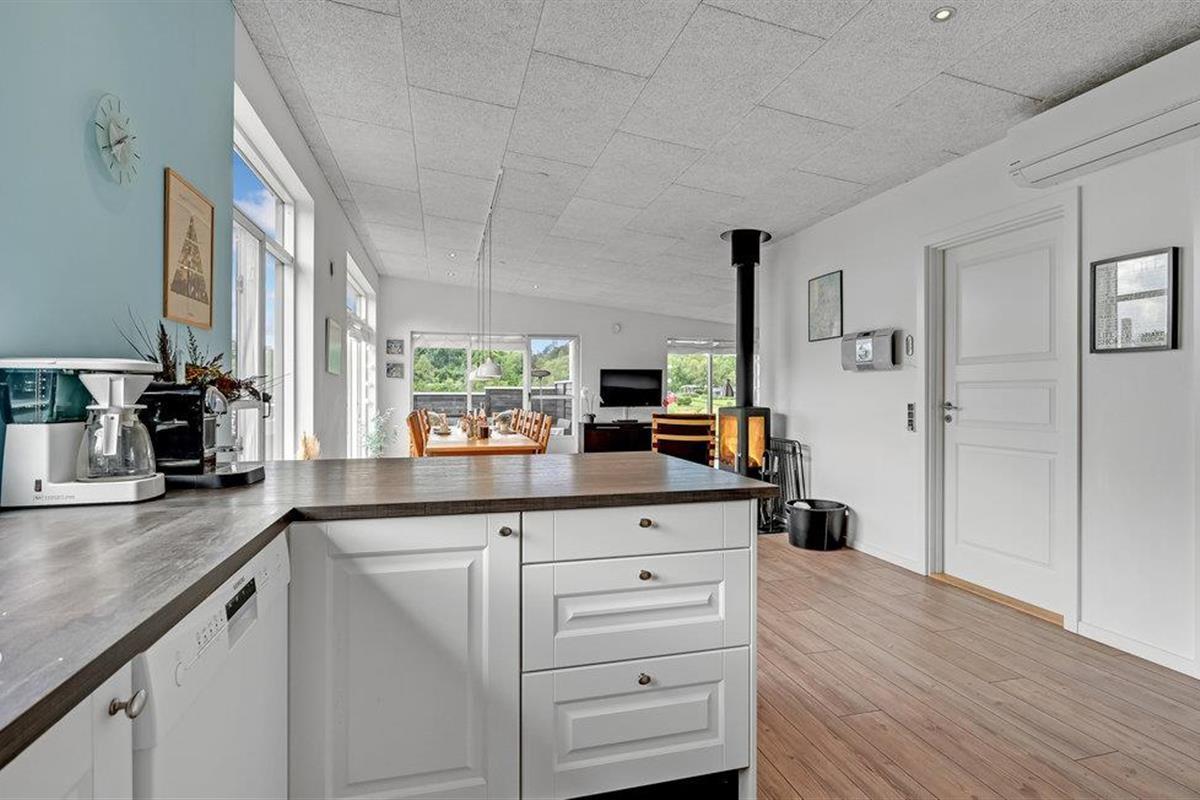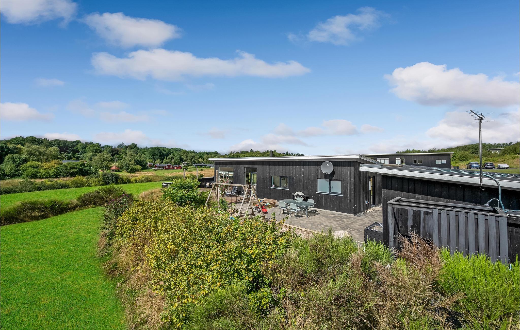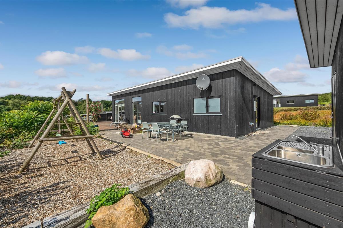 Het huis is ruim en heeft een groot terras met uitzicht. Hier kunnen twee zonnezeilen worden opgezet, een op het zuiden en een op het westen. Een wandelpad leidt direct naar het water met een openbare speeltuin en in een paar kilometer bereik je een avonturenspeeltuin. Hostrup Strand is een goede keuze voor een gezellige vakantie, er is een aanlegsteiger en er zijn schuilhutten.