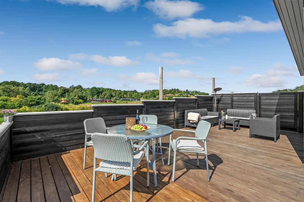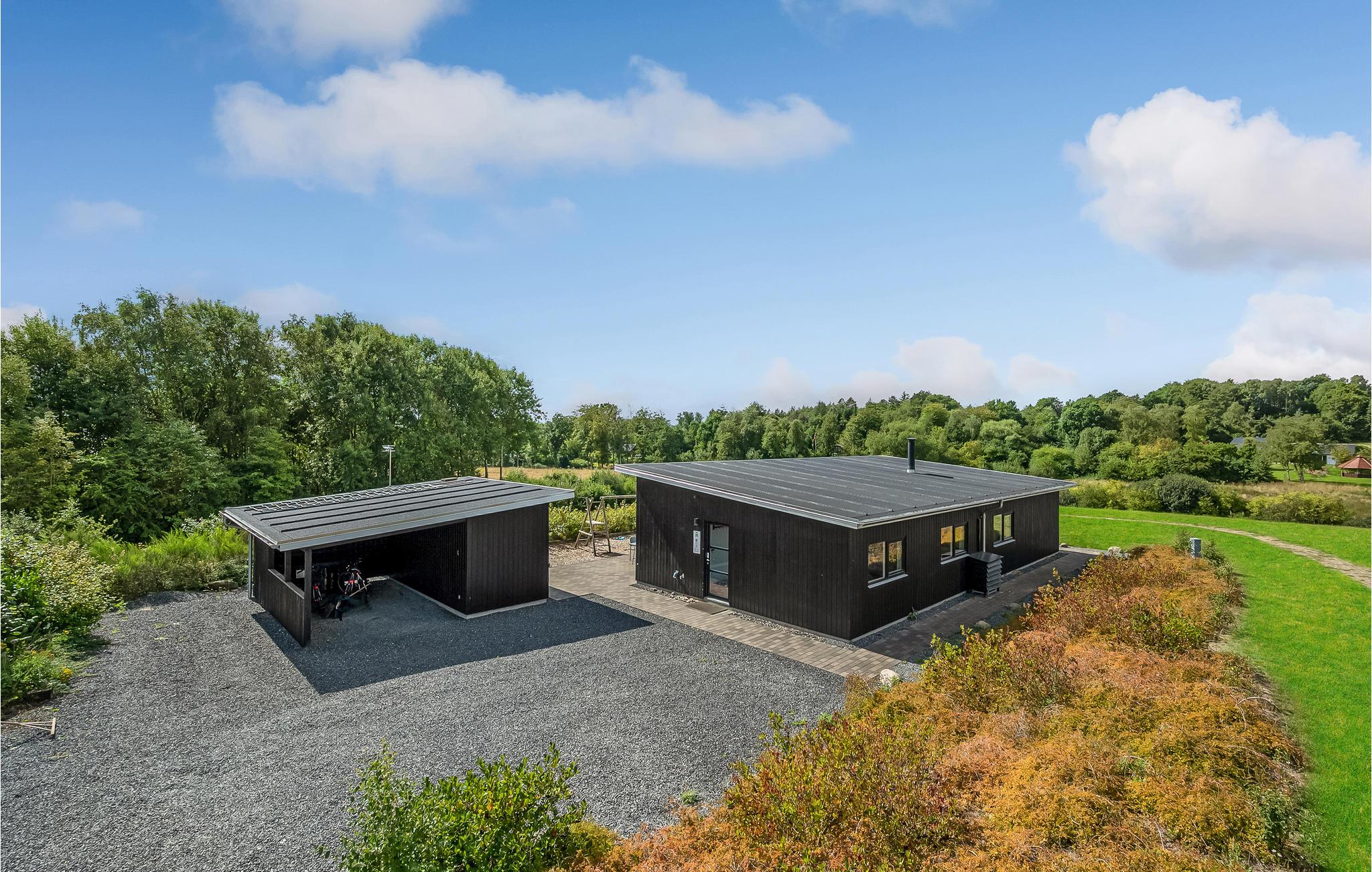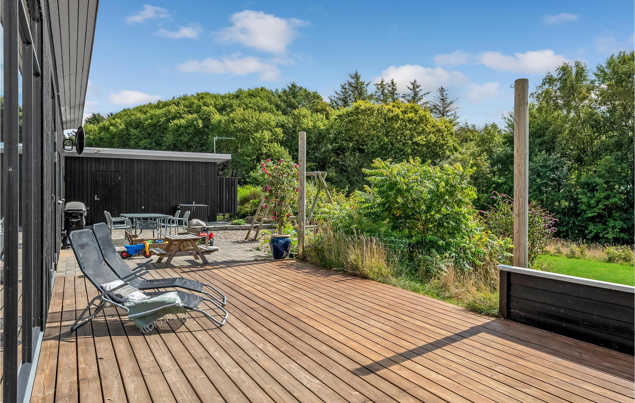 Het huis is ruim en heeft een groot terras met uitzicht. Hier kunnen twee zonnezeilen worden opgezet, een op het zuiden en een op het westen. Een wandelpad leidt direct naar het water met een openbare speeltuin en in een paar kilometer bereik je een avonturenspeeltuin. Hostrup Strand is een goede keuze voor een gezellige vakantie, er is een aanlegsteiger en er zijn schuilhutten.