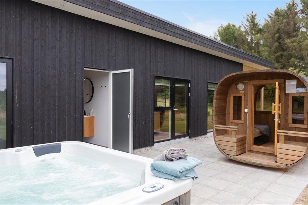 Een bijzonder hoogtepunt is het overdekte terras, dat je talloze mogelijkheden biedt om volop van de frisse lucht te genieten. Dineer al fresco of ontspan gewoon in de buitenlucht. s Avonds nodigt de barbecue je uit voor gezellige BBQ-avonden, waar je de dag gezellig kunt afsluiten. Voor nog meer ontspanning is er een sauna en een whirlpool in de buitenlucht - heerlijke plekken om lichaam en geest te verwennen na een veelbewogen dag.
