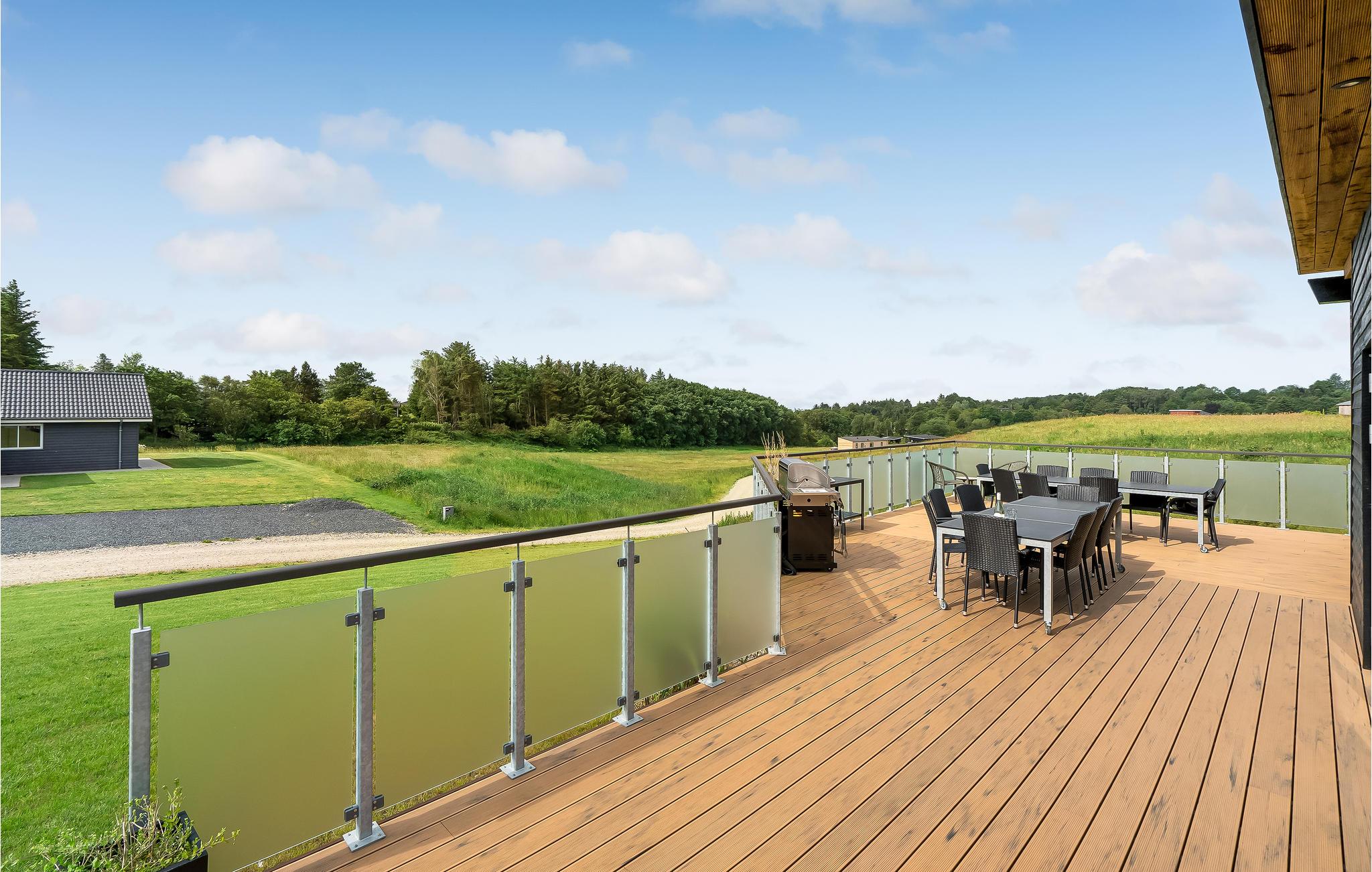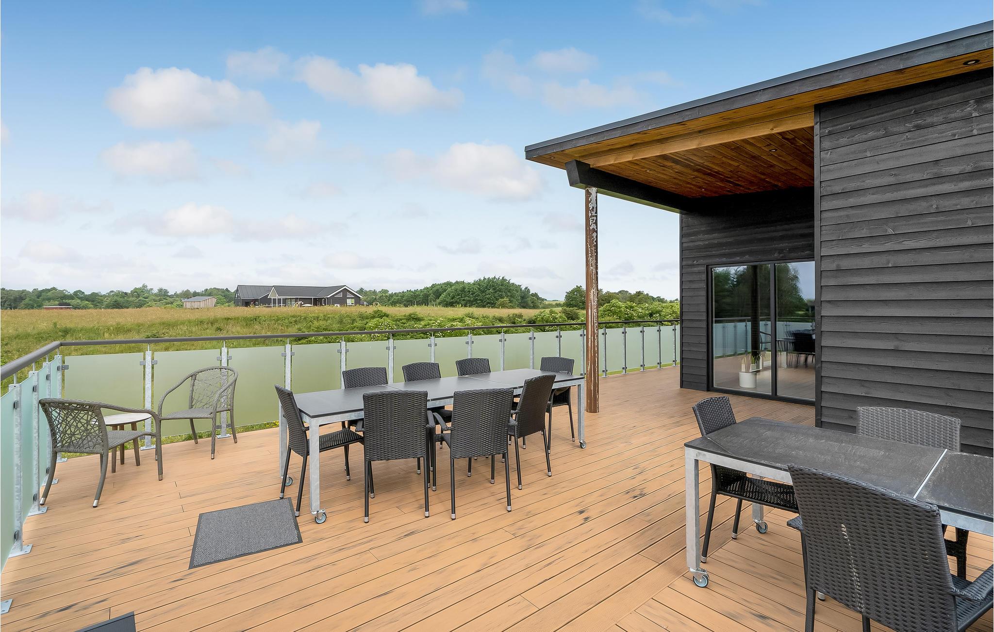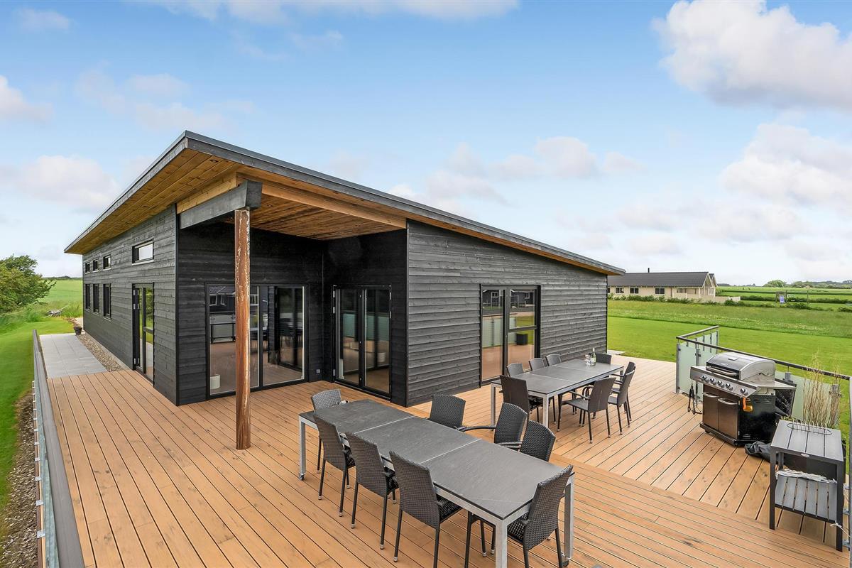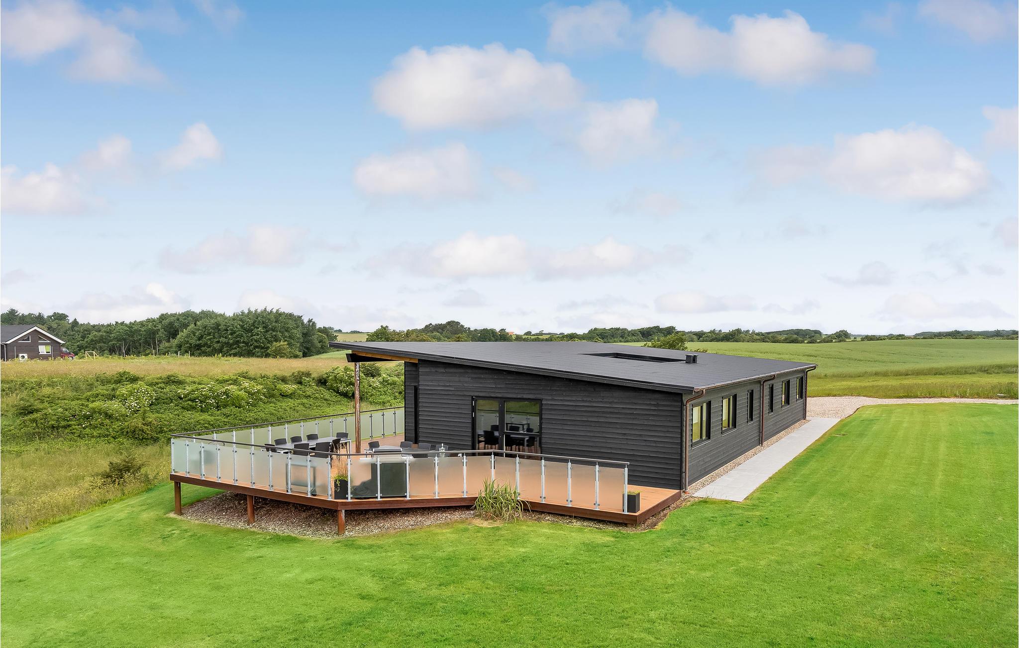 Dit extra grote vakantiehuis biedt de optimale setting voor een geslaagde vakantie met veel gasten en in een comfortabele omgeving. Het huis ligt op een open natuurgrondstuk met uitzicht op het landschap en veel ruimte om te spelen en actief te zijn. Het hoogwaardige vakantiehuis is uitgerust met alle voorzieningen die u zich op vakantie kunt wensen. Binnen wacht u een lichte en moderne sfeer met een inrichting in een elegante, Scandinavische stijl. Het hart van het huis is de open woon- en keukenruimte, waar u kunt samenkomen met familie of vrienden. Breng samen ontspannende tv-avonden, gezellige maaltijden of spannende spelletjesavonden door. De grote ramen laten prachtig daglicht binnen.