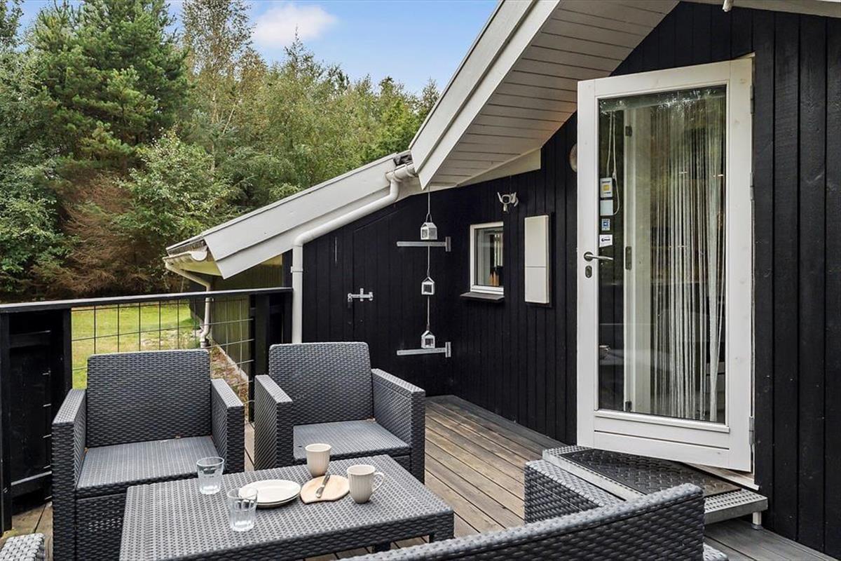 Das Ferienhaus liegt auf einem Naturgrundstück, aber es gibt reichlich Platz zum Grillen und Sonnen auf der großen, offenen, überdachten Terrasse, was sehr praktisch ist, falls Haustiere und kleine Kinder mitreisen. Es ist ein Carport am Haus vorhanden, sodass auch Ihr Auto während des Urlaubs ein bisschen verwöhnt wird. Außerdem gibt es einen Sandkasten für Kinder und im Herzen Kindgebliebene.