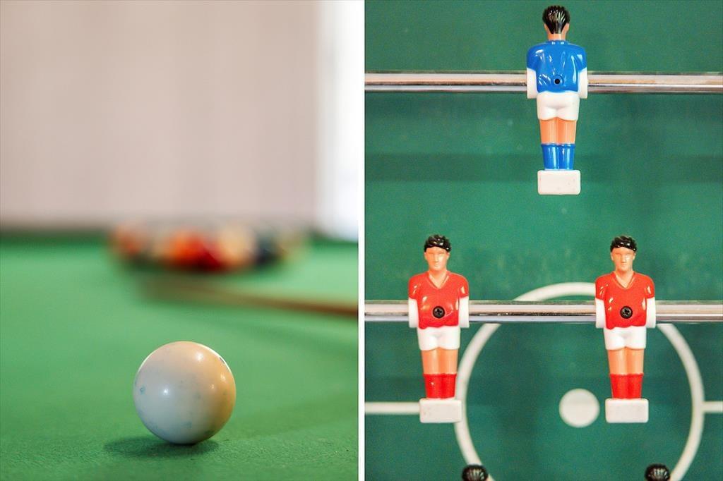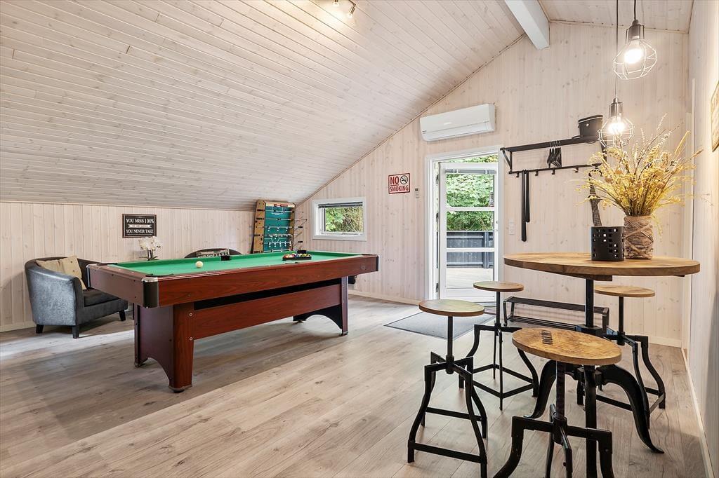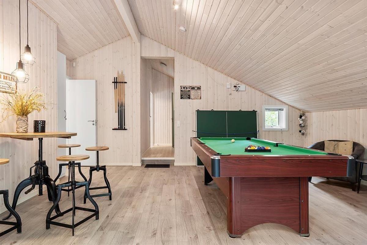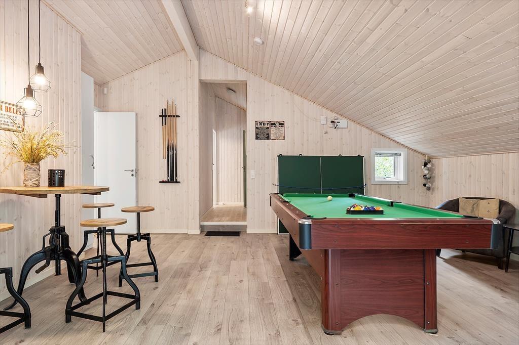 Zunächst wird der neue Bereich des Hauses betreten, der aus einem großen, toll eingerichteten Aktivitätsraum mit Poolbillard, Tischfussball und Tischtennis, sowie Cafétisch mit hohen Barstühlen besteht. Von hier haben Sie Zugang zu einem großen Schlafzimmer mit Doppelbett sowie zur Gästetoilette. Über einen Flur gelangen Sie zur Küche, die zum hellen Ess- und Wohnzimmer geöffnet ist. Über den Flur kommen Sie auch an den großen Badezimmer vorbei. Das Haus ist großartig und modern eingerichtet und bietet somit die besten Voraussetzungen für den nächsten Urlaub!