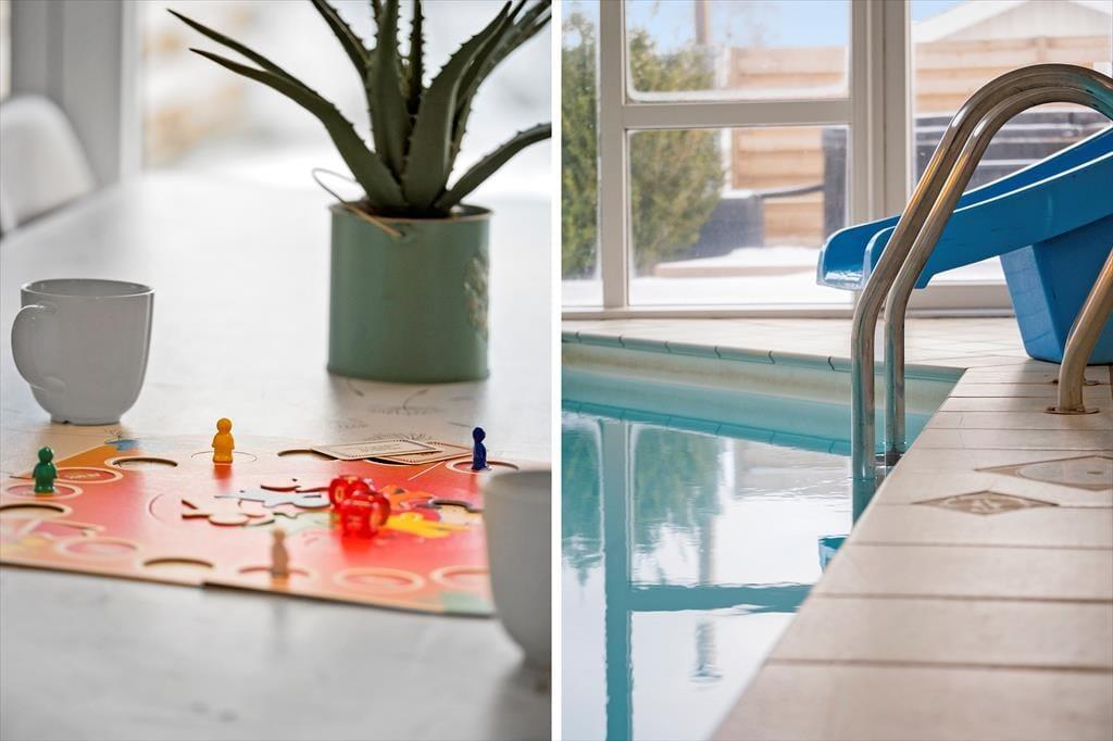Poolraum: An einem Ende des Hauses befindet sich der Poolraum, in dem die ganze Familie garantiert viel Spaß, Spiel und Entspannung verleben wird. Außerdem ist eine Sauna vorhanden und es gibt einen direkten Zugang zum Wildnissbad.