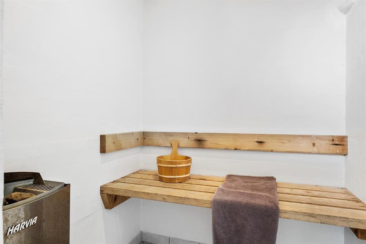 Es sind vier Schlafzimmer vorhanden; zwei mit jeweils einem Doppelbett, das dritte mit zwei Einzelbetten und das vierte mit einem Etagenbett. Auf dem Schlafboden stehen zwei weitere Schlafmöglichkeiten zur Verfügung, die sich vor allem für die jüngeren Familienmitglieder eignen. Offene Küche mit Blick ins Ess- und Wohnzimmer sowie direktem Zugang zu dem wunderbaren Poolraum, der ebenfalls über eine Saunal verfügt. Es gibt zwei Badezimmer, eins im Bereich der Schlafzimmer und ein kleineres beim Poolraum.