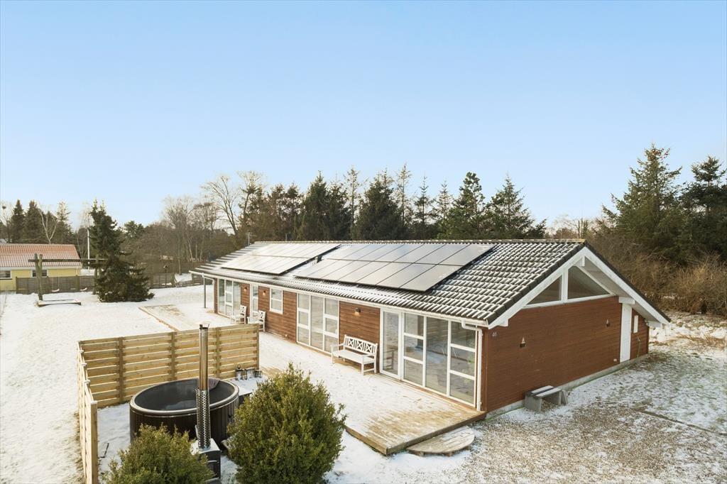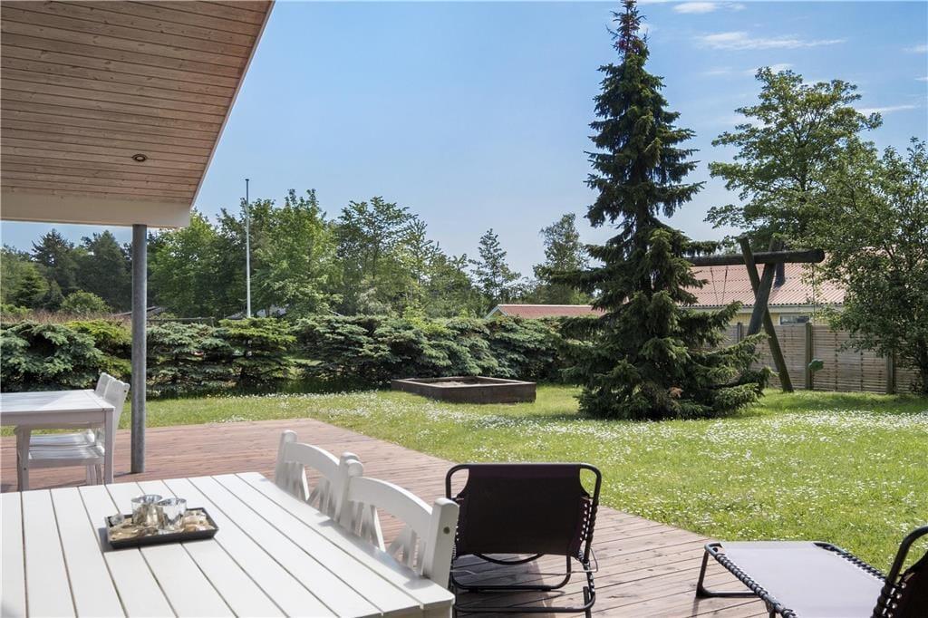 Das Ferienhaus liegt auf einem herrlichen Gartengrundstück, in einer charmanten Ferienhaussiedlung, auf der “richtigen” Seite der Straße, wie es hier in dem Gebiet gesagt wird. Das bedeutet, dass das Haus auf der Wasserseite sich befindet und nur ungefähr 450 Meter von Meer und Strand entfernt ist. Für die kleinen Urlaubsgäste sind ein lustiges Schaukelgerüst und ein Sandkasten im Garten vorhanden. Das Haus bietet ein große Terrasse auf einerLängsseite des Hauses und im Südwesten, somit gibt es viel Sonne über den ganzen Tag verteilt. Zünden Sie die Kohle im Grill an und grillen Sie was das Herz begehrt - das ist gut! Hier finden Sie auch das Wildernissbad.