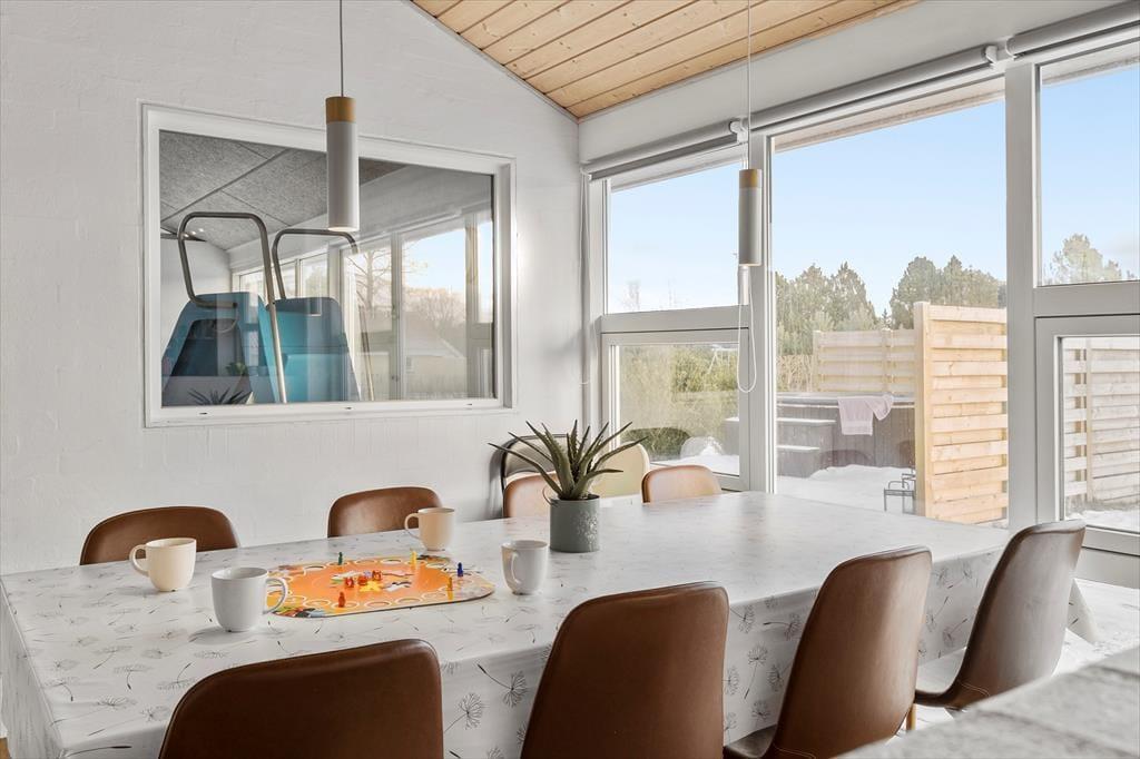 Das Ferienhaus liegt ungefähr 900 Meter von dem Küstenort Hou, mit Segelhafen, guten Einkaufsmöglichkeiten und sogar mehreren Restaurants, entfernt. Hier besteht auch die Möglichkeit, den Hunger nach einem frisch gefangenen Fisch zu stillen. Oder kaufen Sie mehrere Schollen für eine Grillmahlzeit. Es gibt hervorragende und sehr kinderfreundliche Sandstrände an mehreren Stellen in dem Küstenabschnitt zwischen Hou und Hals. Letzterer ist nur fünf Minuten mit dem Auto vom Haus entfernt und bietet weitere Einkaufs- und Shoppingmöglichkeiten, sowie Eiscafés, stimmungsvolle Teiche und generell eine wirklich einzigartige Urlaubsstimmung.
