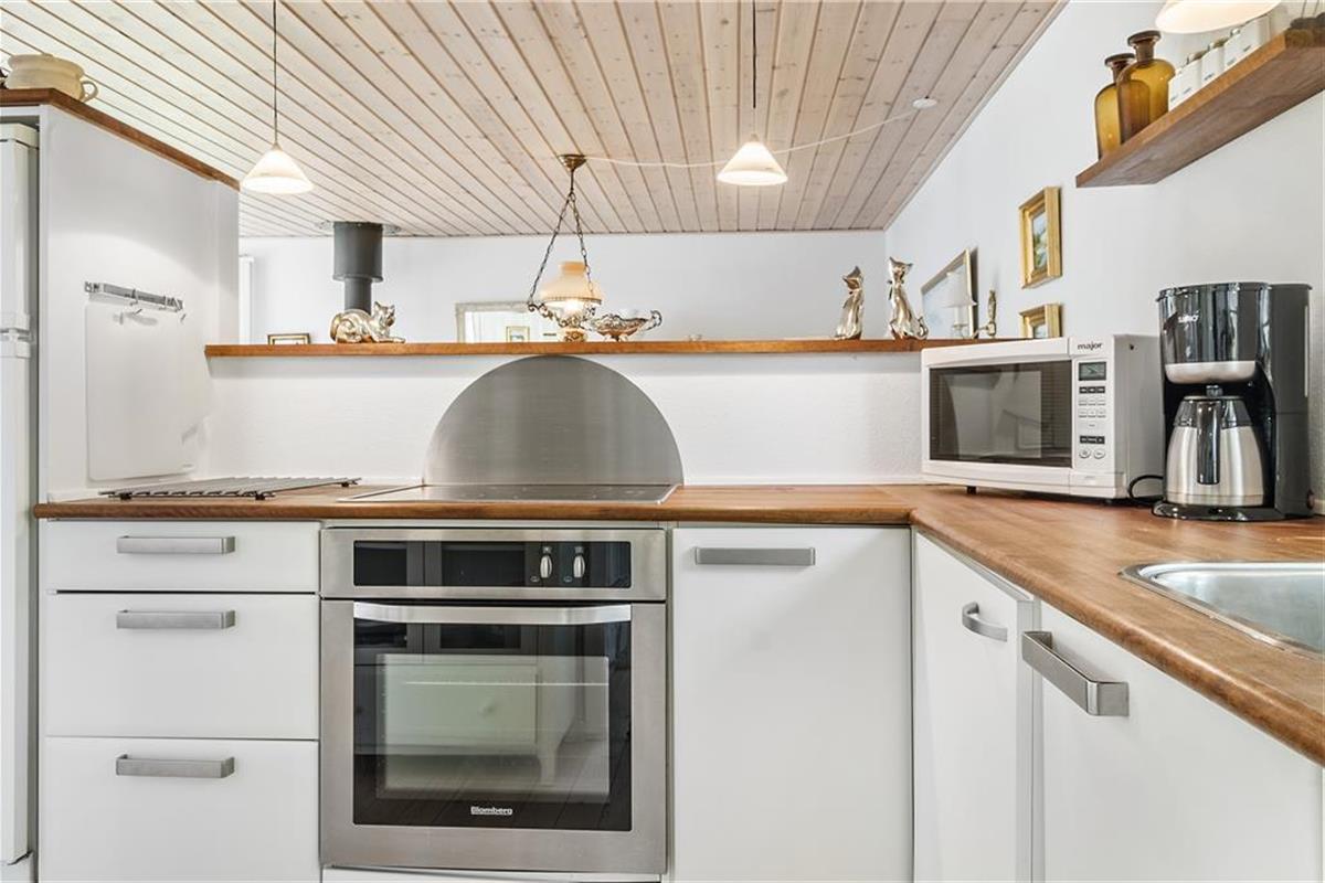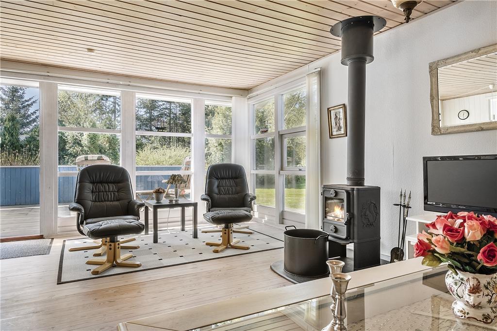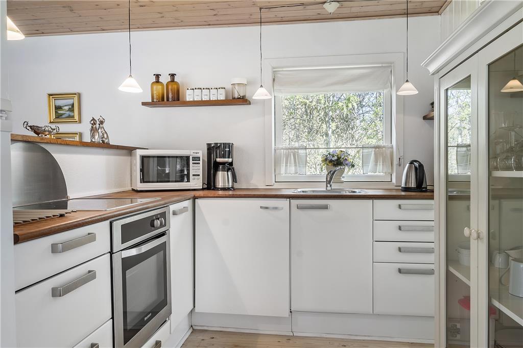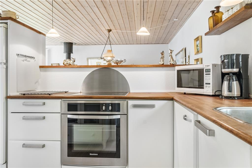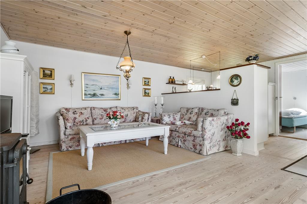 Das Zentrum des Ferienhauses besteht aus einem großen Wohnzimmer mit Essbereich und offener Küche. Vom Wohnzimmer aus gibt es einen Zugang zu guten Schlafzimmern, ausgestattet mit einem Doppelbett und zwei Etagenbetten. Über den kleinen Flur gibt es einen Zugang zu einem kleinen, aber entzückenden Badezimmer. Das Haus ist so eingerichtet worden, wie ein Ferienhaus sein sollte, so dass die müde und hektische Seele komplett entspannen und ganz herunter kommen kann. Es ist die pure Ferienhausgemütlichkeit!