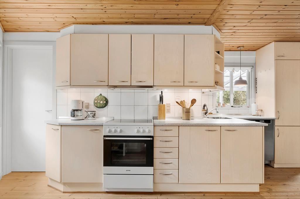 Die 69 m2 des Ferienhauses sind sinnvoll aufgeteilt in drei Schlafzimmer, ein Duschbad und ein Wohnzimmer mit integrierter Küche. Die drei Schlafzimmer sind alle mit Doppelbetten ausgestattet, so dass Sie bis zu sechs Personen im Haus schlafen können. Tagsüber können Sie es sich im Wohnzimmer gemütlich machen, und wenn das Wetter es erfordert, steht ein Holzofen bereit, der Wärme und Gemütlichkeit verbreitet. Wenn Sie Filme oder Ihre Lieblingssendungen sehen möchten, steht Ihnen ein Fernseher mit Chromecast zur Verfügung - und wenn das Wetter eher zu Aktivitäten im Freien einlädt, haben Sie durch die Gartentür einfachen Zugang zur Terrasse.