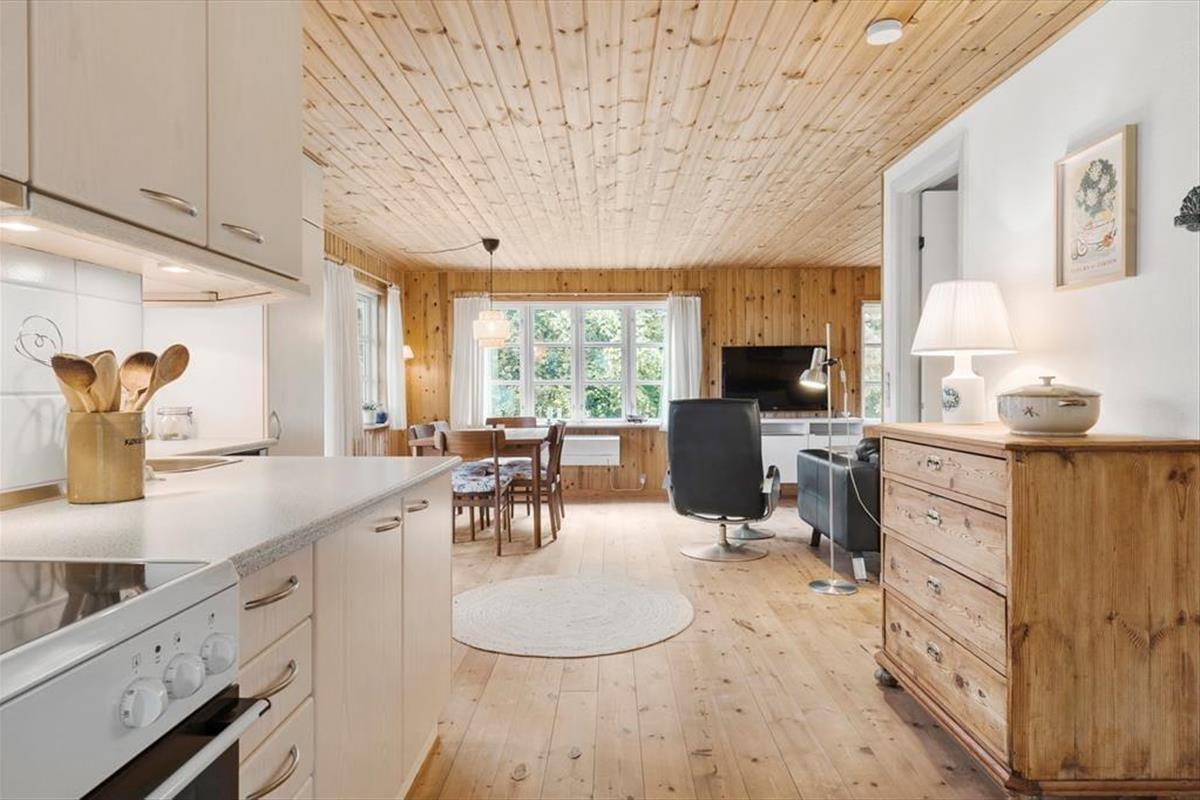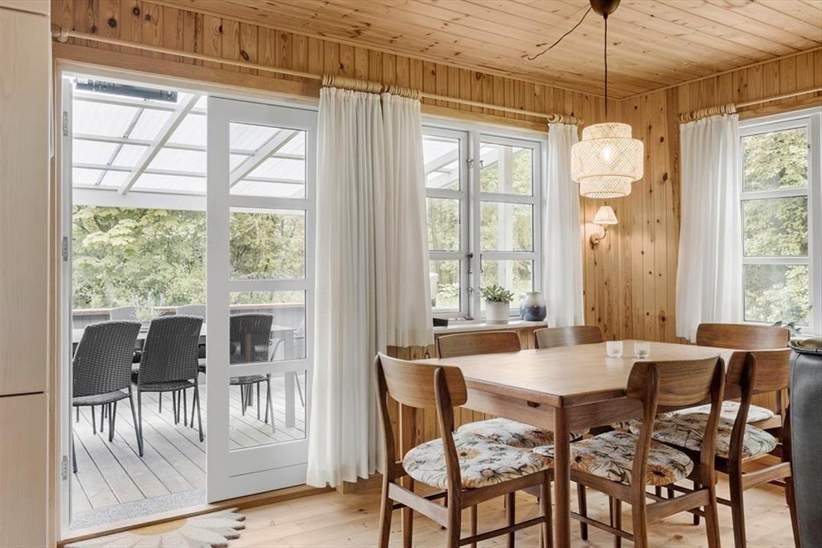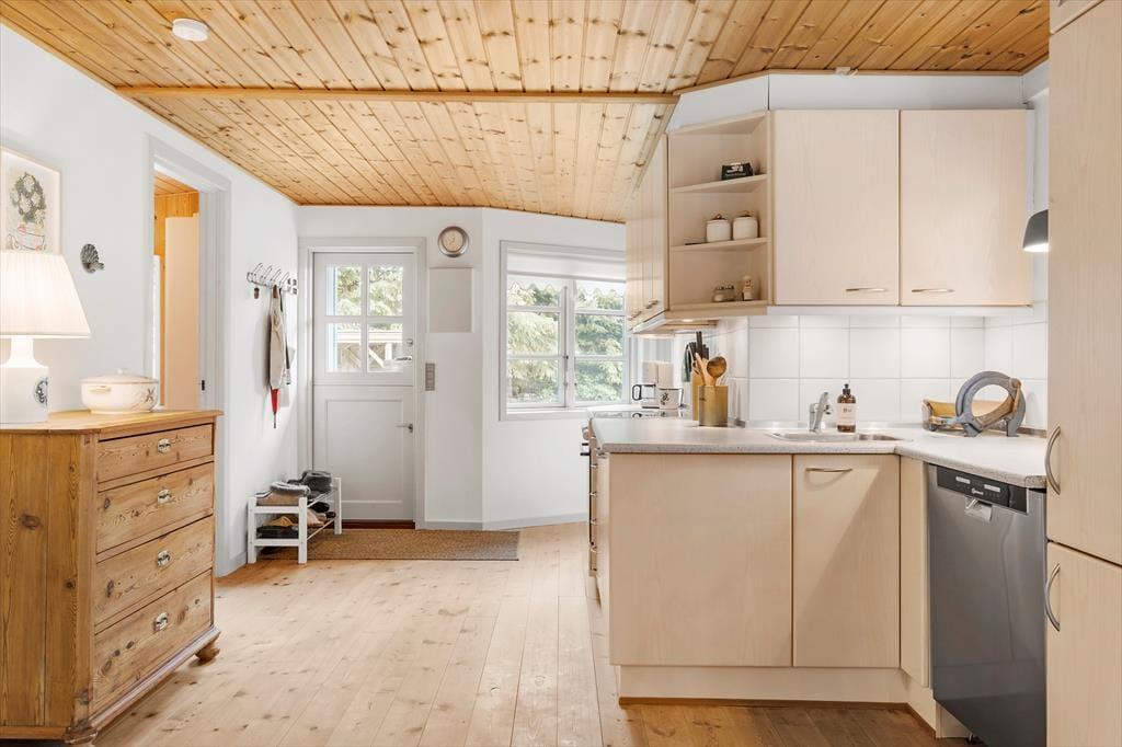 Das 1350 m2 große Grundstück ist von der Straße, die ebenfalls als Sackgasse endet, gut abgegrenzt, so dass Sie eine herrlich ruhige Lage genießen können. Am Ende der Straße führt ein Weg das letzte Stück hinunter zum Strand, wo Sie baden, im Sand spielen und lange Spaziergänge entlang der Küste machen können. Das Ferienhaus liegt in unmittelbarer Nähe von Hals Strand Camping, wo es einen Minigolfplatz, einen Angelsee und in der Hochsaison jeden Samstag einen großen Markt gibt. Wenn Sie die schaukelnden Segelboote beobachten möchten, gibt es sowohl in Hou als auch in Hals schöne Yachthäfen, und Golfliebhaber können die kurze Fahrt zum Golfclub Hals auf sich nehmen. Ein Tag in Aalborg könnte auch verlockend sein, wenn Sie den Zoo, ein Museum oder einen Einkaufsbummel machen wollen. In diesem Fall ist die Fahrt in einer halben Stunde zu schaffen.