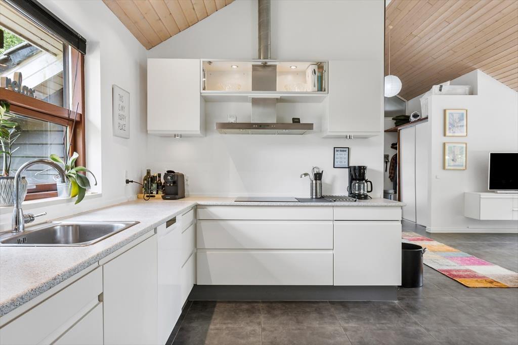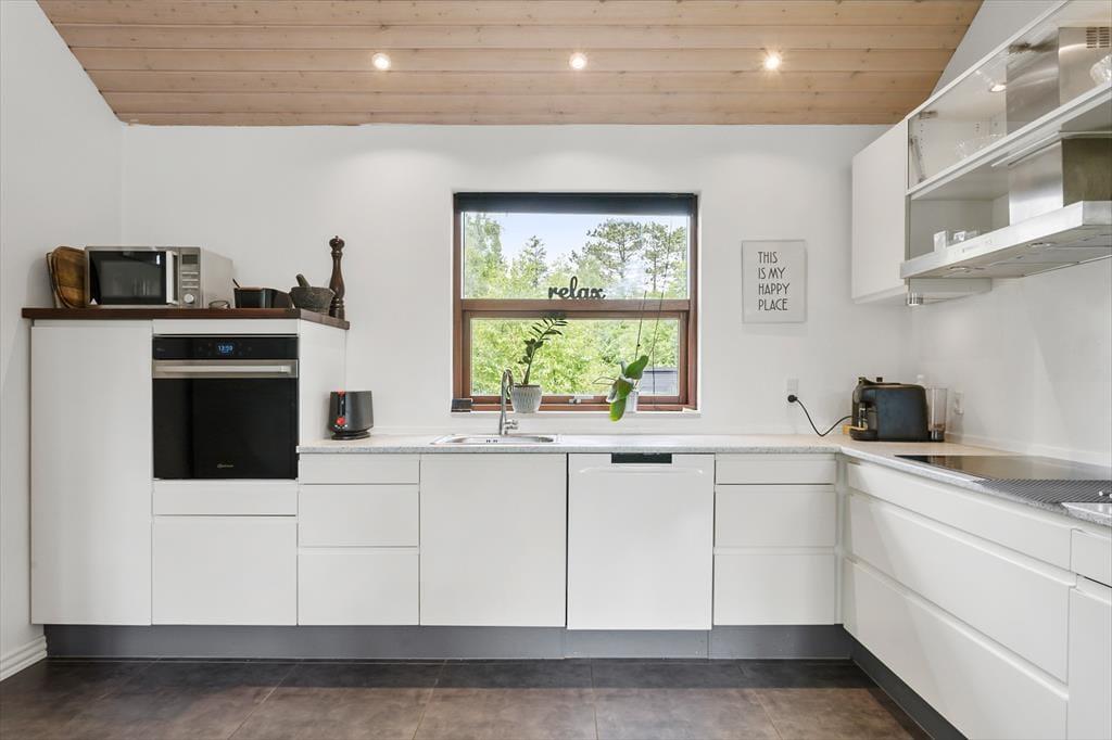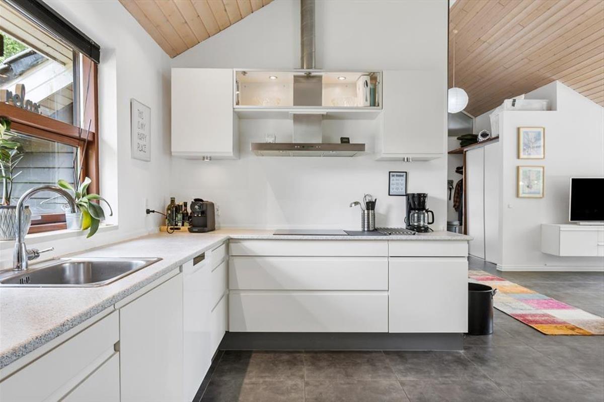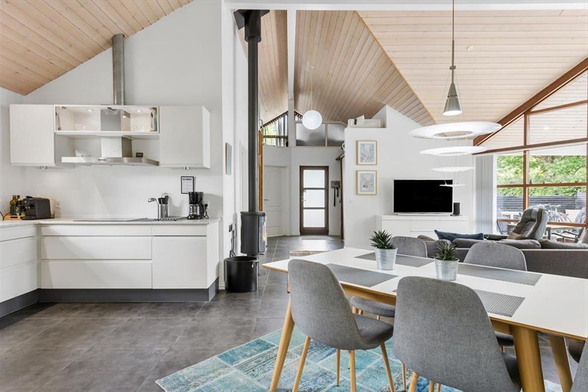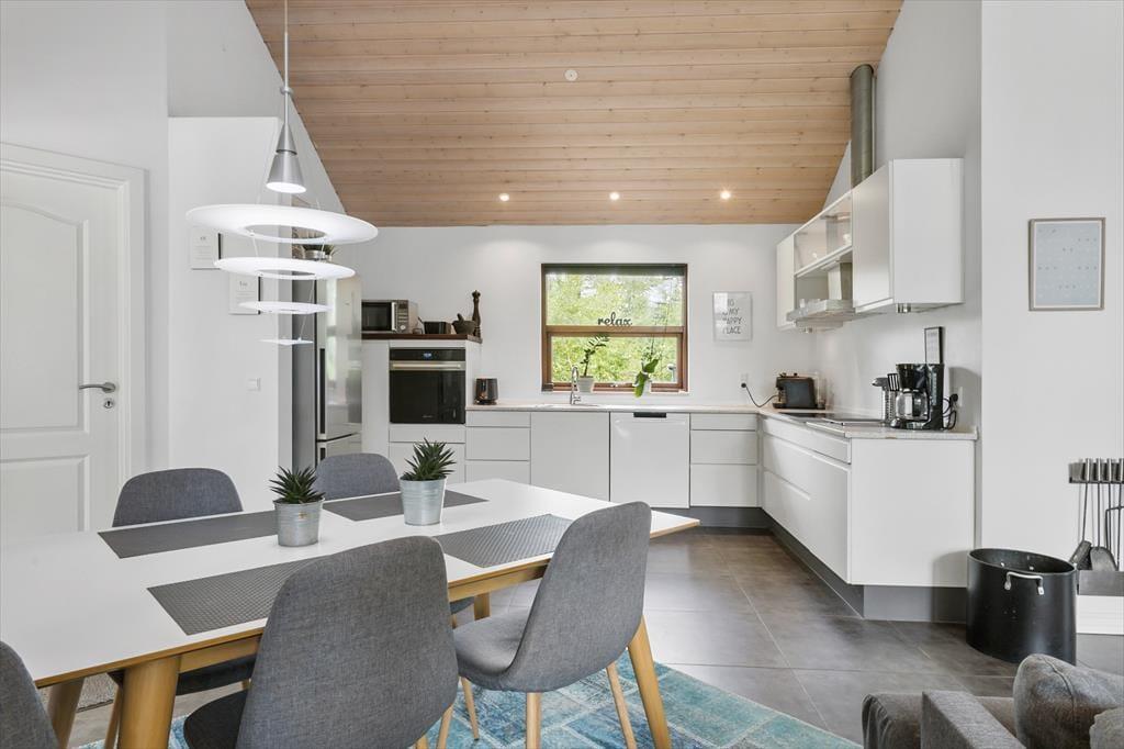 Vakantiehuis in Hou, Noord-Jutland, met plaats voor 4 volwassenen en 2 huisdieren. De woning heeft een gezellig interieur met o.a. een houtkachel, en beschikt daarnaast over een wasmachine, een vaatwasser en een wasdroger.