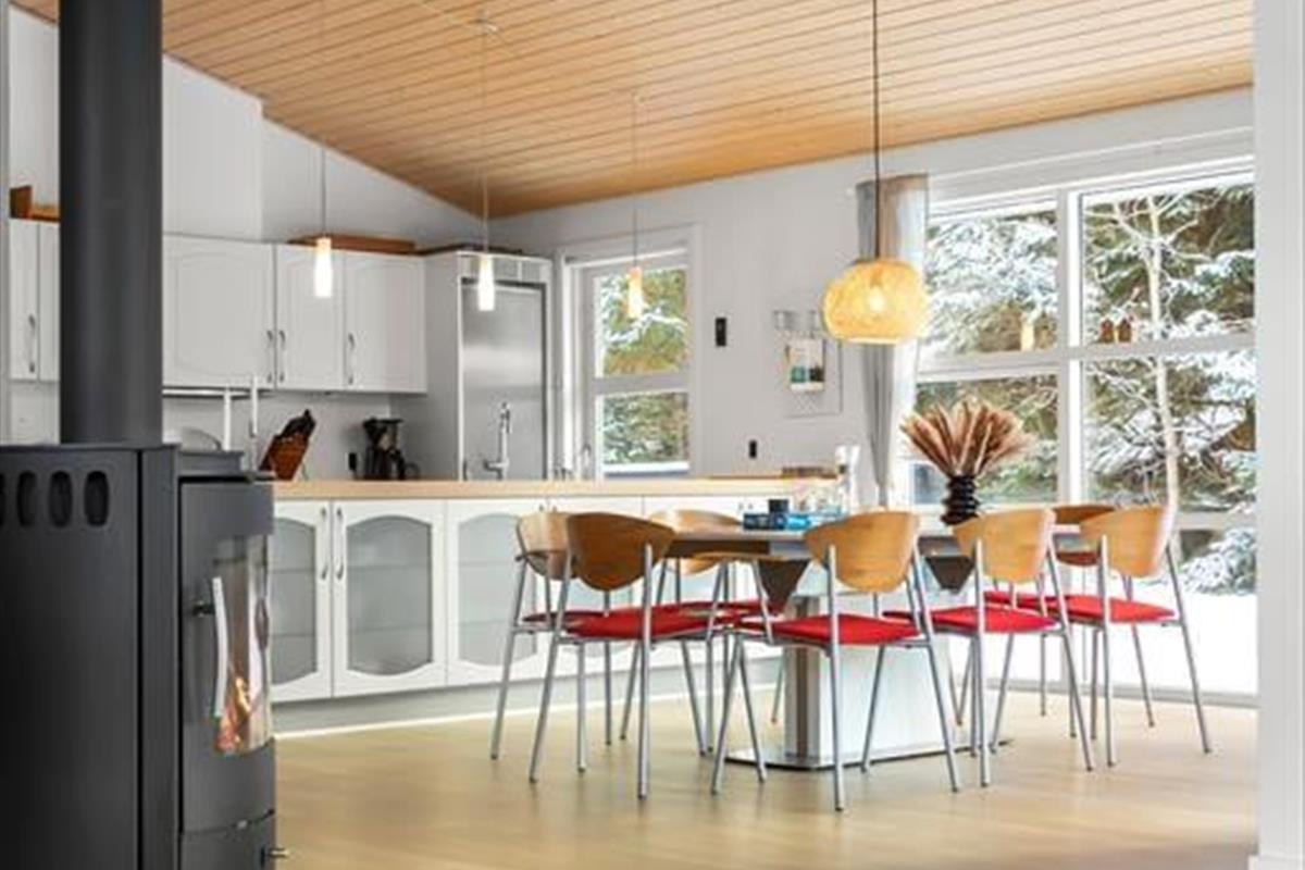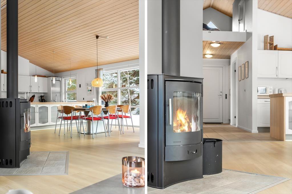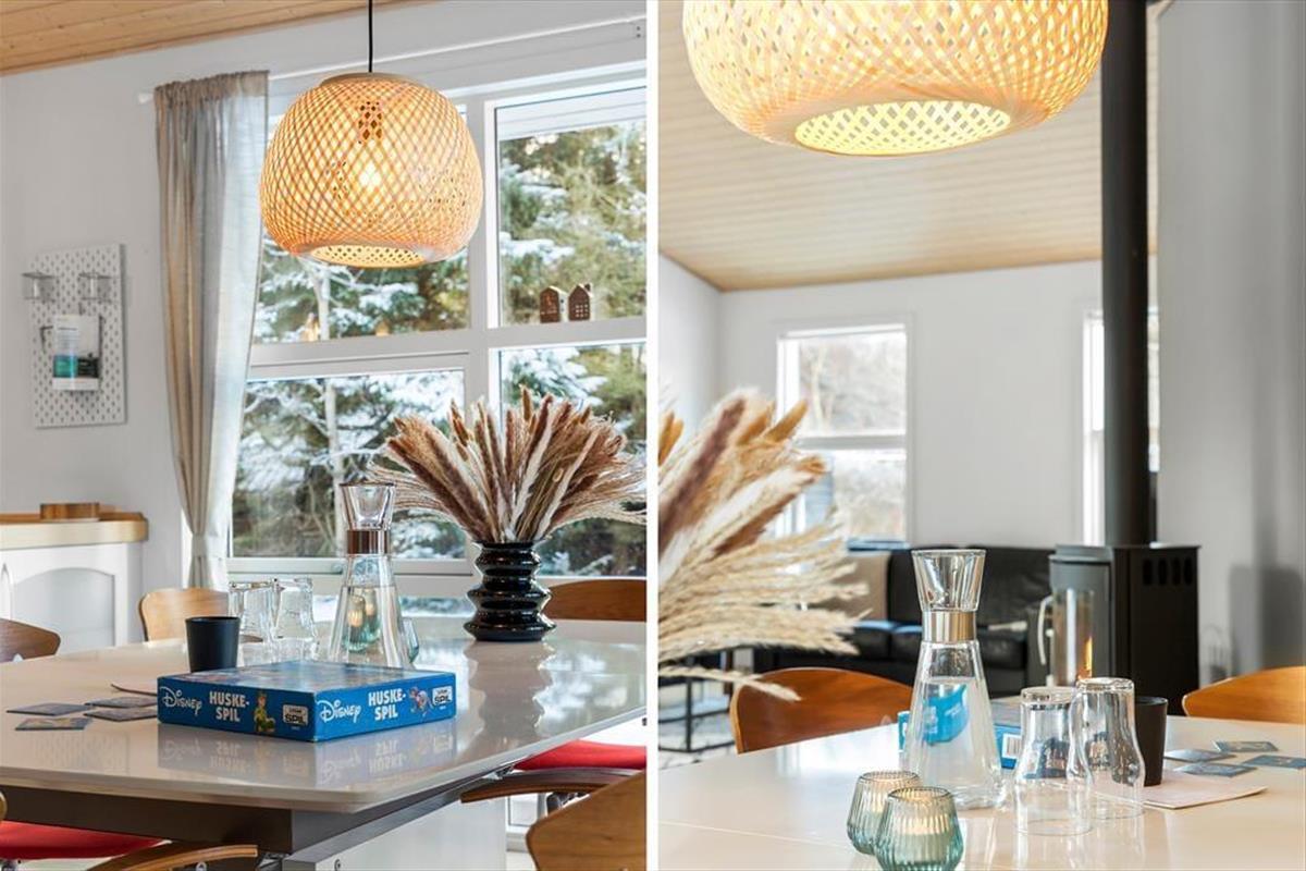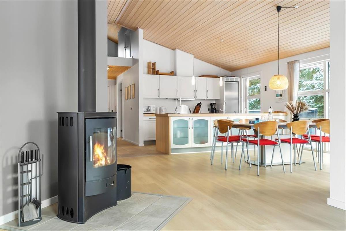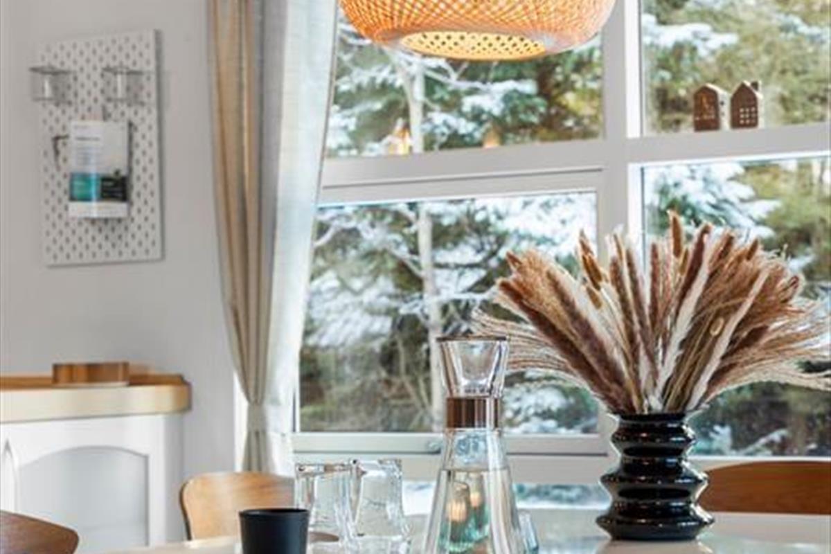 Wenn Sie das Ferienhaus betreten, werden Sie von einem offenen und hellen Wohnbereich begrüßt, der sofort dazu einlädt, es sich gemütlich zu machen und zu entspannen. Die großen Fenster lassen viel Licht herein und die hellen Farben schaffen eine warme und einladende Atmosphäre. Das Herzstück des Hauses ist die gut ausgestattete Küche und das geräumige Wohnzimmer, das den perfekten Rahmen für gemütliche Momente mit Familie und Freunden bietet. Hier können Sie den Holzofen anfeuern, es sich auf dem Sofa bequem machen oder einen Film auf dem Flachbildfernseher ansehen. Wenn es Zeit ist, sich zu entspannen, nehmen Sie ein Bad im Indoor-Whirlpool dem perfekten Ort, um Körper und Seele nach einem Tag voller Aktivitäten zu verwöhnen.