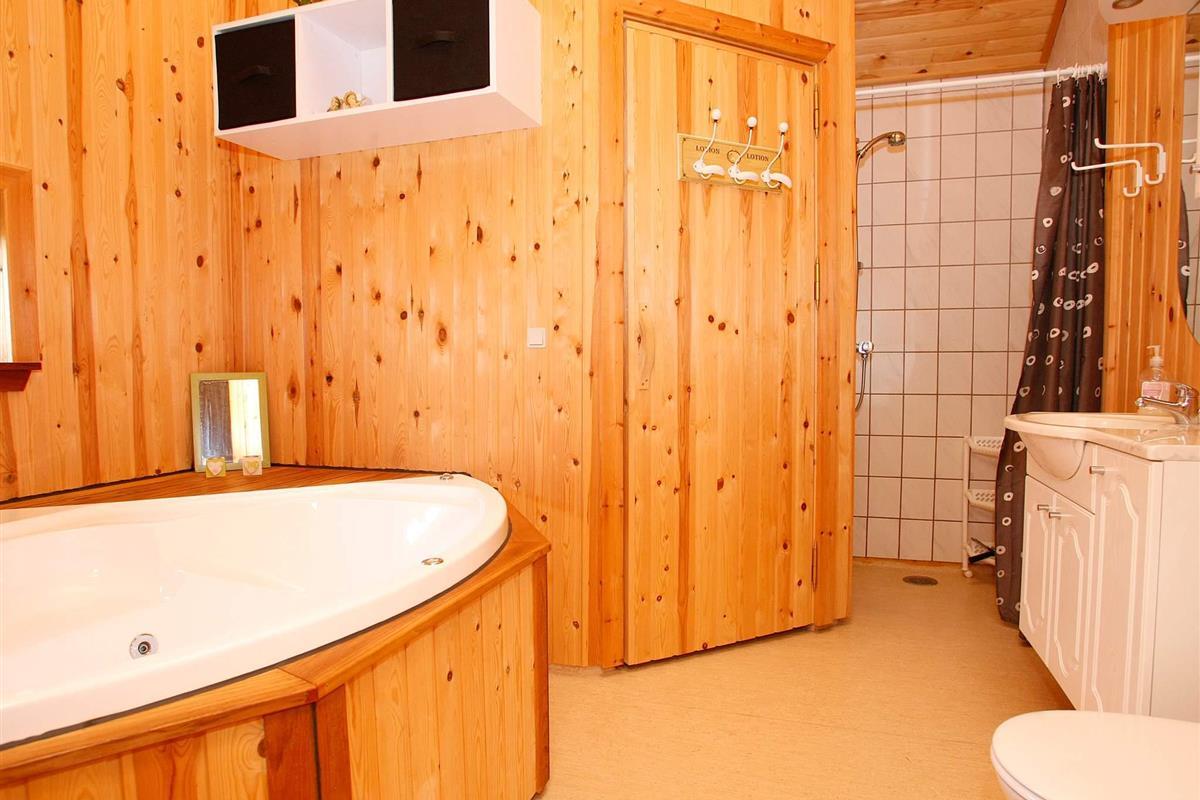 Und: Terrasse, E-Heiz., Luft-Luft-Wärmepumpe, Naturgrundst. m. Bäumen 1050 m2, gemischte Möblierung, Ferienhausgebiet, Nichtraucherhaus