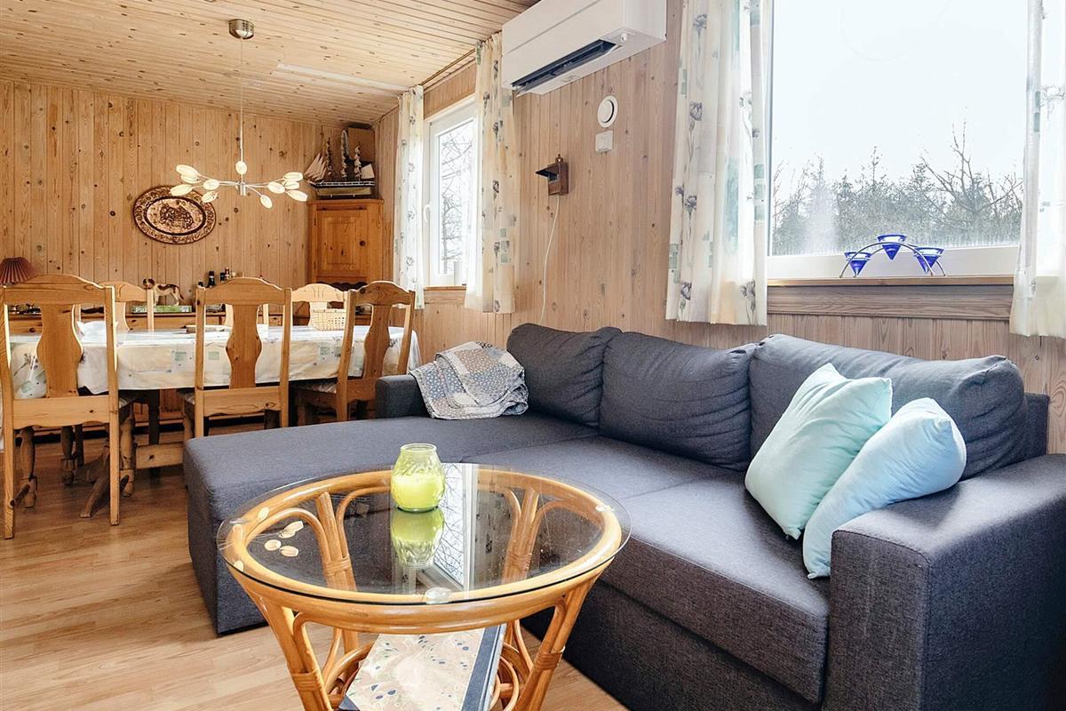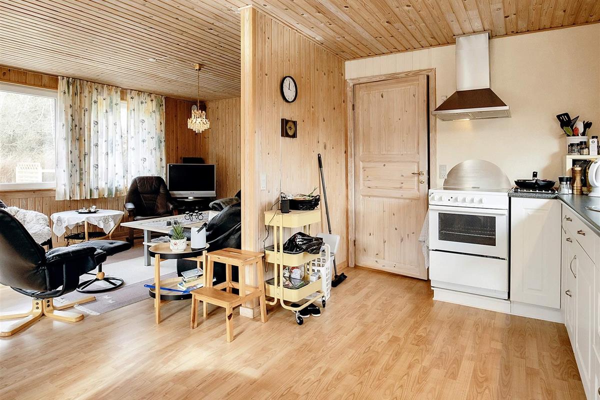 Dieses einladende Ferienhaus liegt auf einem großen Naturgrundstück in einer ruhigen Gegend nahe Gerå und bietet den perfekten Rückzugsort für Ruhesuchende. Obwohl das Wasser nur knapp 1 km entfernt ist, genießt das Haus eine erstklassige Lage in der ersten Dünenreihe und vermittelt so ein Gefühl von Abgeschiedenheit und natürlicher Schönheit. Auf den ersten Blick erscheint das nahe Ufer wie ein Schilf- und Grasstrand, doch ein weit ins Wasser hineinragender Steinsteg mit Sandstränden auf beiden Seiten lädt zum Spazierengehen und Planschen ein.
