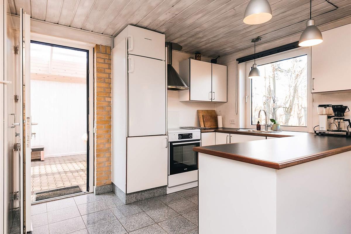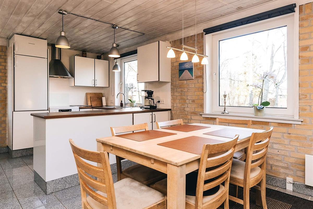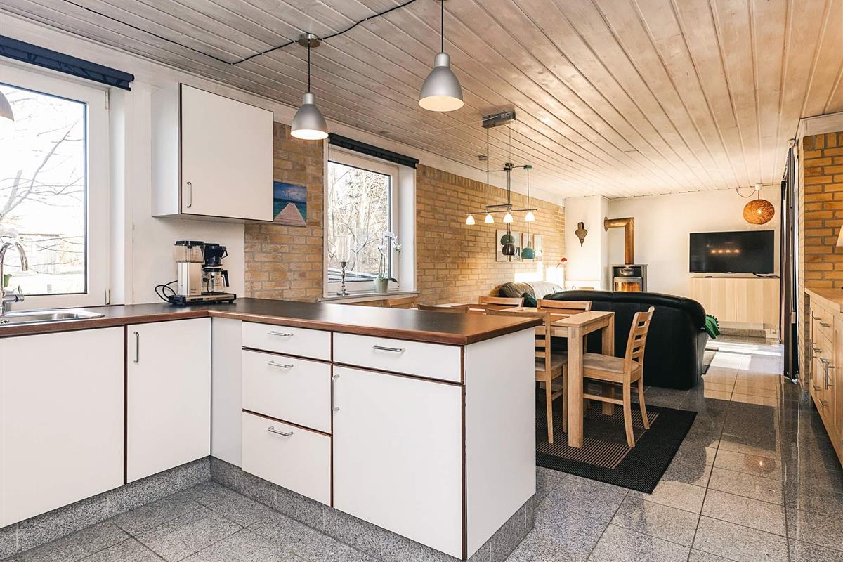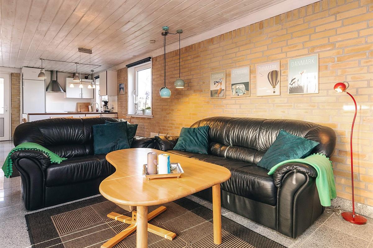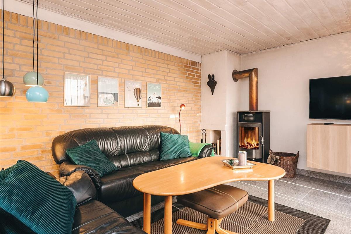 Das Ferienhaus liegt ruhig am Ende einer Sackgasse. Das Haus verfügt über ein schönes, offenes Wohnzimmer mit Zugang zur Küche, sodass die gemütliche Atmosphäre auch beim Kochen nicht enden muss. Das Wohnzimmer ist mit einem Fernseher mit Chromecast, einem schönen Holzofen und viel Platz auf dem Sofa ausgestattet.