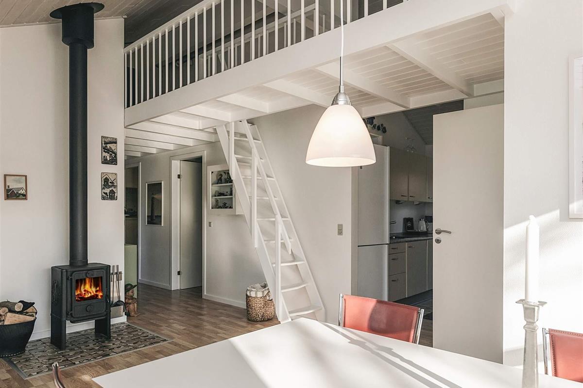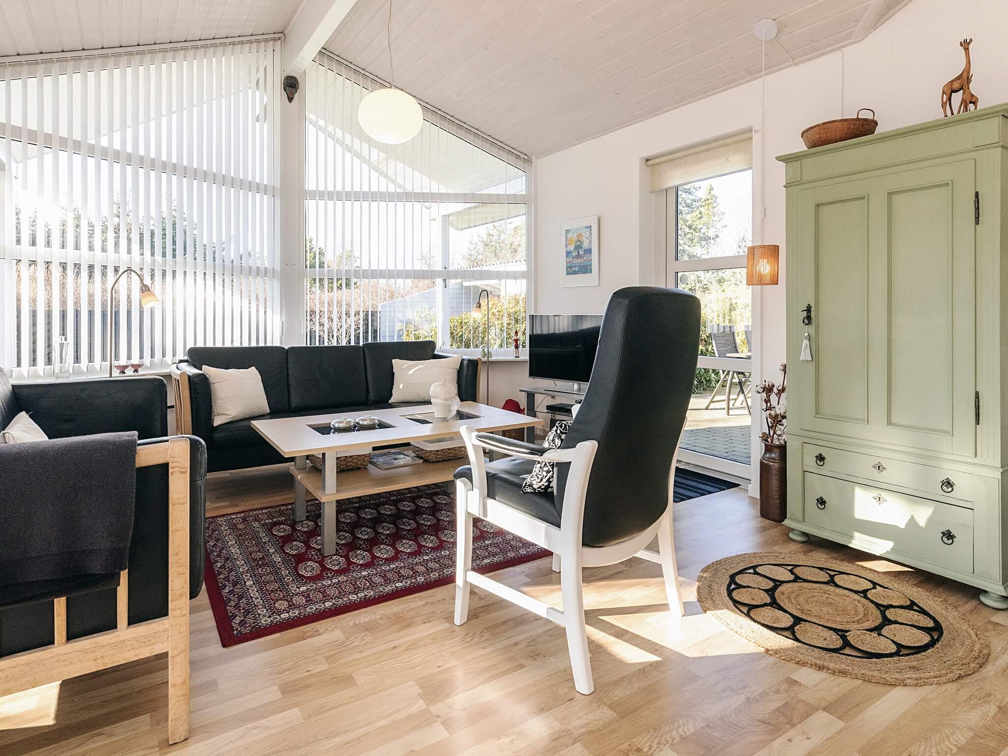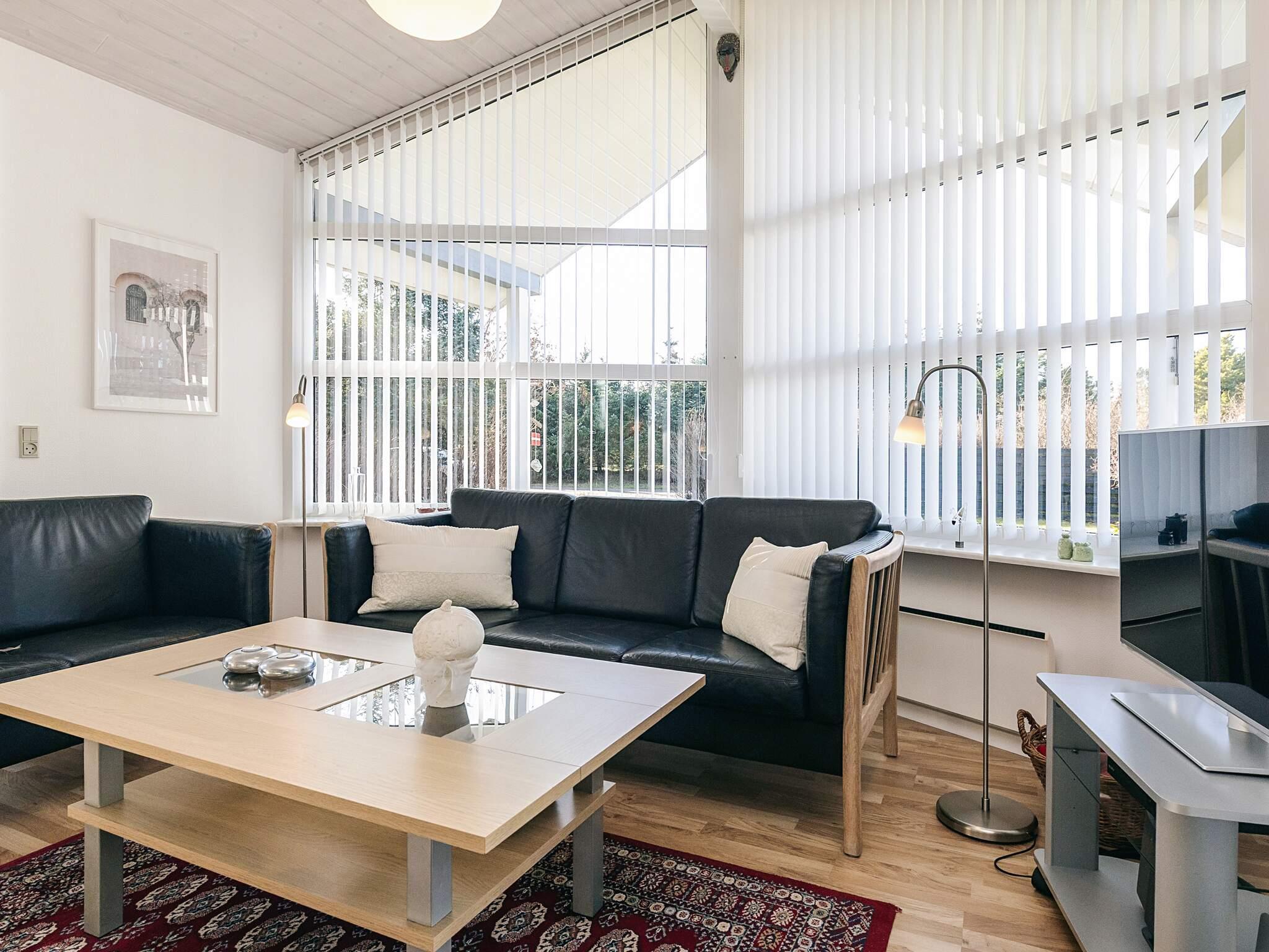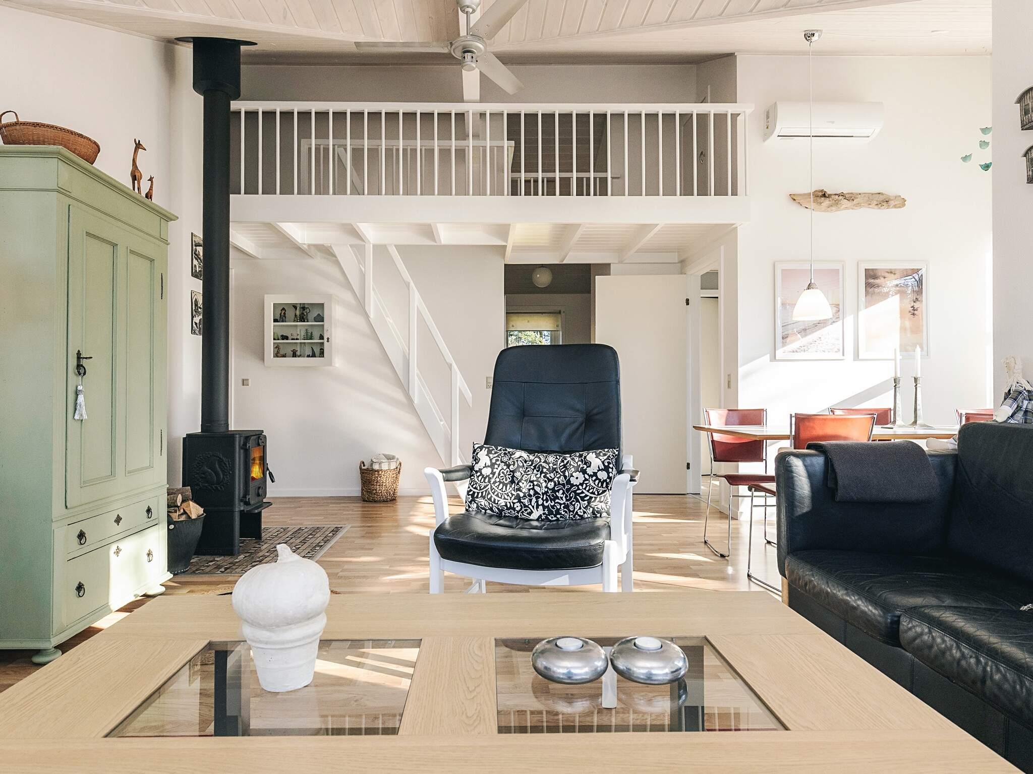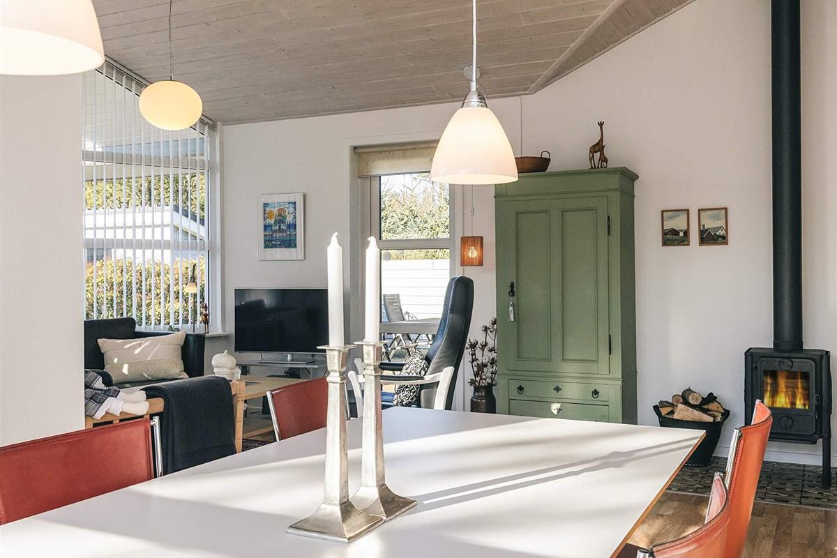 Die großen Fenster des Hauses sorgen für viel Lichteinfall. Das Ferienhaus ist geschmackvoll eingerichtet und verfügt über ein großes Wohnzimmer. Im offenen kombinierten Wohn- und Esszimmer können sie in der Sitzgruppe vor dem TV des Hauses entspannen, dessen Senderauswahl sowohl dänische, deutsche, norwegische und schwedische Programme umfasst.