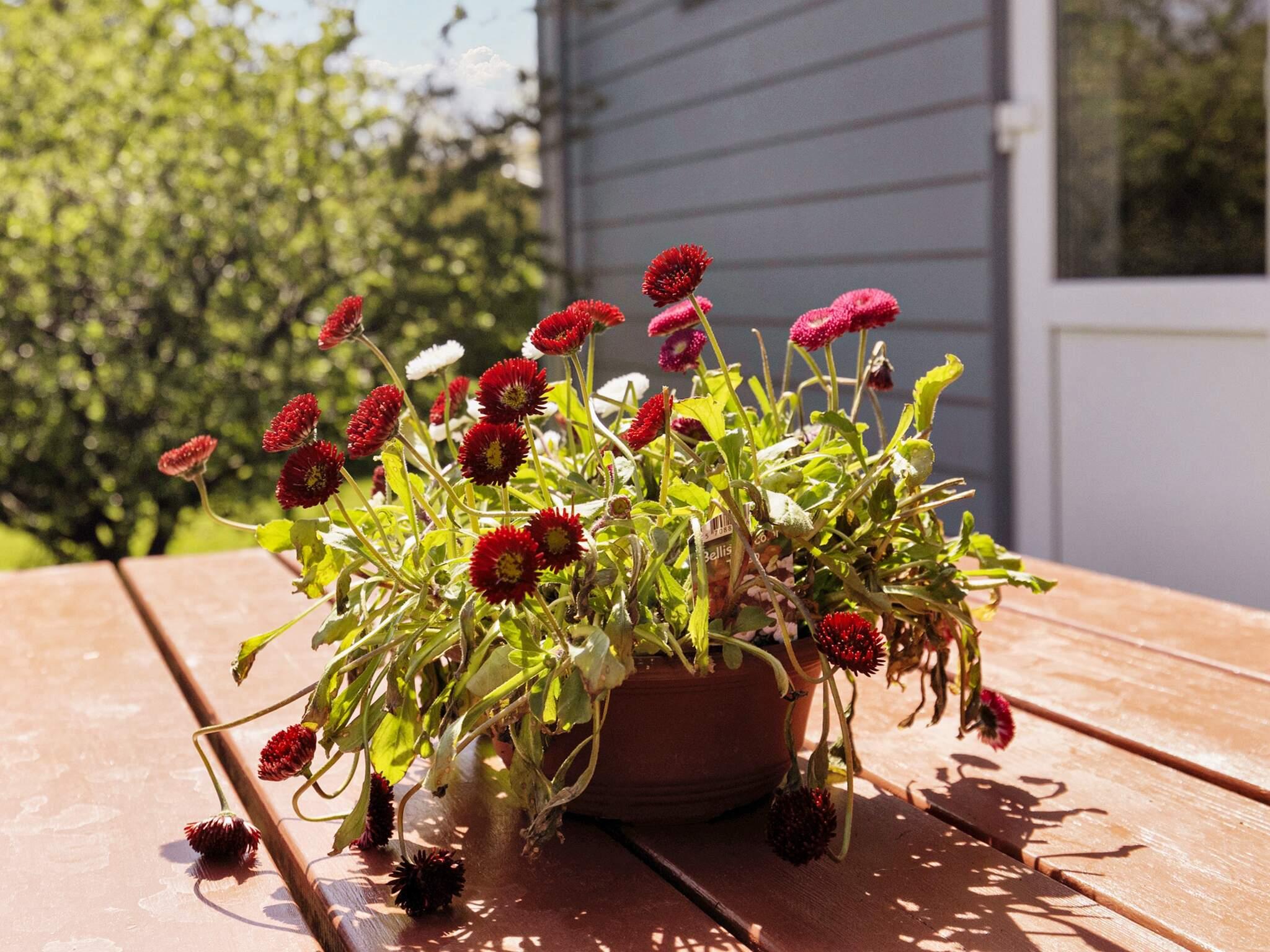 Das Ferienhaus steht auf einem großen, abgeschirmten Naturgrundstück mit vielen geschützten Ecken. Draußen stehen zwei Sonnenliegen bereit. Es gibt eine Ost- und eine Westterrasse für Morgen- und Abendsonne.
