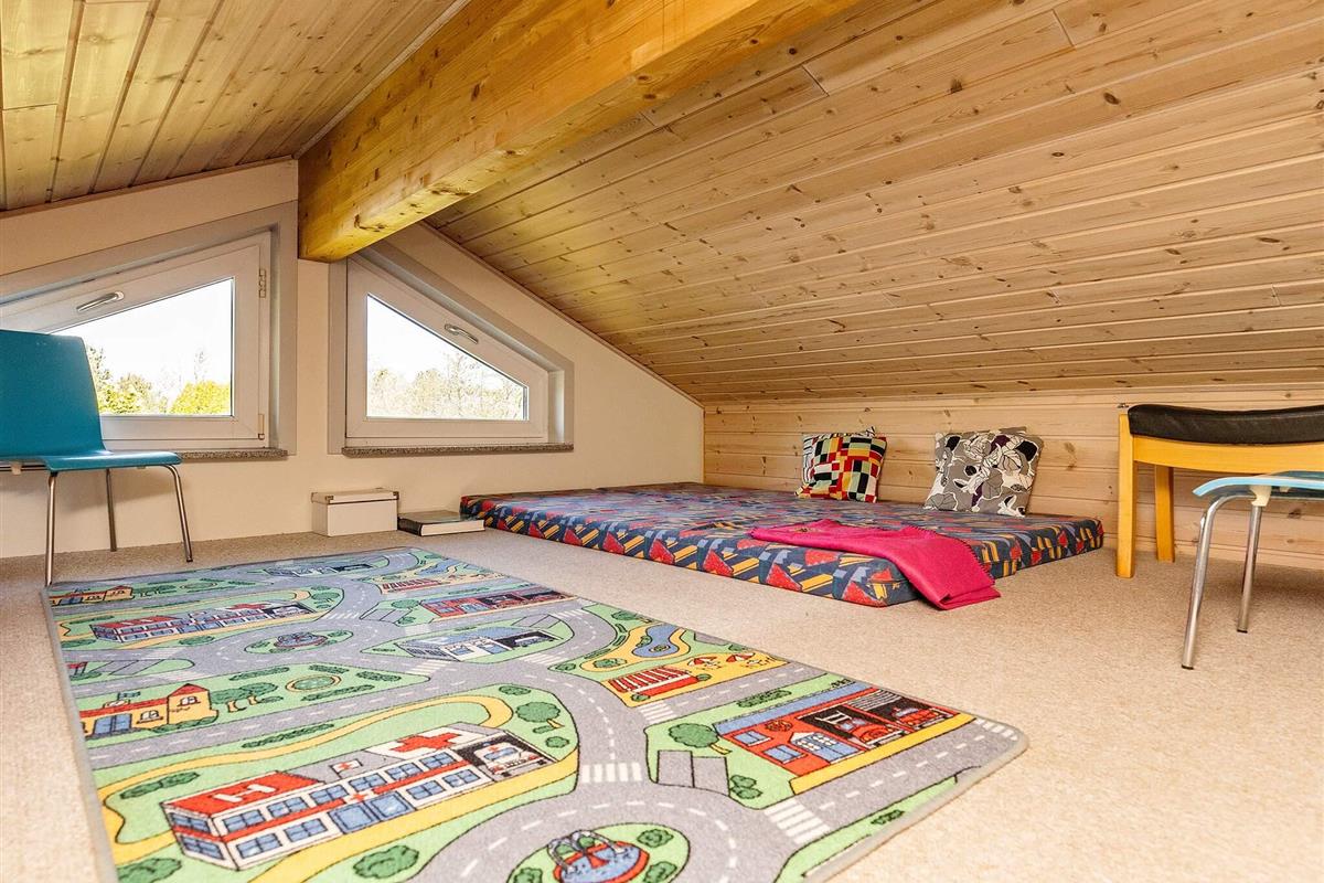 Wickelplatz in einem der beiden Badezimmer. Außerdem großer Hems oben mit Fenster, der von Kindern zum Spielen genutzt werden kann.