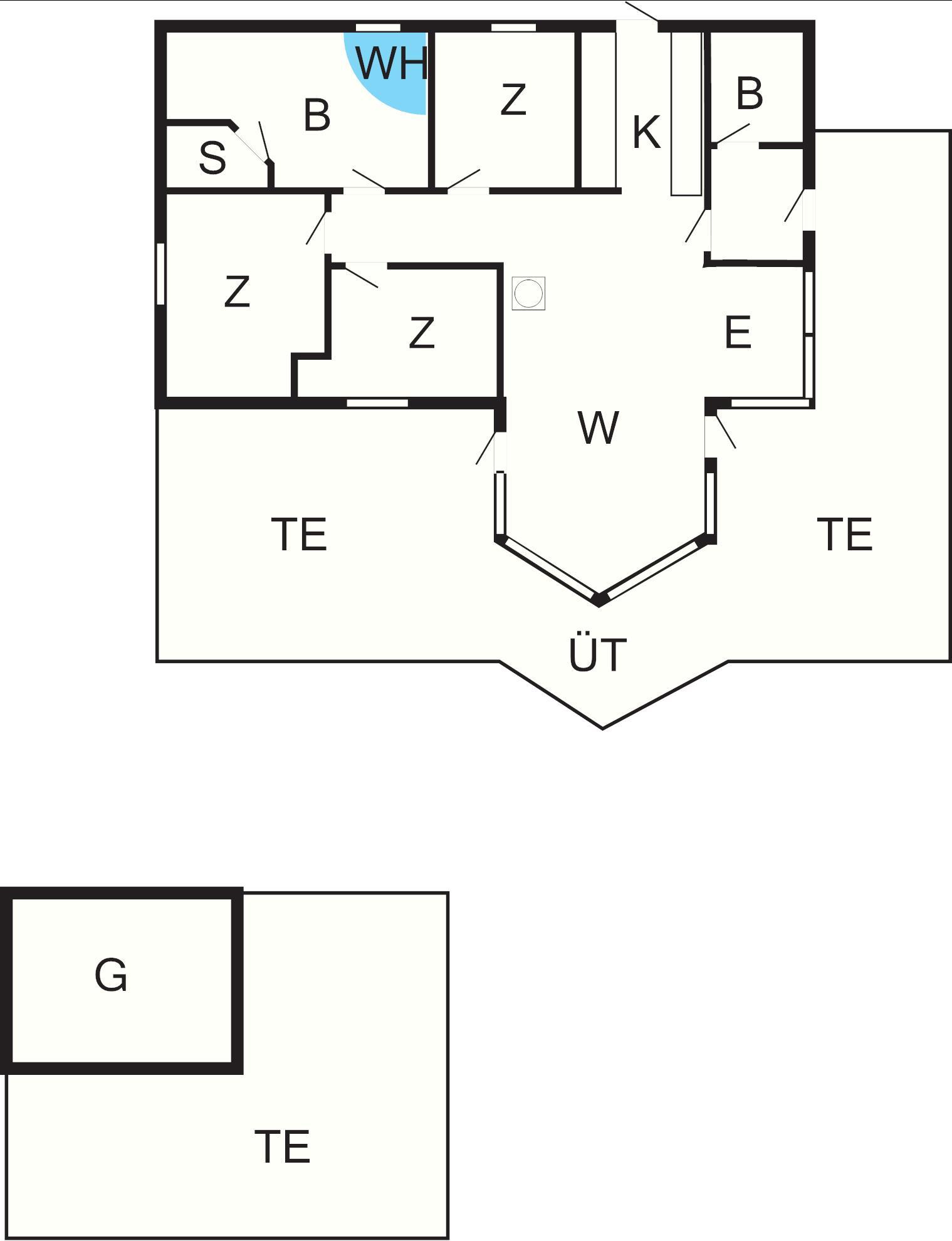 Und: Terrasse, E-Heiz., Luft-Luft-Wärmepumpe, Spielgeräte, Grill, Naturgrundst. 1050 m2, gemischte Möblierung, Ferienhausgebiet, Nichtraucherhaus