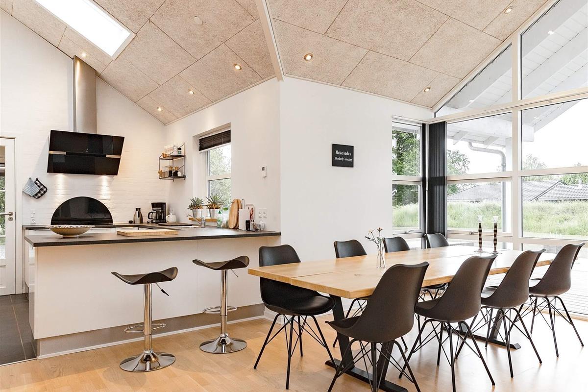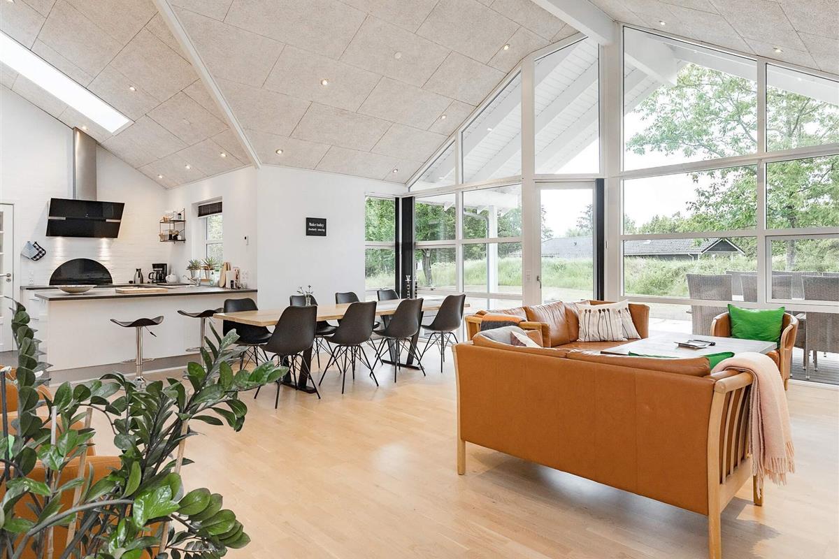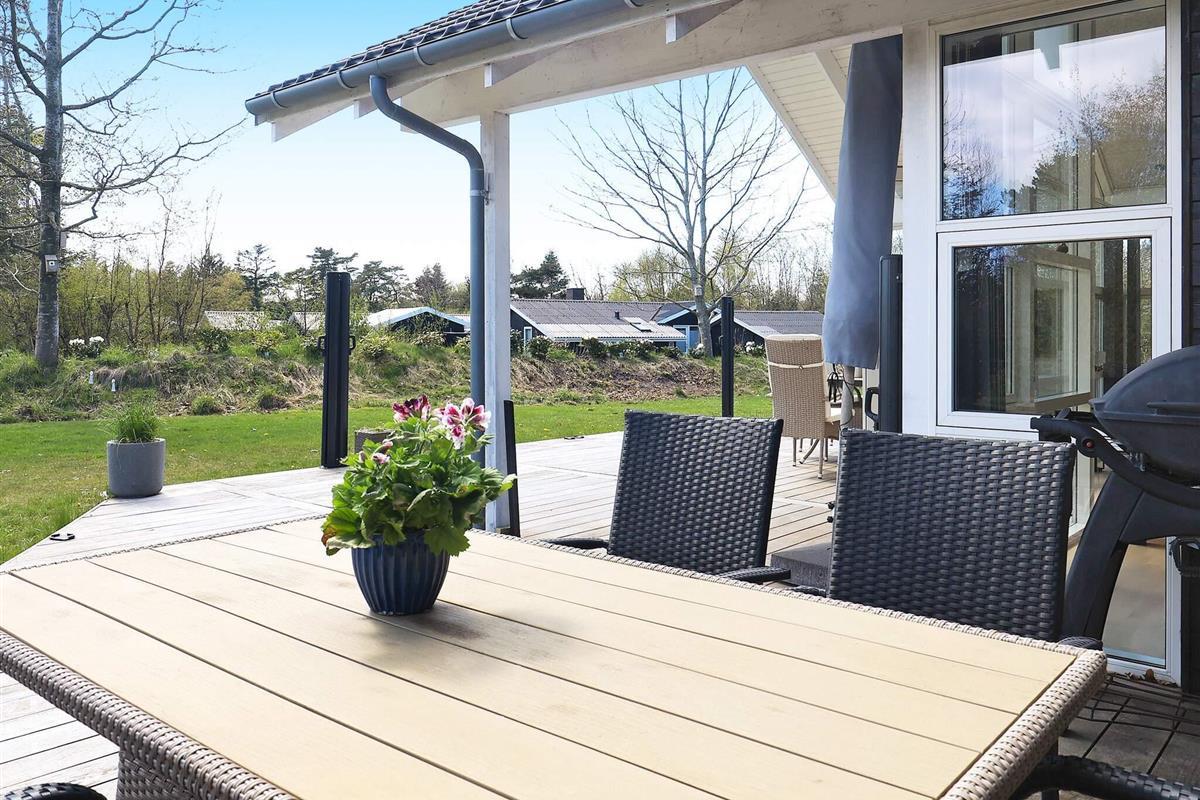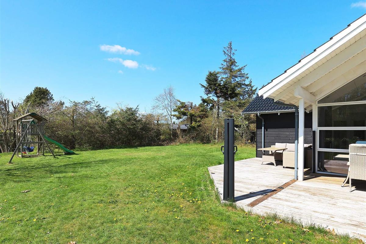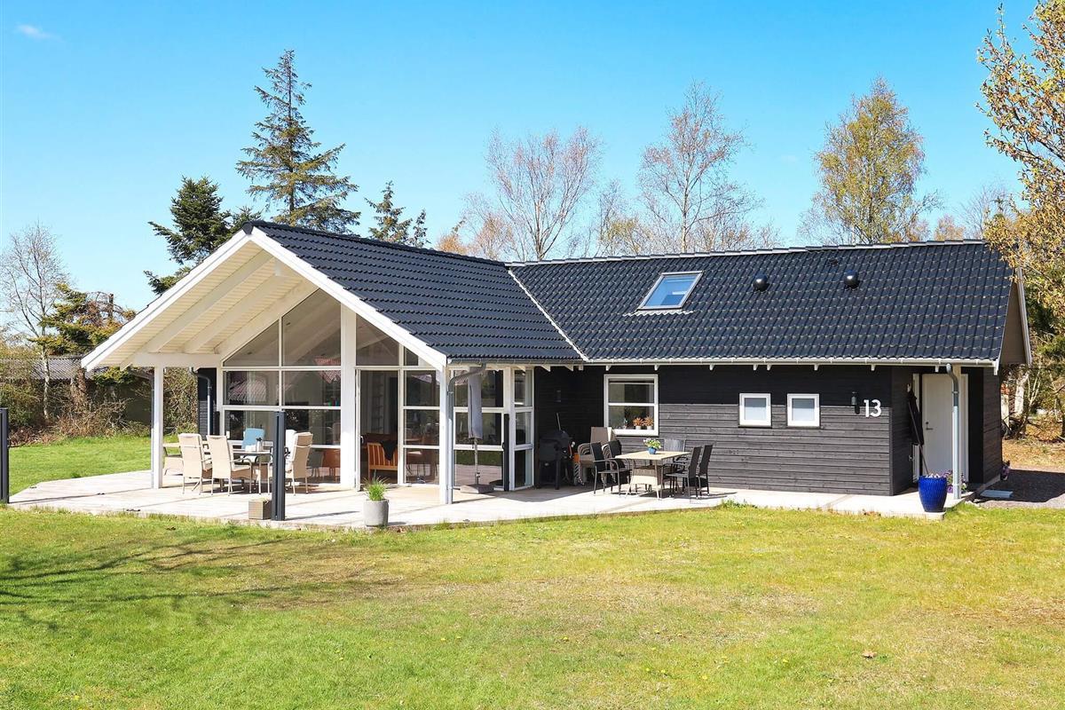 Nur 500 Meter vom Strand entfernt, im ruhigen und naturschönen Gebiet von Koldkær, befindet sich dieses moderne und familienfreundliche Ferienhaus aus dem Jahr 2017 – perfekt für Entspannung und gemeinsame Zeit. Das Haus verfügt über eine helle und offene Küche mit Wohn- und Essbereich, einer hohen Decke, Panoramafenstern und einem gemütlichen Wohnzimmer mit TV und Chromecast. Von hier aus gelangen Sie direkt auf eine große, teilweise überdachte Holzterrasse, auf der Sie die Sonne von morgens bis abends genießen können – ideal für Mahlzeiten im Freien oder zum Entspannen in den Loungemöbeln. Das Haus bietet Platz für bis zu 8 Personen und verfügt über vier geräumige Schlafzimmer: zwei mit Doppelbetten, eines mit Einzelbetten und eines mit Etagenbett. Zusätzlich gibt es einen Hems mit zwei weiteren Schlafplätzen – ein Highlight für die Kinder. In allen Zimmern gibt es ausreichend Schrankraum, außerdem stehen ein Kinderbett und ein Hochstuhl zur Verfügung. Für Unterhaltung sorgen eine Spielkonsole und Brettspiele, und im Außenbereich erwartet Sie ein großes Naturgrundstück von 1.430 m² mit Spielgeräten für die Kleinen. Das Haus verfügt über zwei Badezimmer mit Dusche, von denen eines mit Whirlpool sowie einer Waschsäule mit Waschmaschine und Trockner ausgestattet ist. Die Beheizung erfolgt über Strom und eine Luft-Wasser-Wärmepumpe, die das ganze Jahr über für ein angenehmes Raumklima sorgt. Für laue Sommerabende stehen außerdem ein Gasgrill und Sonnenliegen bereit. Ein durchdachtes, rauchfreies Ferienhaus in ruhiger Lage, nahe Strand und Natur – perfekt für Familien mit Kindern ebenso wie für alle, die Ruhe und Komfort suchen.