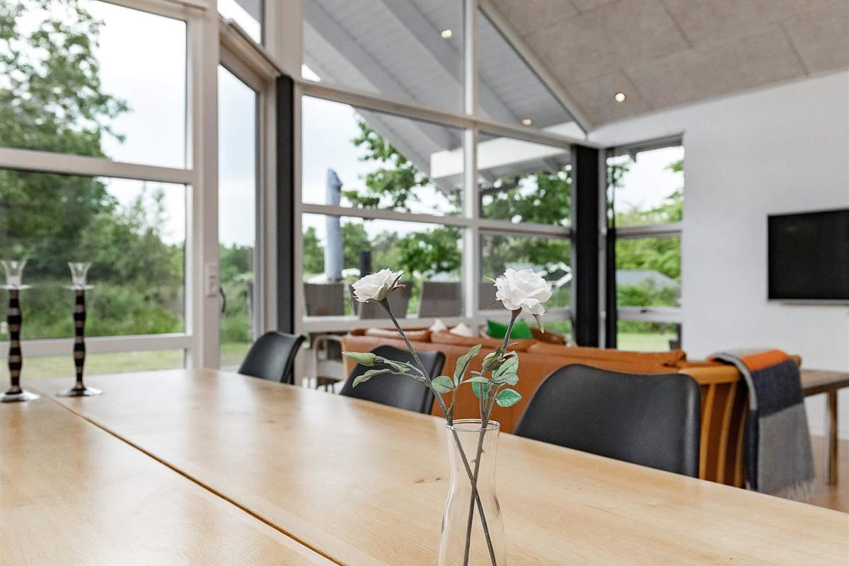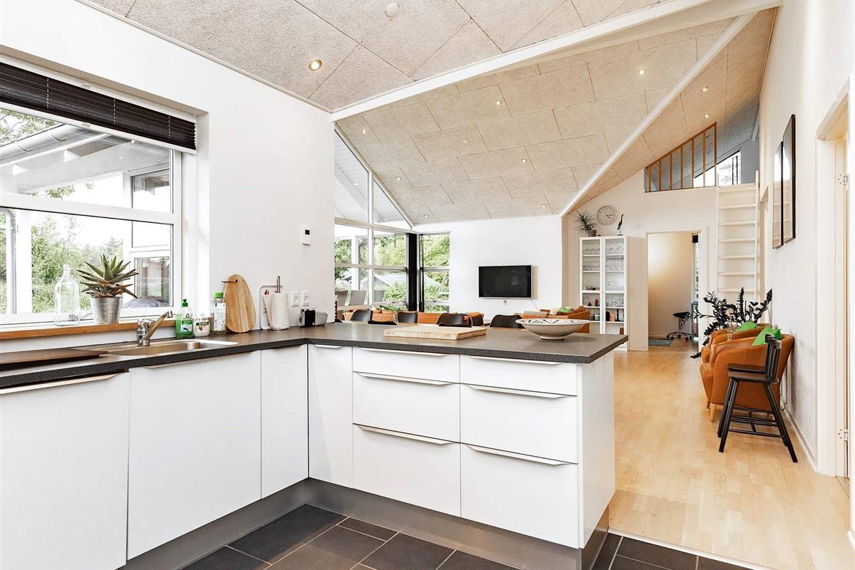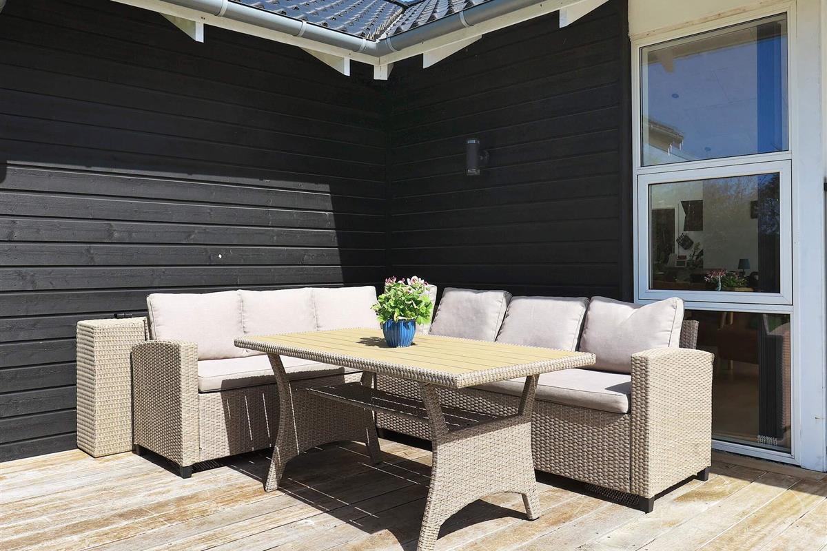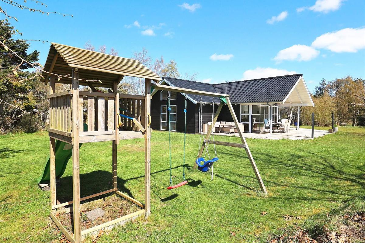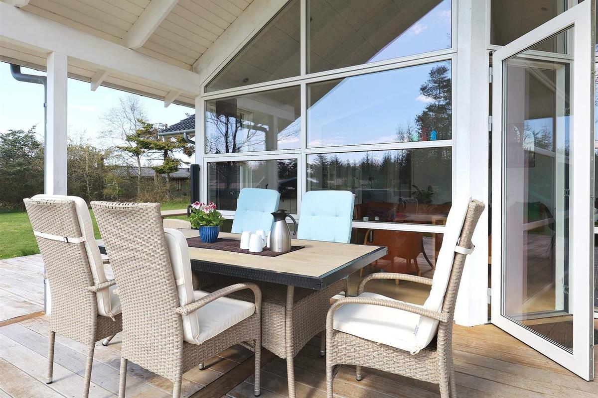 Nur 500 Meter vom Strand entfernt, im ruhigen und naturschönen Gebiet von Koldkær, befindet sich dieses moderne und familienfreundliche Ferienhaus aus dem Jahr 2017 – perfekt für Entspannung und gemeinsame Zeit. Das Haus verfügt über eine helle und offene Küche mit Wohn- und Essbereich, einer hohen Decke, Panoramafenstern und einem gemütlichen Wohnzimmer mit TV und Chromecast. Von hier aus gelangen Sie direkt auf eine große, teilweise überdachte Holzterrasse, auf der Sie die Sonne von morgens bis abends genießen können – ideal für Mahlzeiten im Freien oder zum Entspannen in den Loungemöbeln. Das Haus bietet Platz für bis zu 8 Personen und verfügt über vier geräumige Schlafzimmer: zwei mit Doppelbetten, eines mit Einzelbetten und eines mit Etagenbett. Zusätzlich gibt es einen Hems mit zwei weiteren Schlafplätzen – ein Highlight für die Kinder. In allen Zimmern gibt es ausreichend Schrankraum, außerdem stehen ein Kinderbett und ein Hochstuhl zur Verfügung. Für Unterhaltung sorgen eine Spielkonsole und Brettspiele, und im Außenbereich erwartet Sie ein großes Naturgrundstück von 1.430 m² mit Spielgeräten für die Kleinen. Das Haus verfügt über zwei Badezimmer mit Dusche, von denen eines mit Whirlpool sowie einer Waschsäule mit Waschmaschine und Trockner ausgestattet ist. Die Beheizung erfolgt über Strom und eine Luft-Wasser-Wärmepumpe, die das ganze Jahr über für ein angenehmes Raumklima sorgt. Für laue Sommerabende stehen außerdem ein Gasgrill und Sonnenliegen bereit. Ein durchdachtes, rauchfreies Ferienhaus in ruhiger Lage, nahe Strand und Natur – perfekt für Familien mit Kindern ebenso wie für alle, die Ruhe und Komfort suchen.