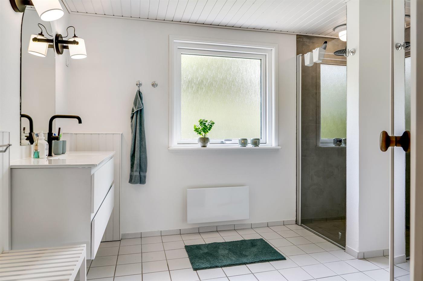 Er is 1 badkamer met douchehok en 2 toiletten, waarvan 1 gastentoilet. Er is vloerverwarming in 1 badkamer. De sauna biedt de gelegenheid tot ontspanning.